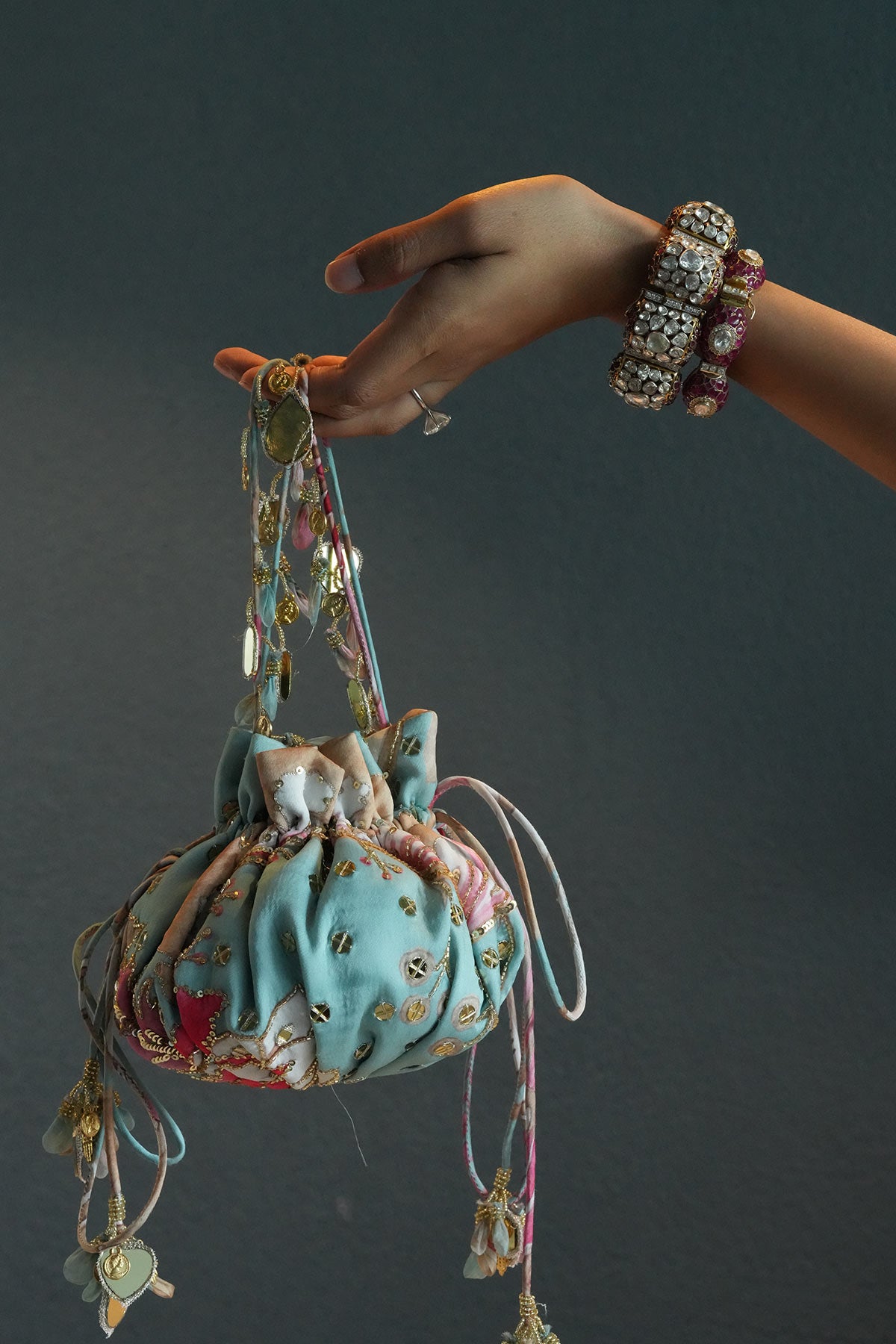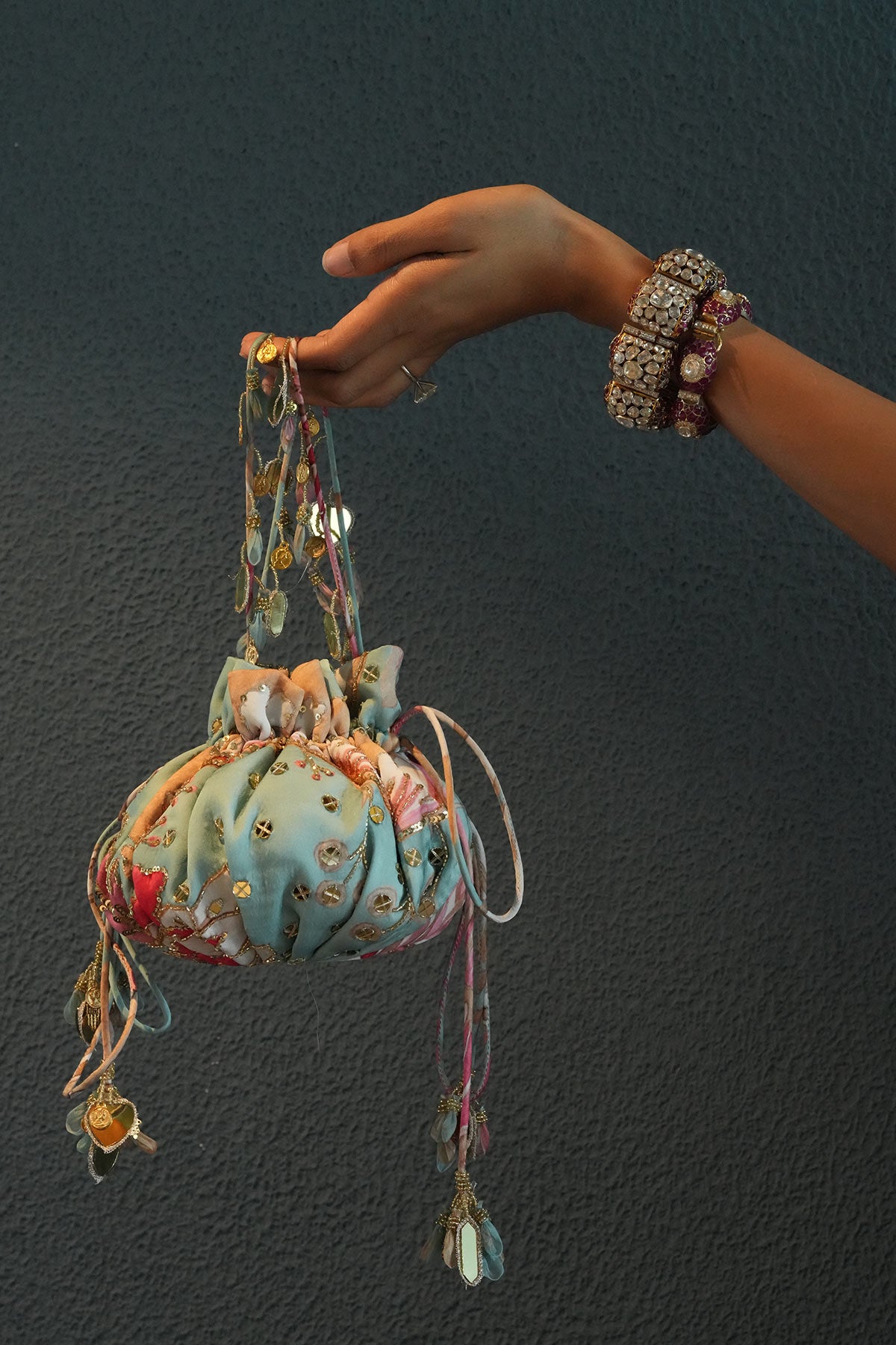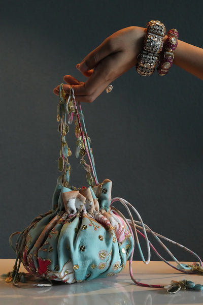 AQUAMARINE EMBROIDERED POTLI