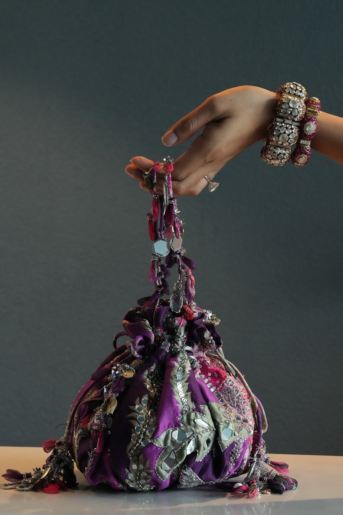 Please note - All Potli’s are handmade and may differ slightly in terms of embroidery placement and print . All equally stunning and equally unique !!