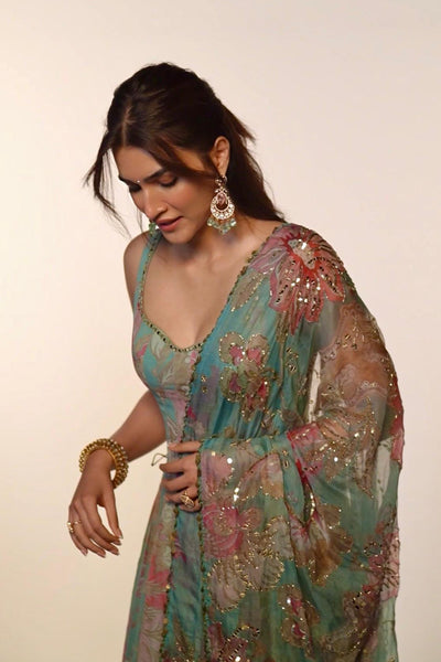 Short Anarkali with Hand Embroidered Dupatta and Pants