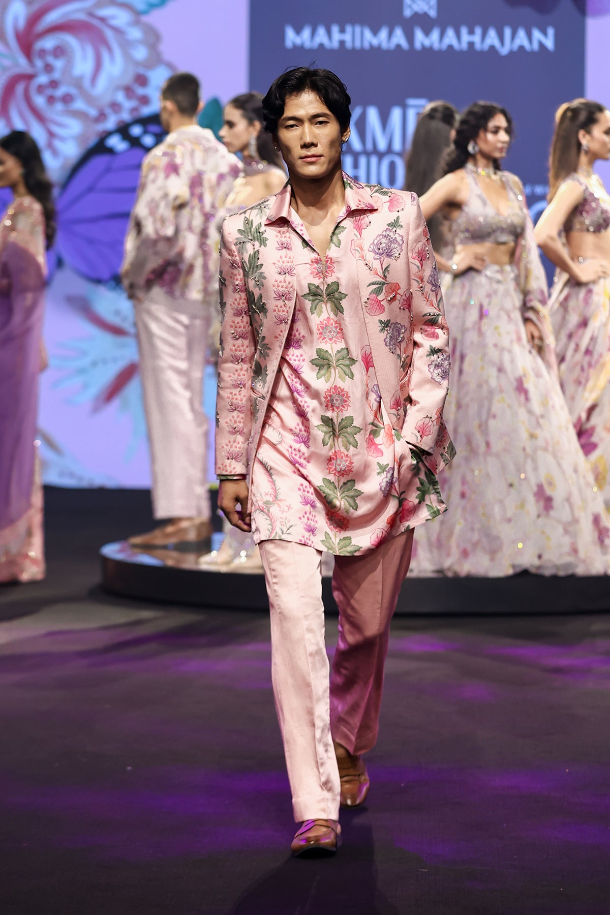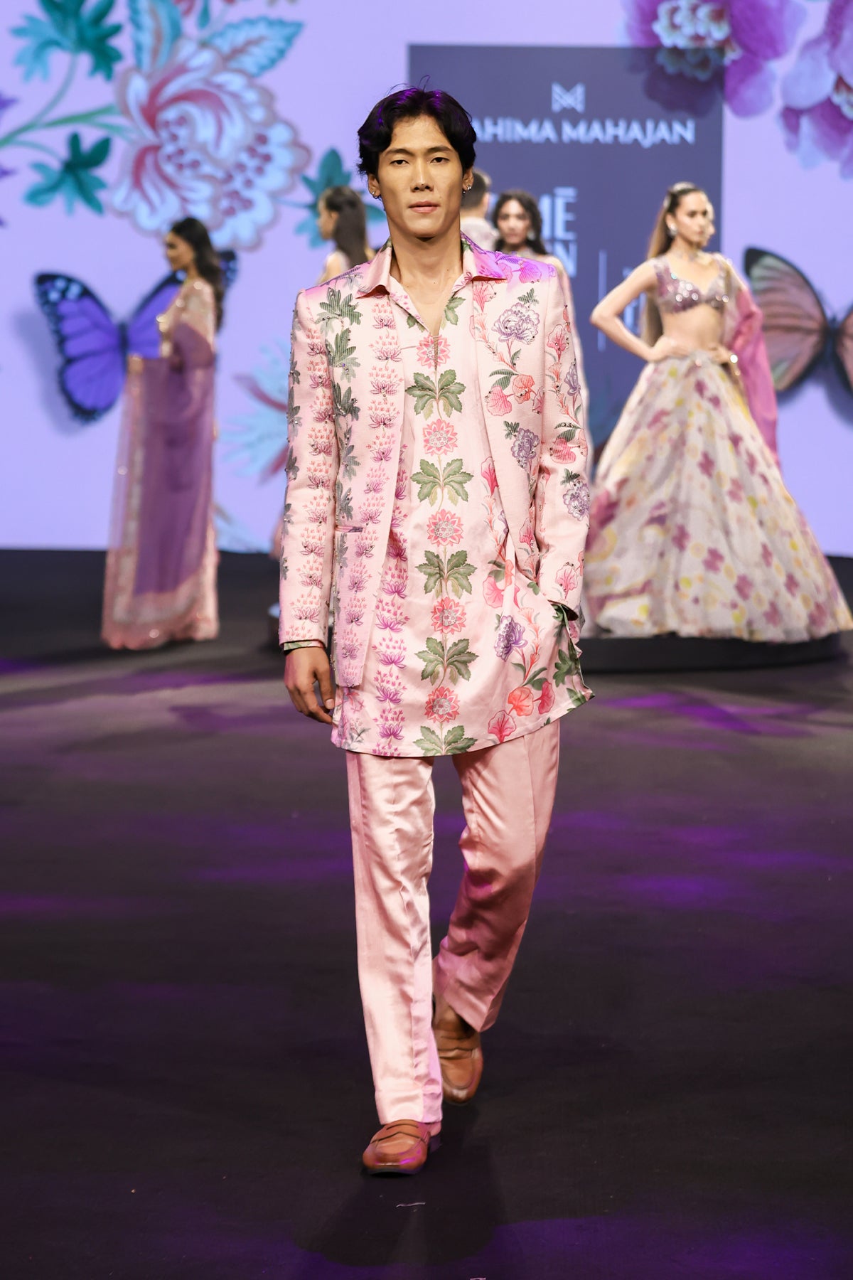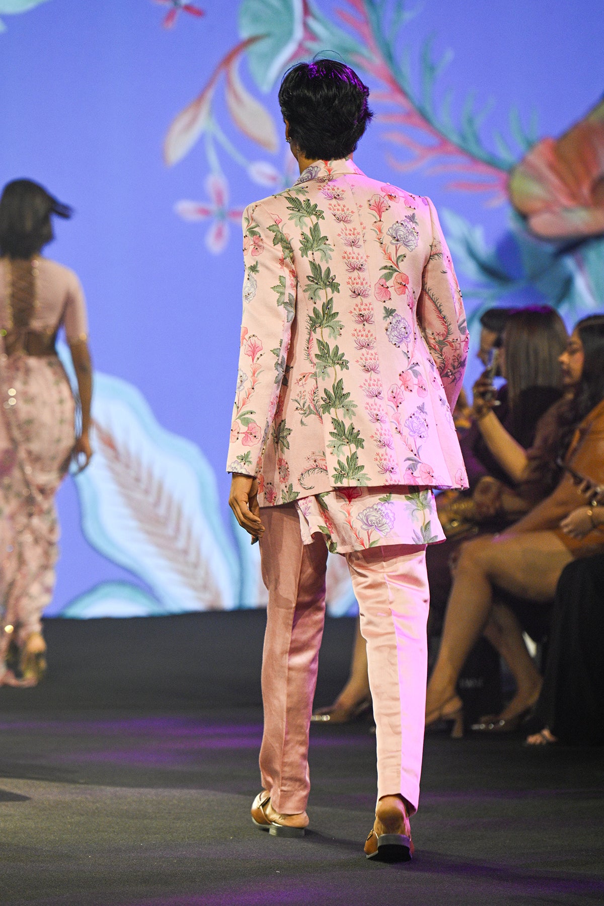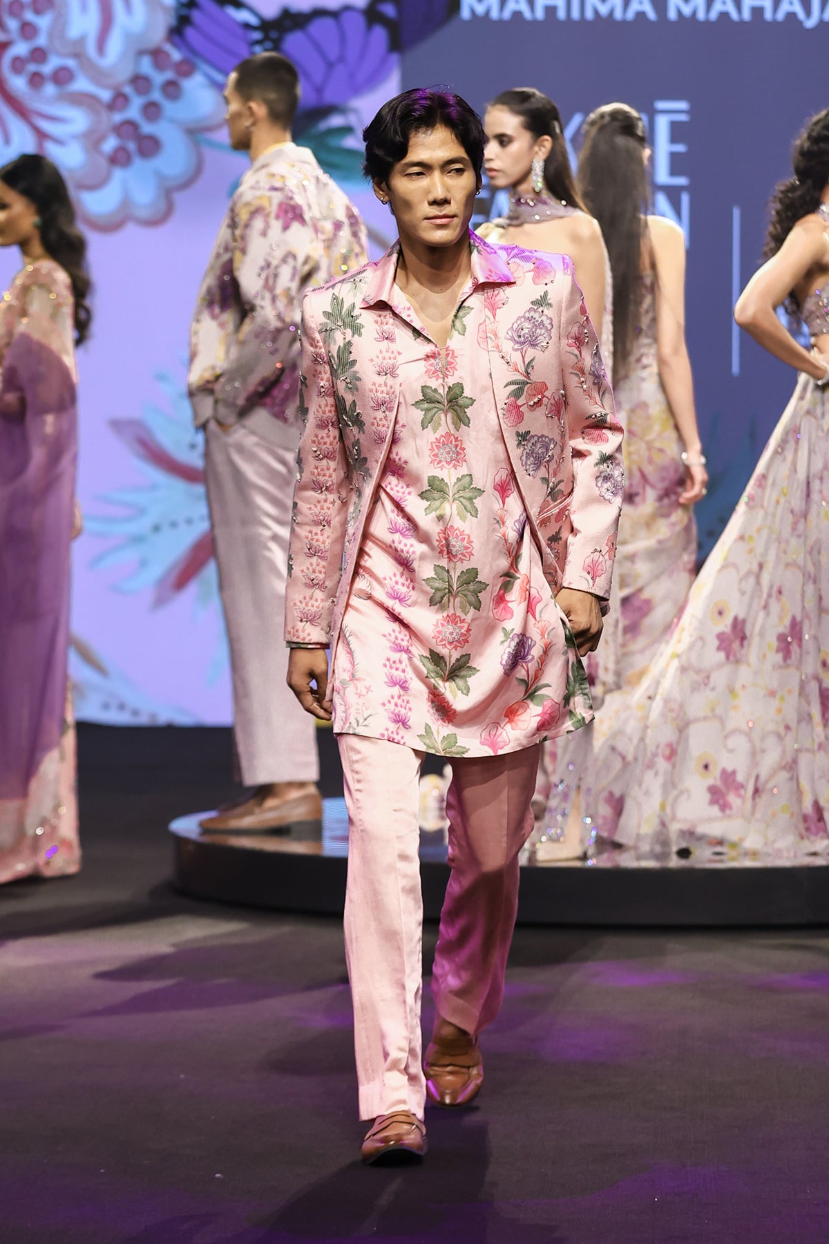 Quilted Hand Embroidered Blazer Paired With Printed Short Kurta and Trousers