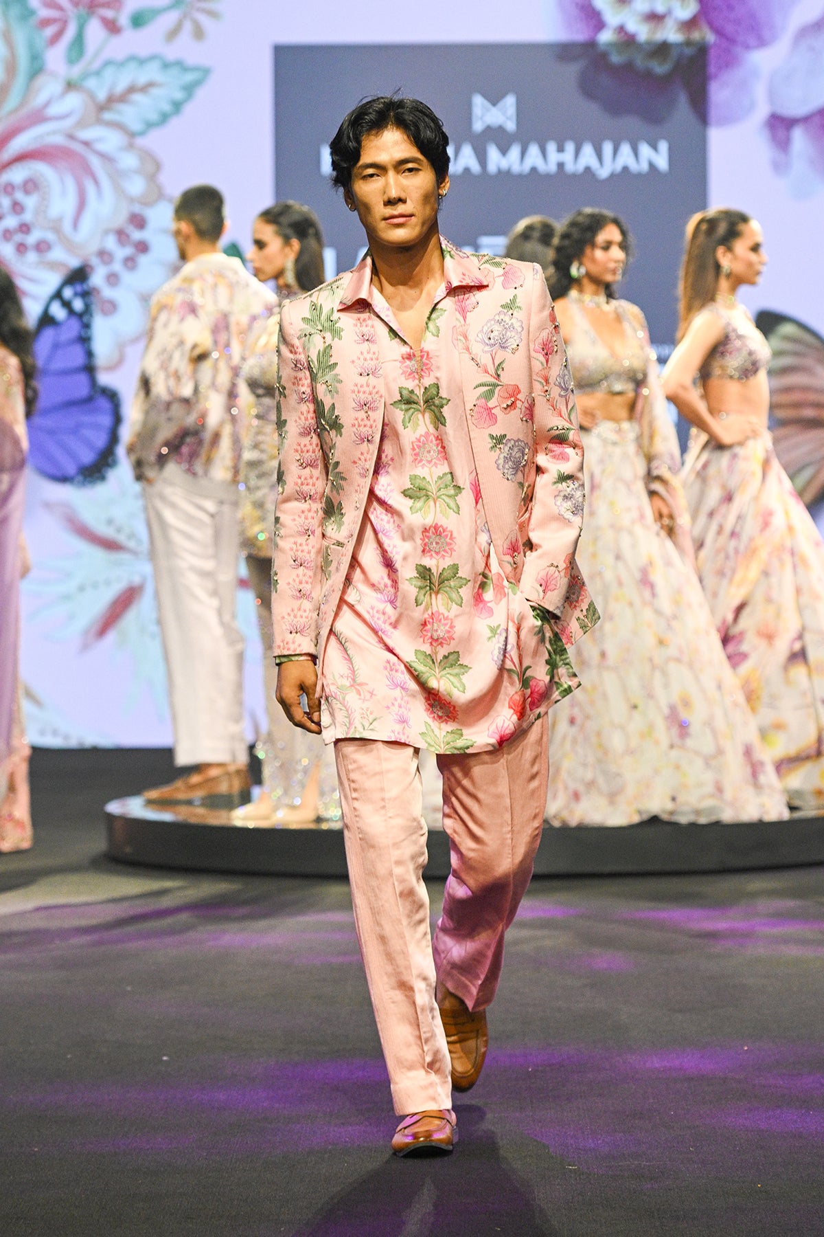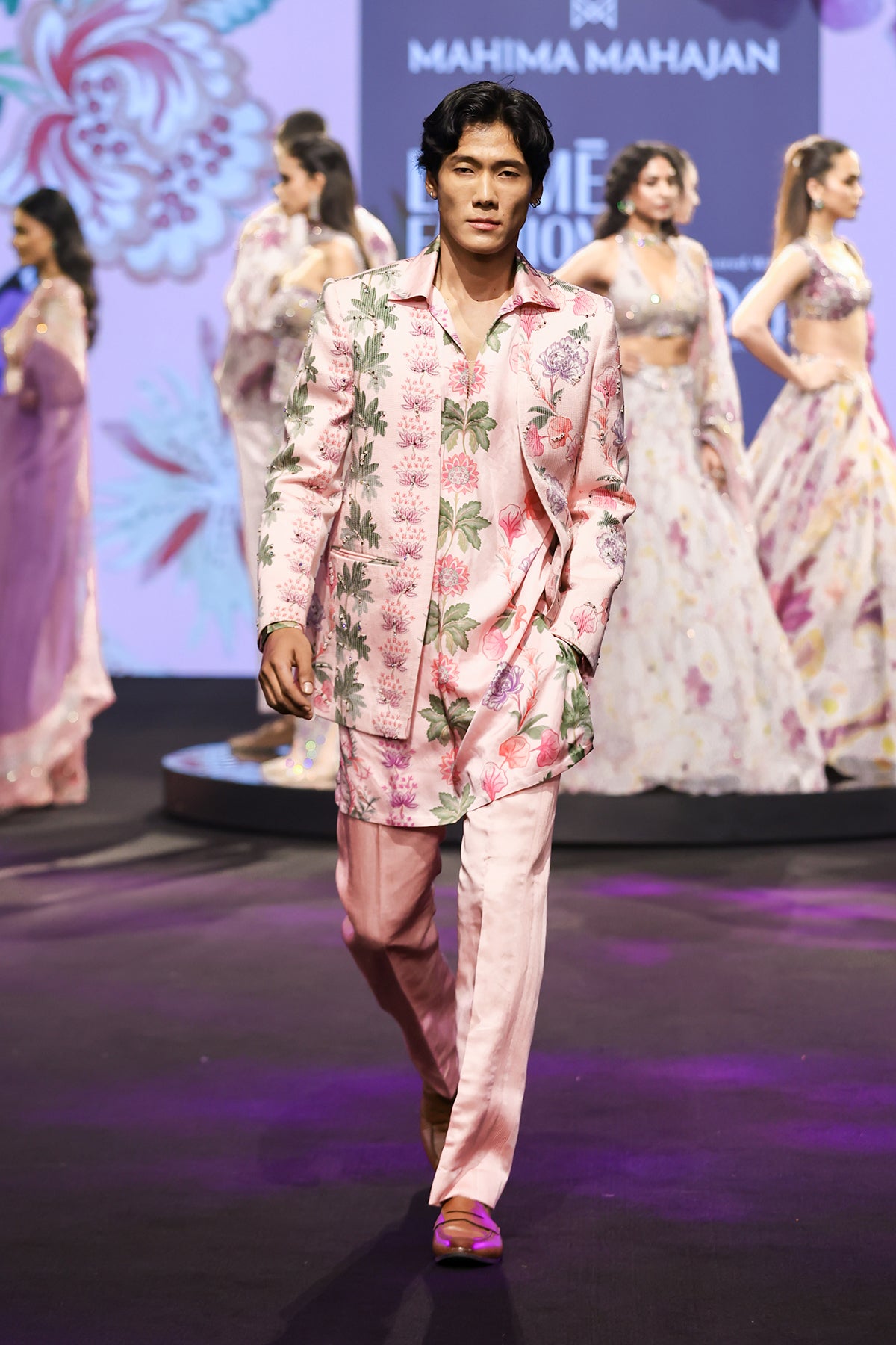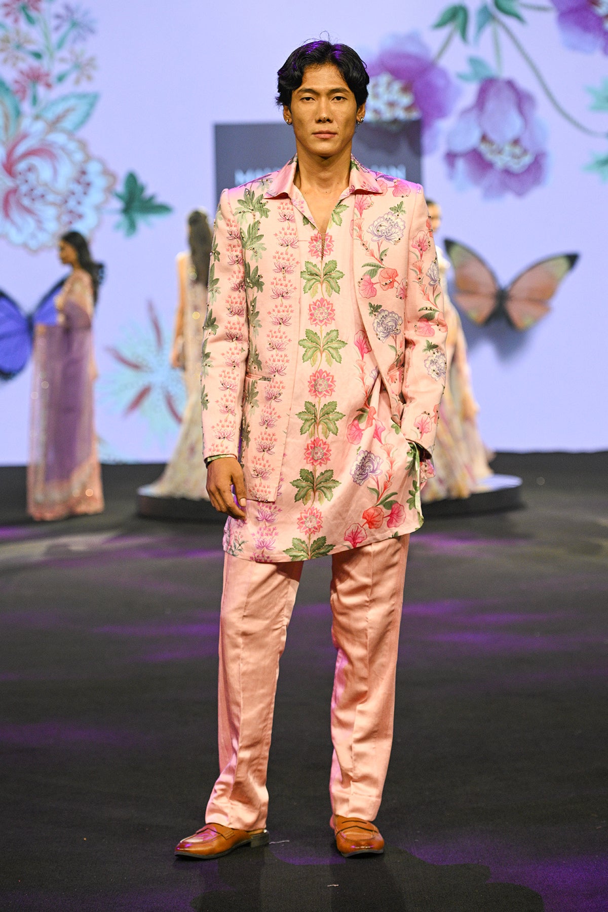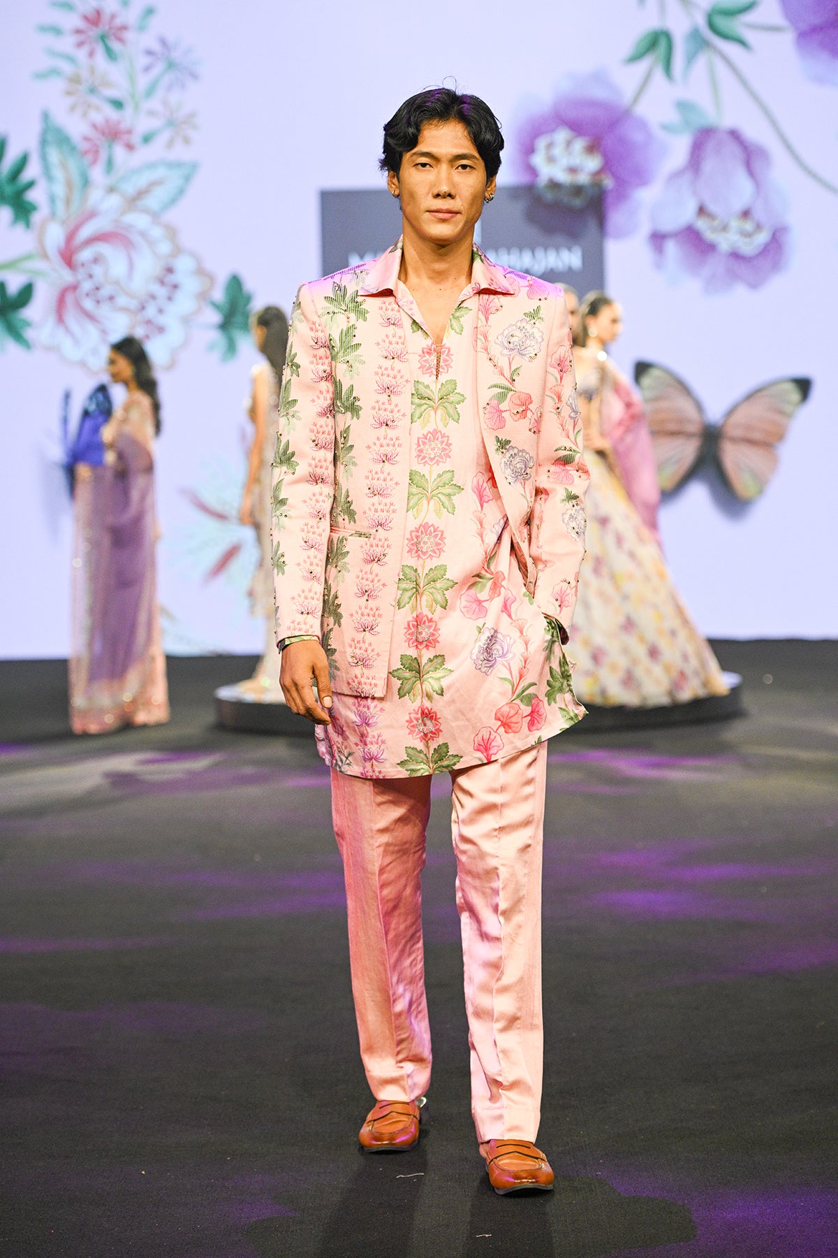 Quilted Hand Embroidered Blazer Paired With Printed Short Kurta and Trousers