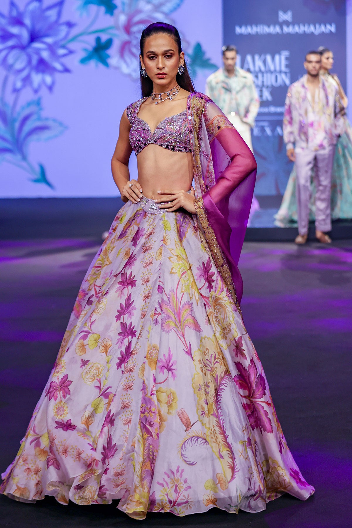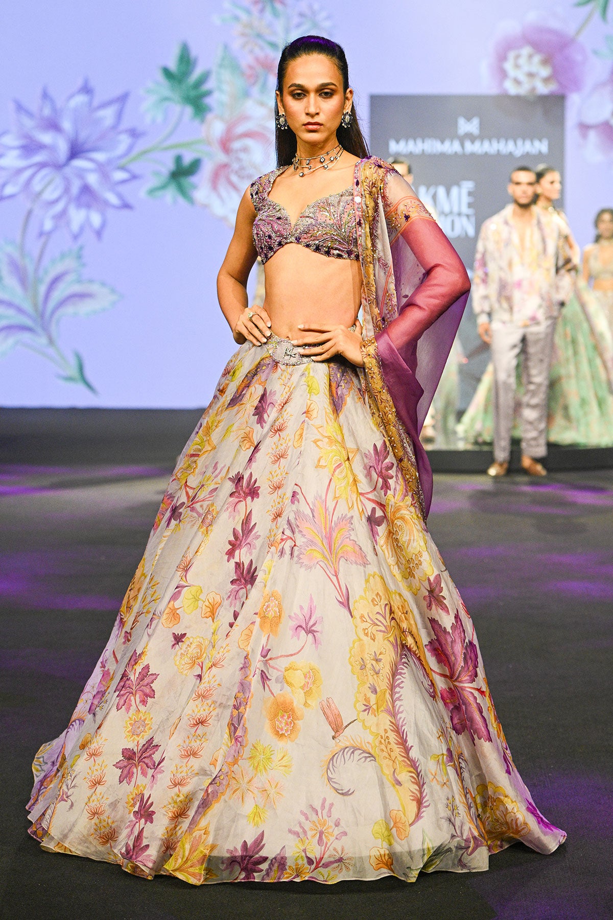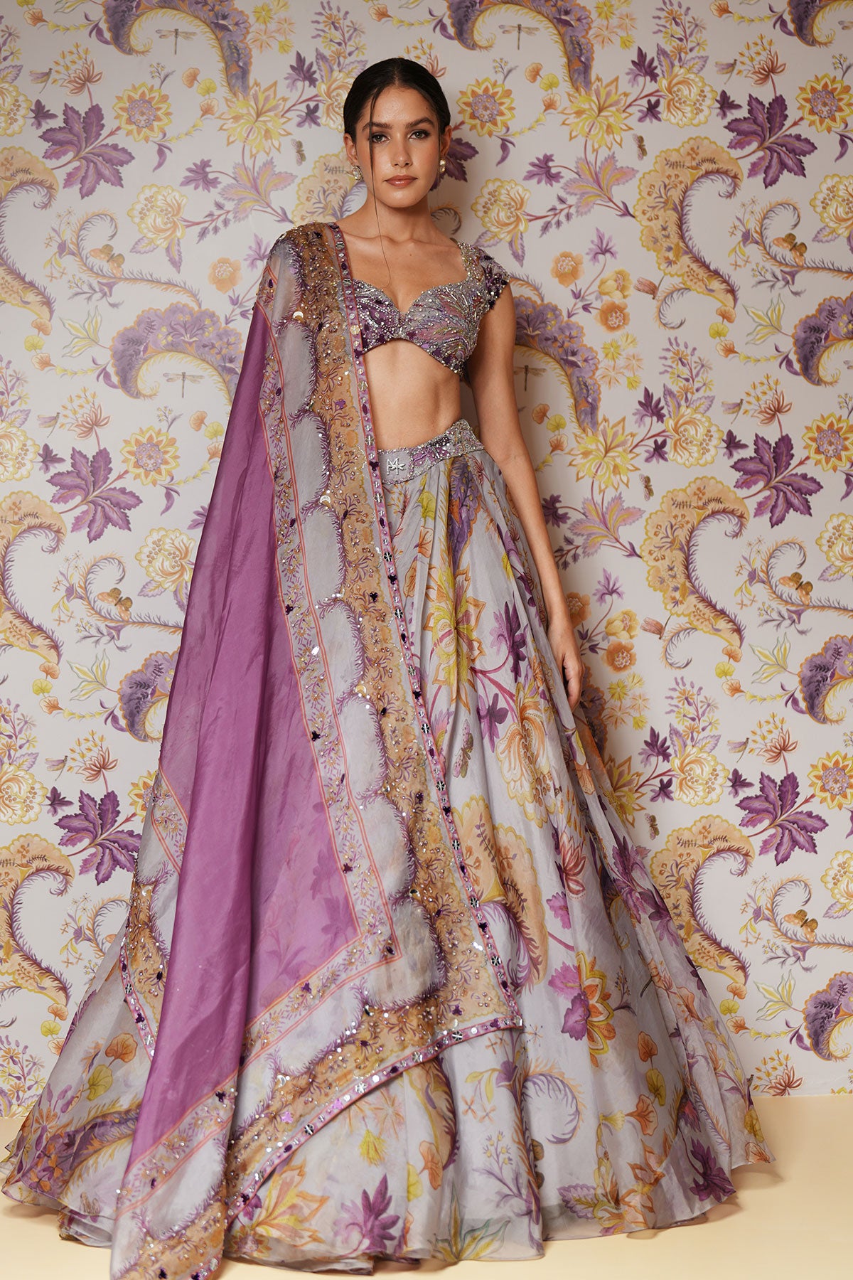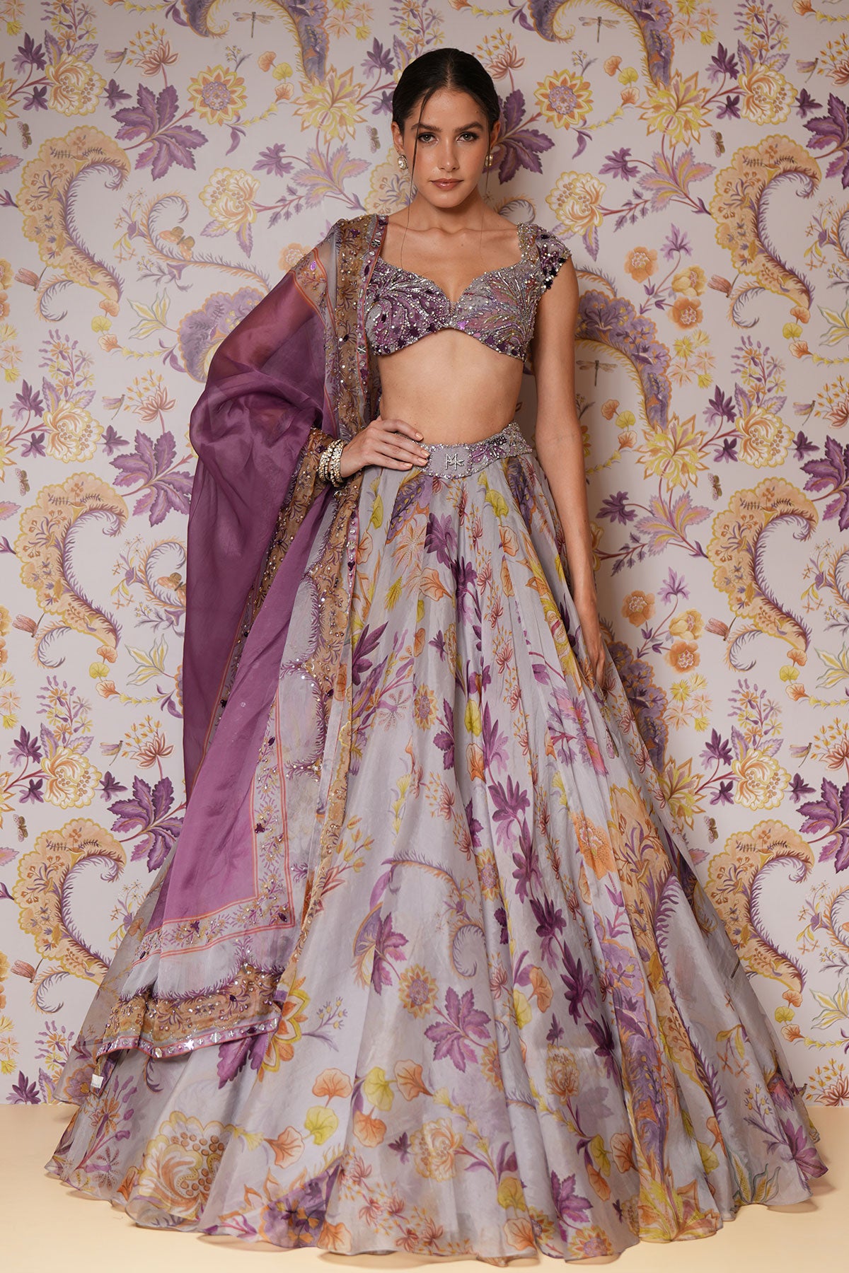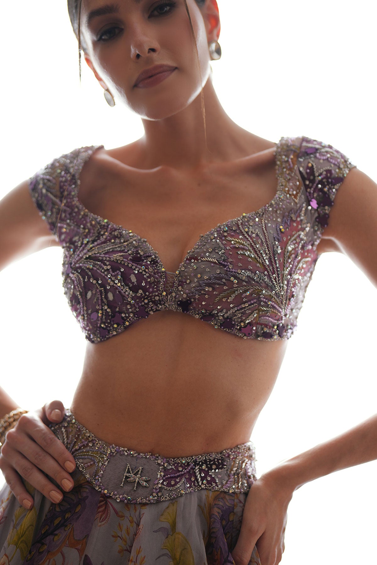 Heavy Hand Embroidered Blouse And Dupatta Paired With Floral Lehenga Featuring Mm Logo On Waist