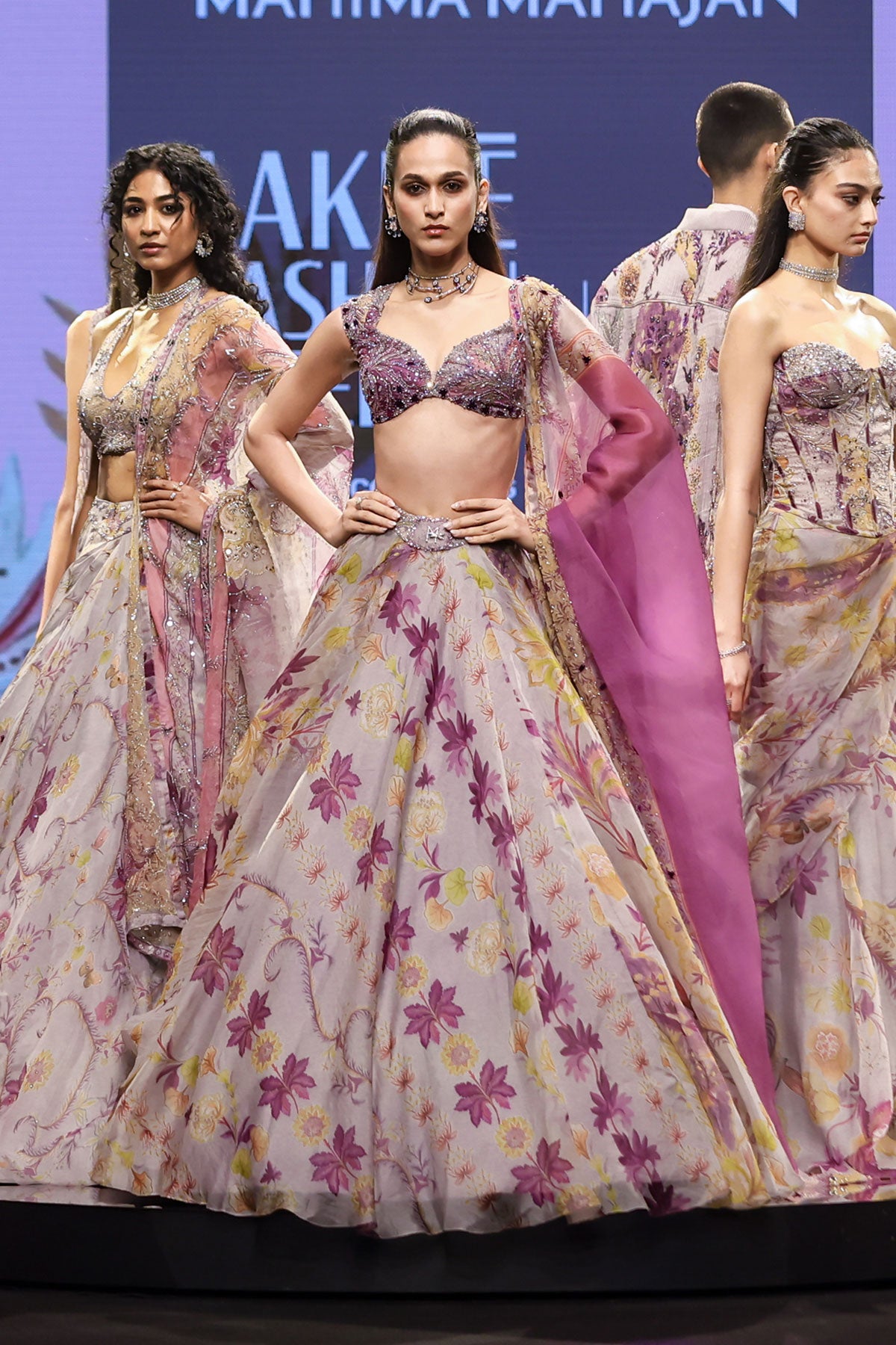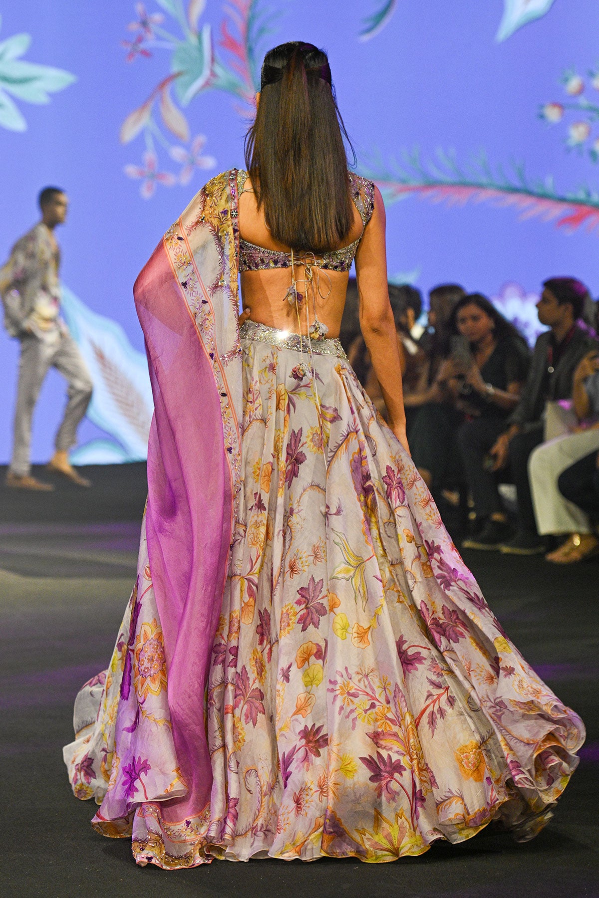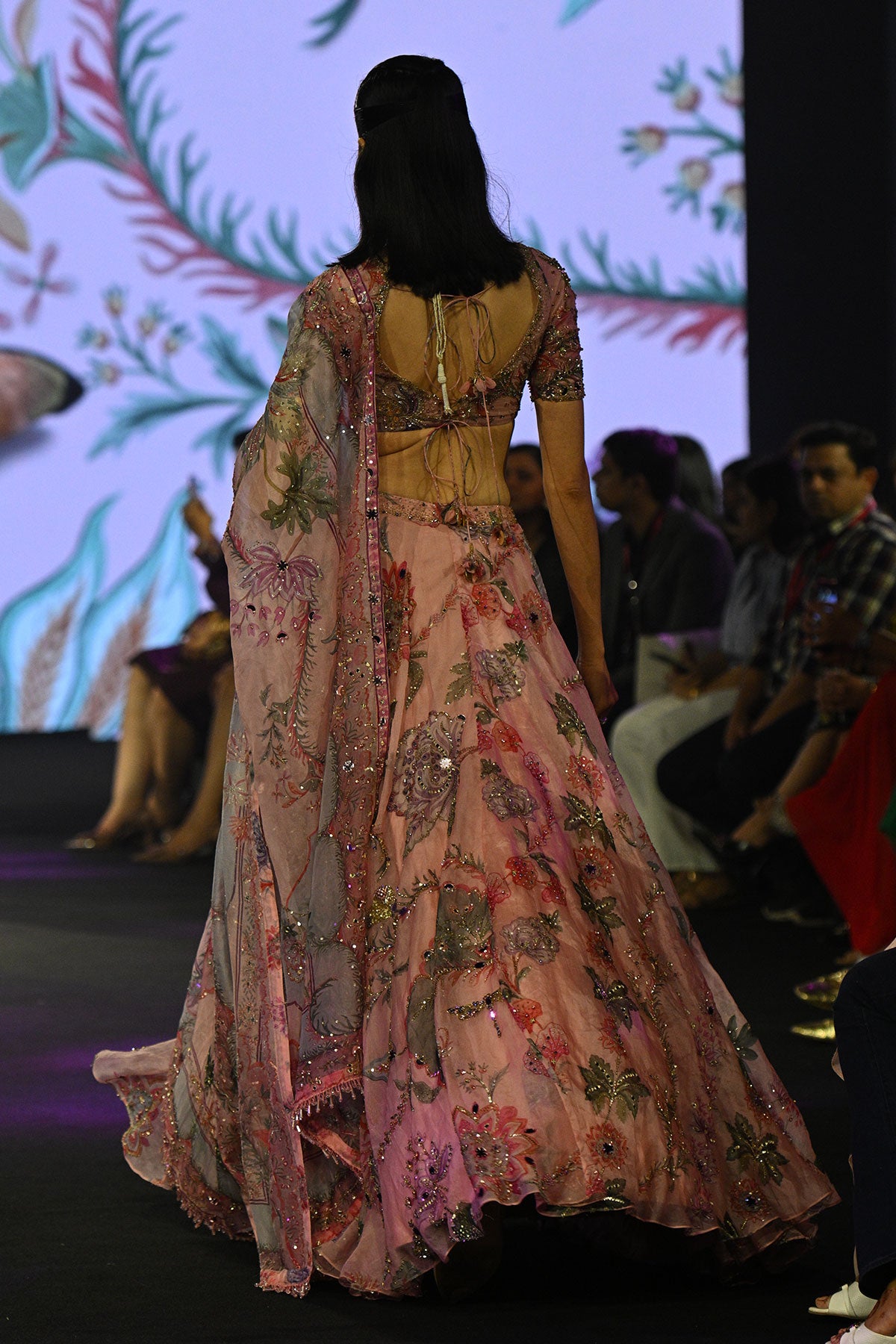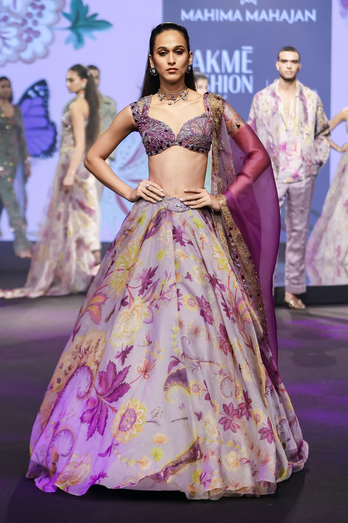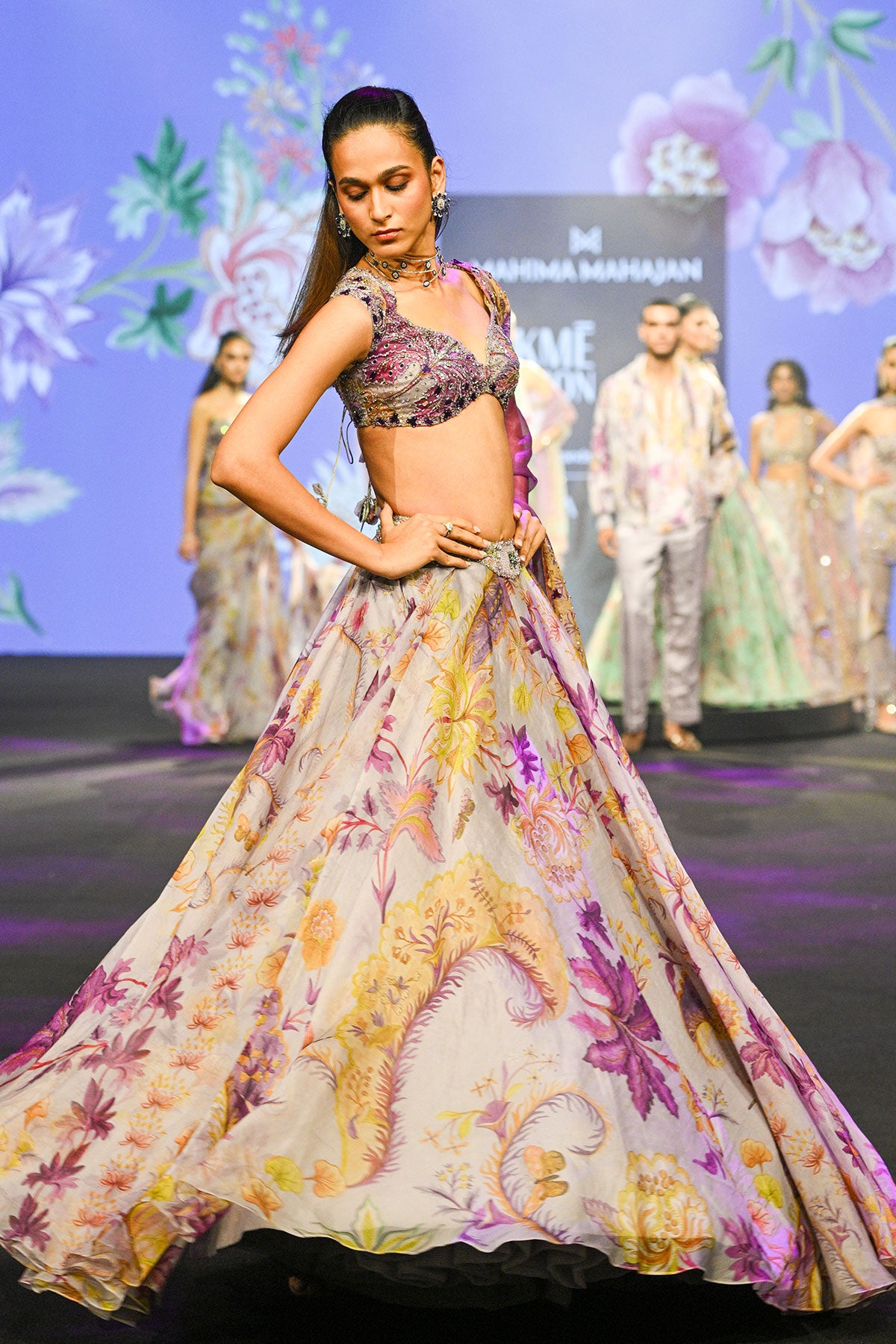 Heavy Hand Embroidered Blouse And Dupatta Paired With Floral Lehenga Featuring Mm Logo On Waist