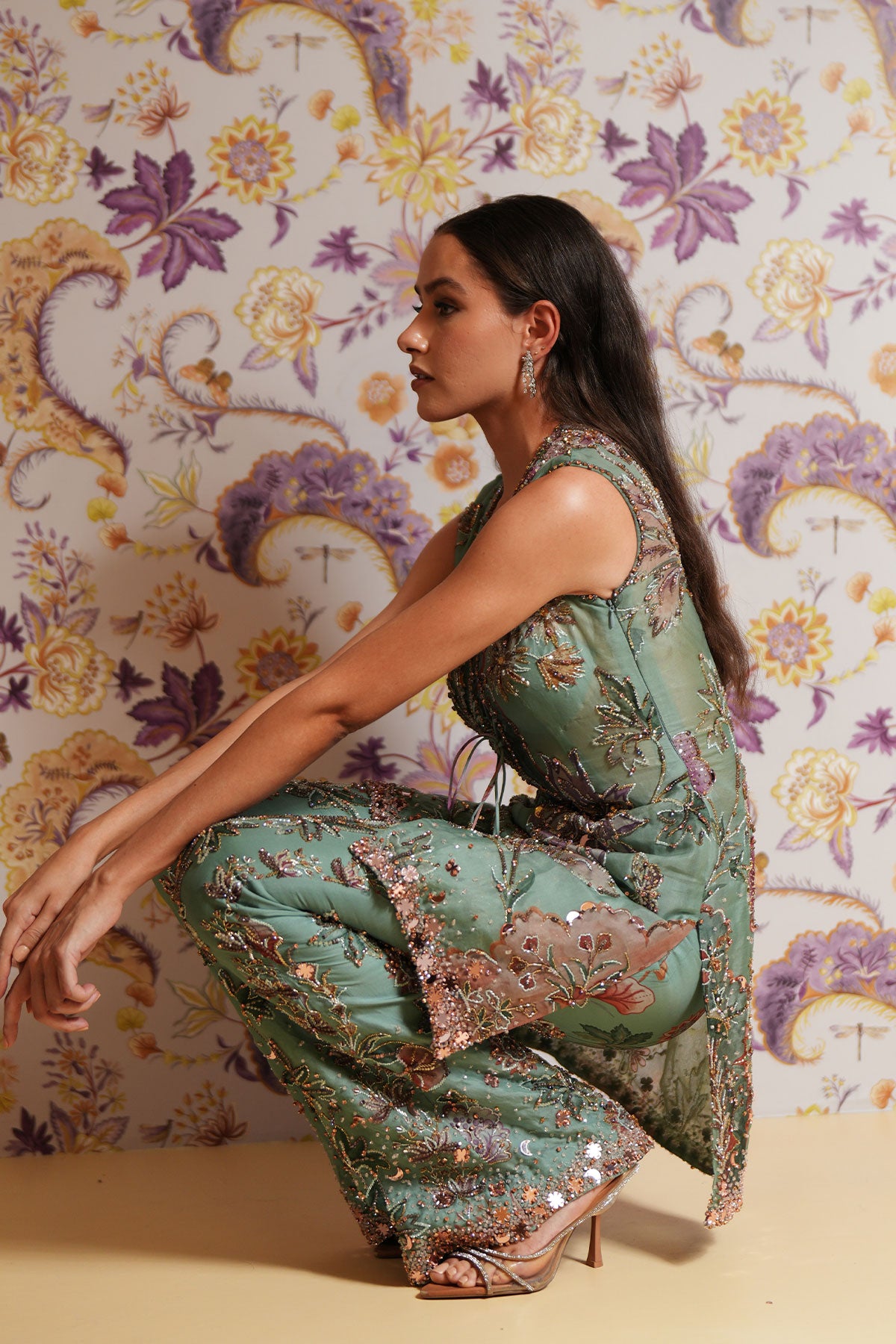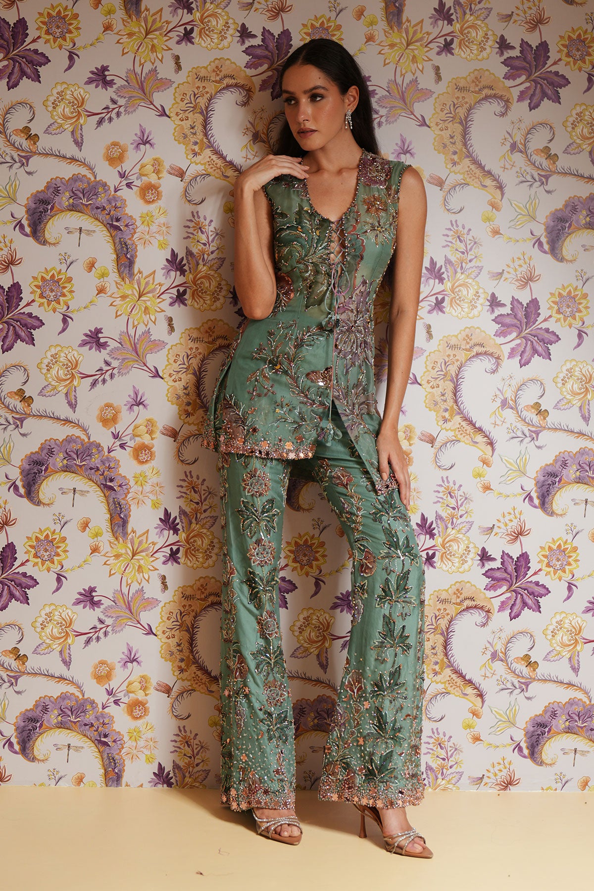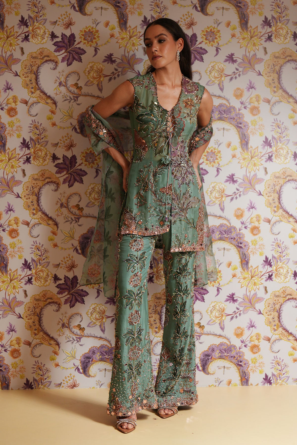 Hand Embroidered Short Kurta Paired With Embroidered Straight Pants And Dupatta