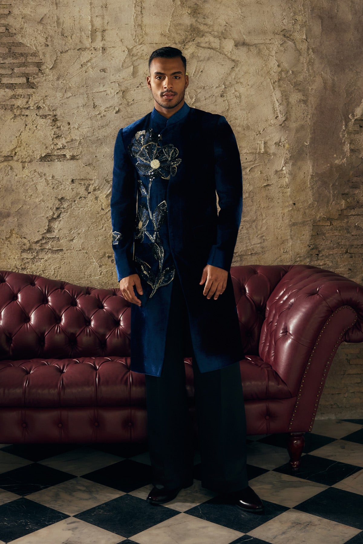 COLOR: Navy Blue ( Sherwani ) Black ( Trouser )