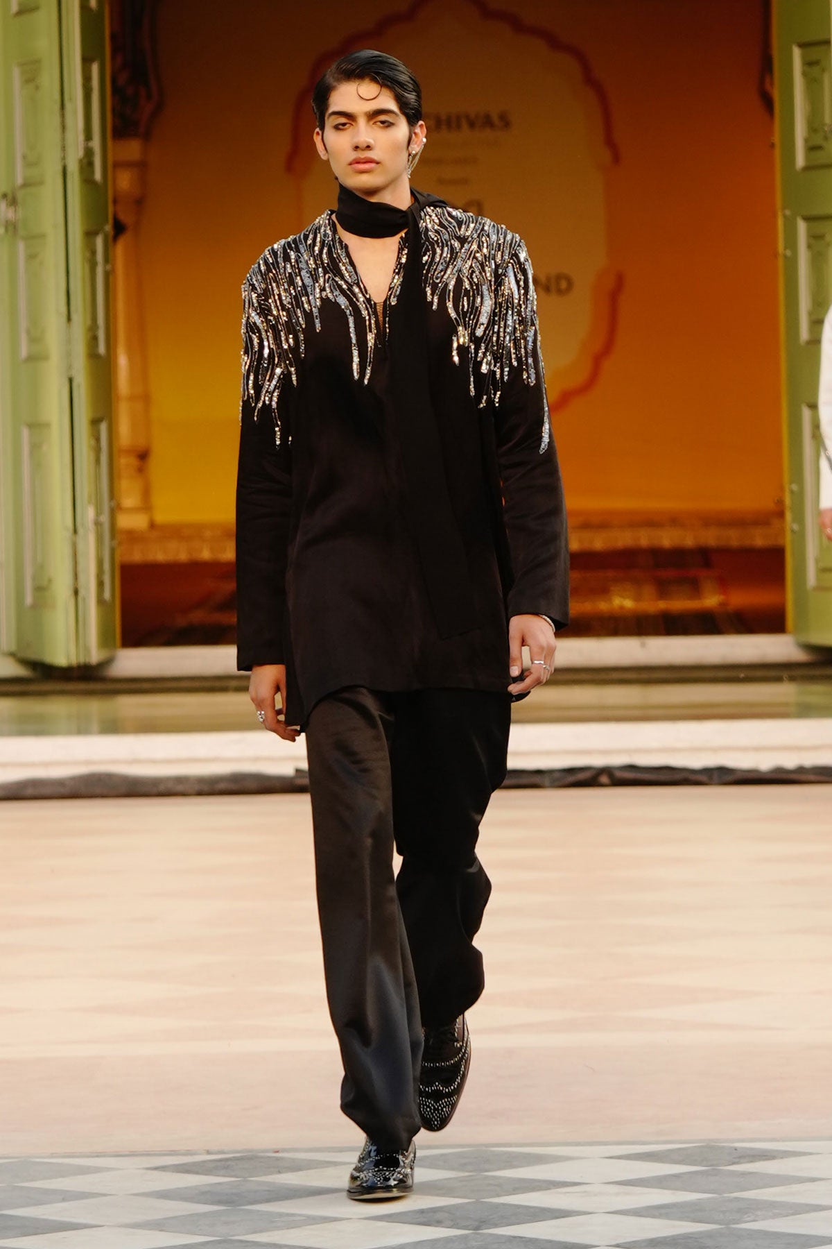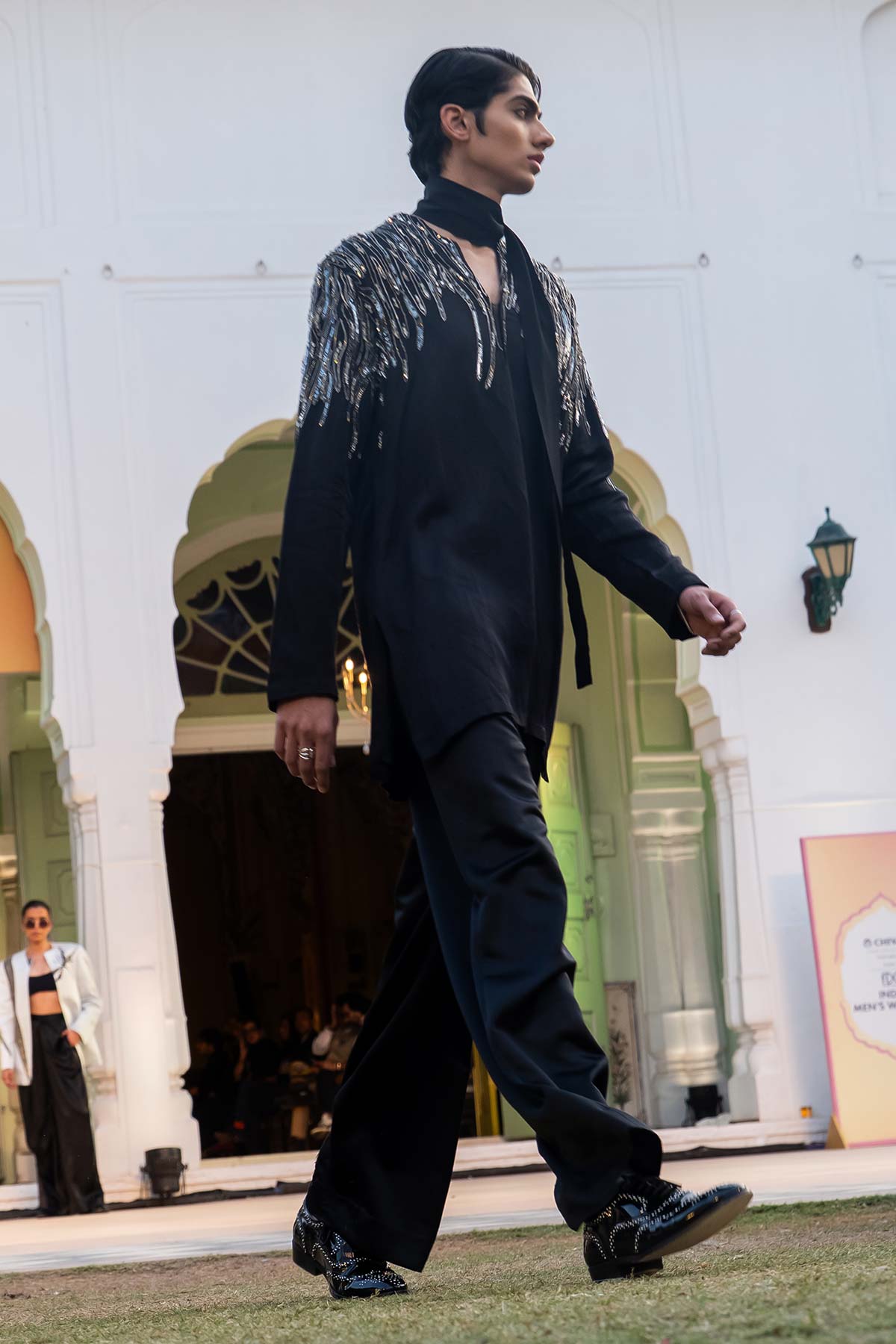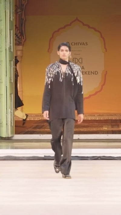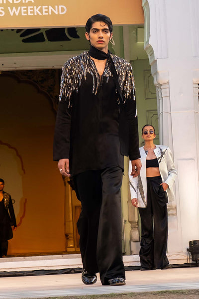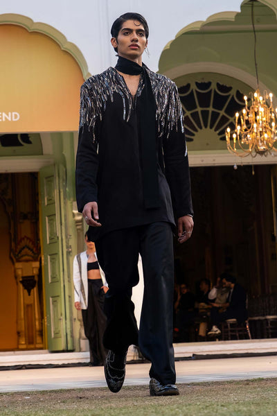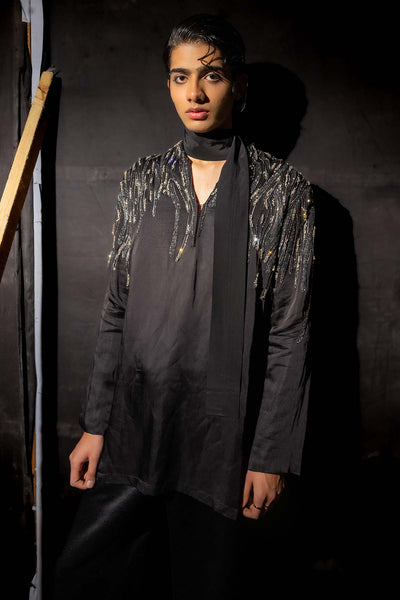 Art-Contemo Pakistani Kurta with Raised Neck Detailing Teamed with Tailored Wide Leg Trouser