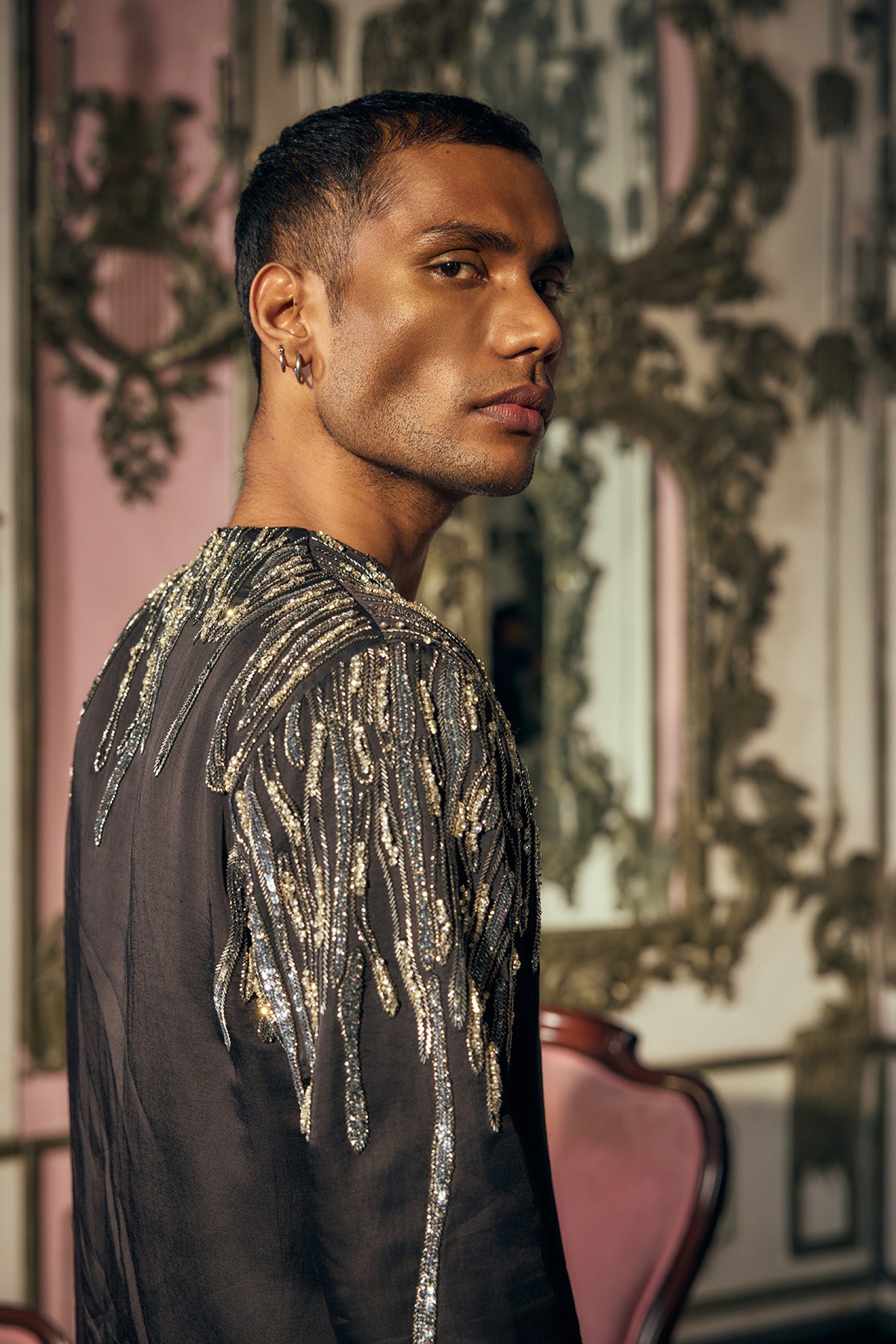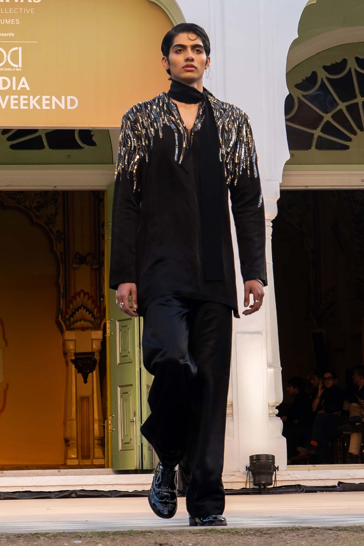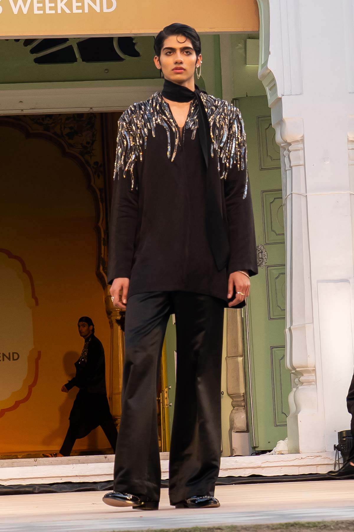 Art-Contemo Pakistani Kurta with Raised Neck Detailing Teamed with Tailored Wide Leg Trouser