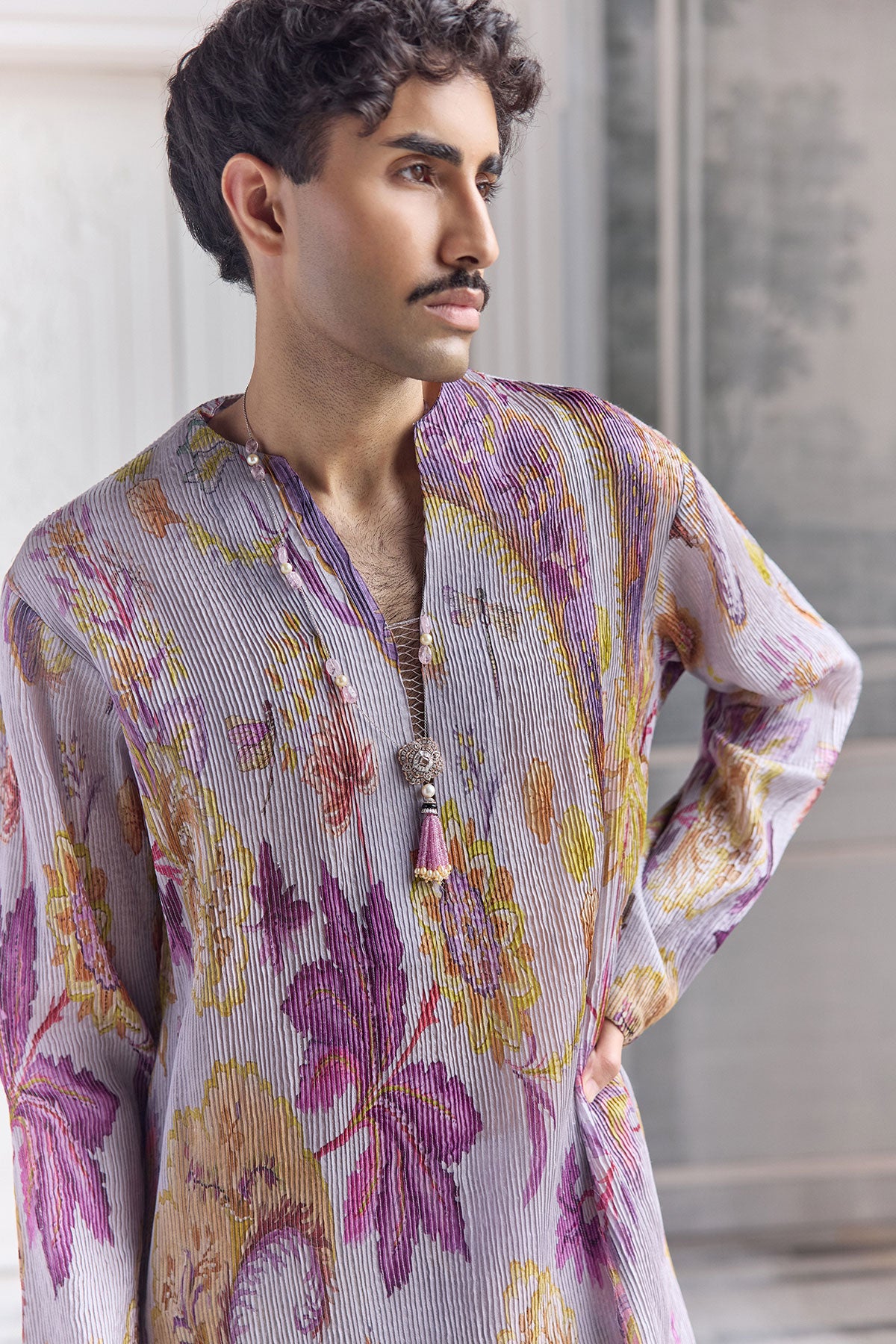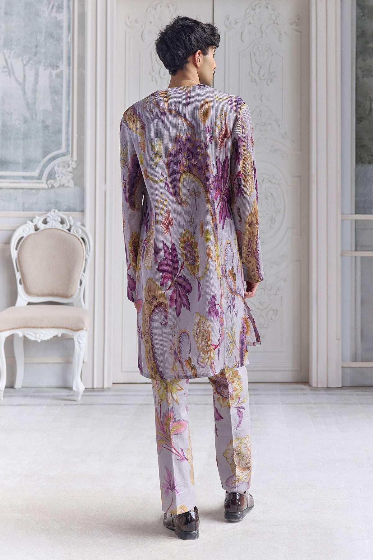 PRINTED MID LENGTH KURTA PAIRED WITH PINTUCK DETAILING TROUSER