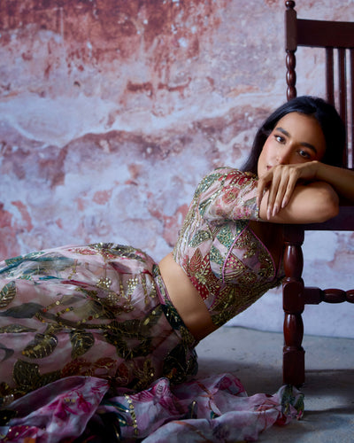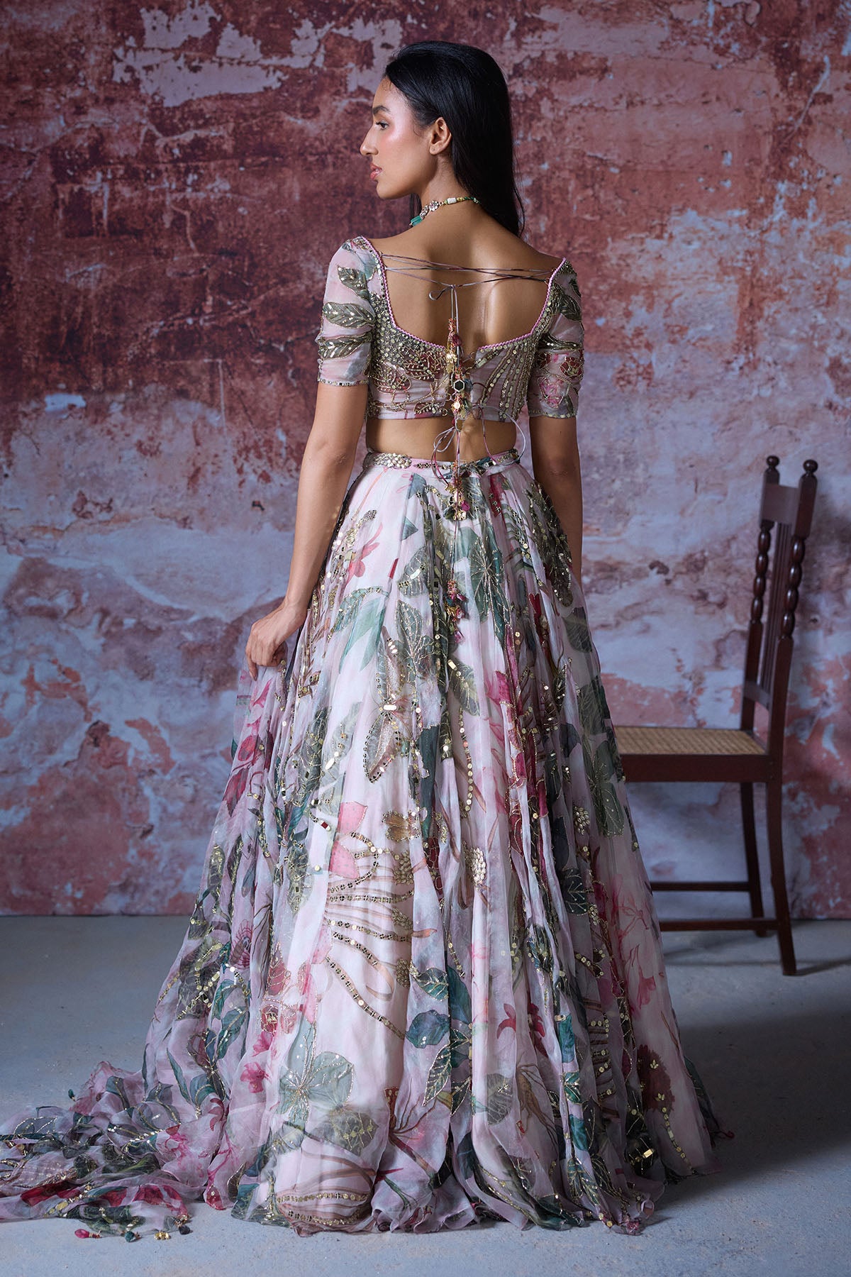 HAND EMBROIDERED LEHENGA WITH EMBROIDERED CORSET BLOUSE AND DUPATTA