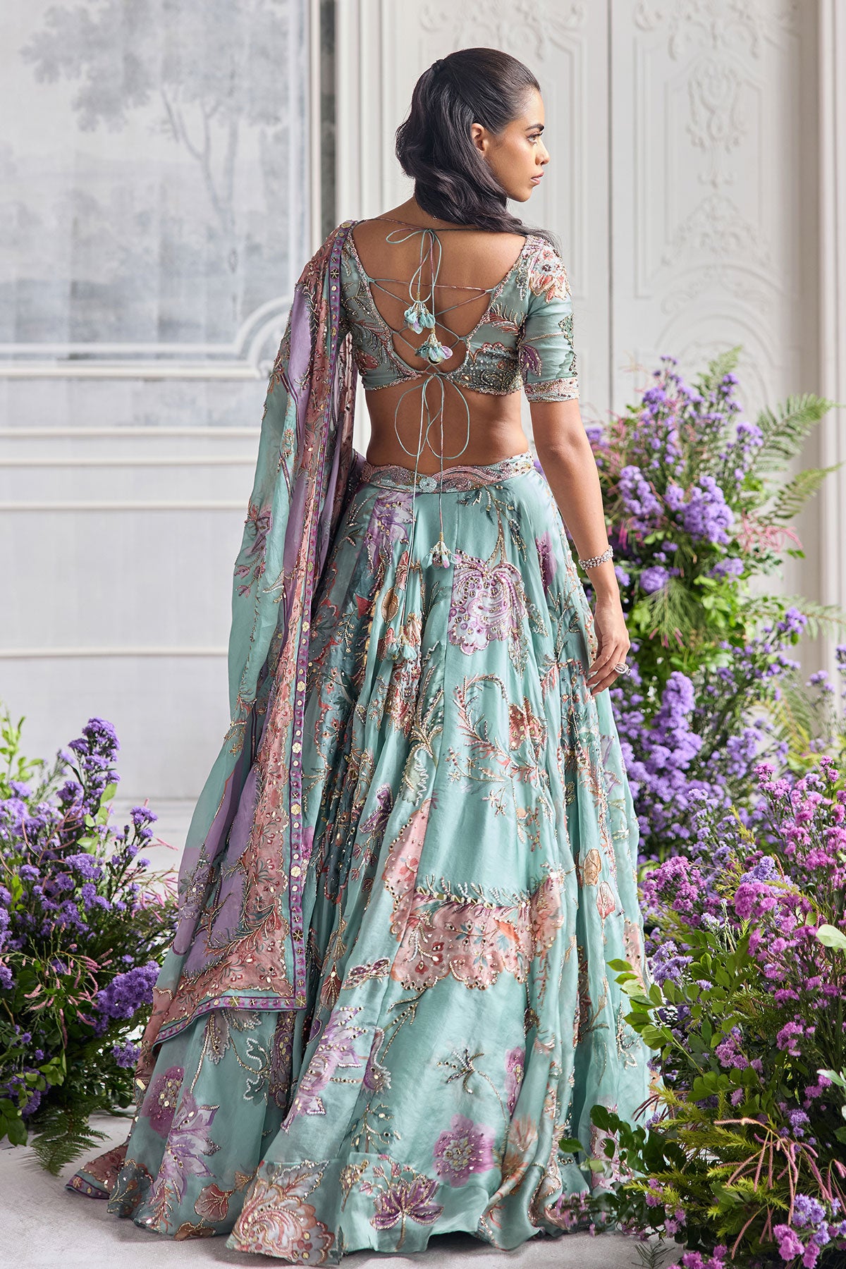 HEAVY HAND EMBROIDERED LEHENGA SET PAIRED WITH ADDITIONAL SECOND DUPATTA AND EMBELLISHED WAIST BELT