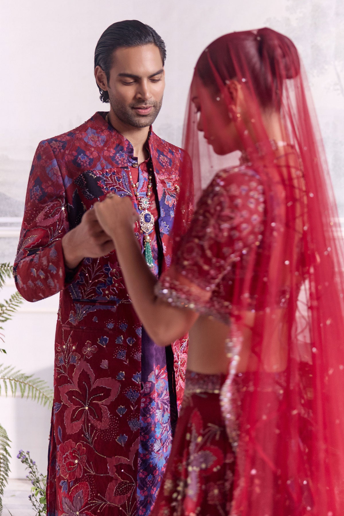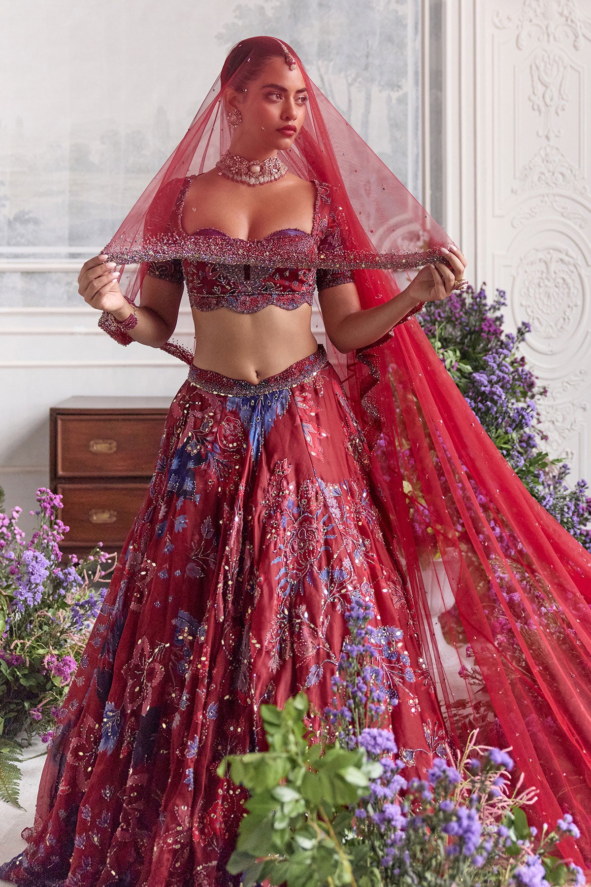 HEAVY HAND EMBROIDERED SCALLOPED BLOUSE PAIRED WITH HEAVY EMBROIDERED LEHENGA AND DUPATTA FEATURING VEIL