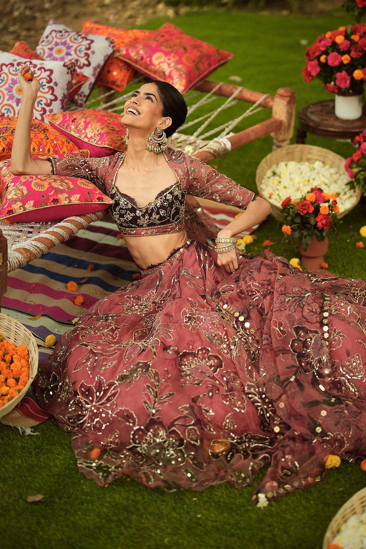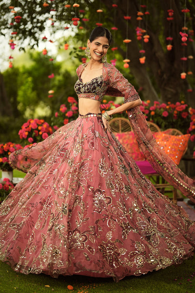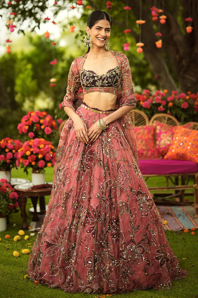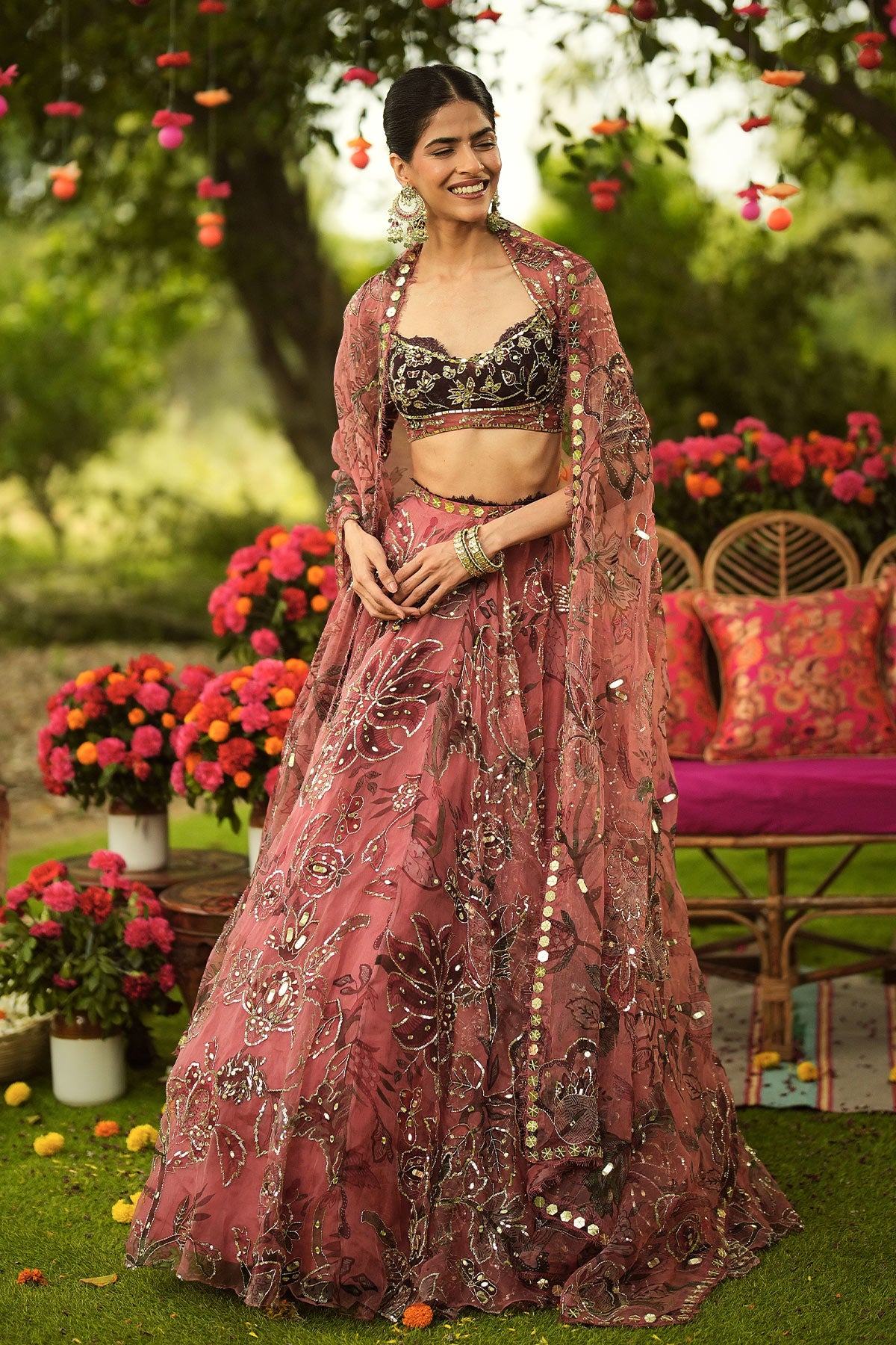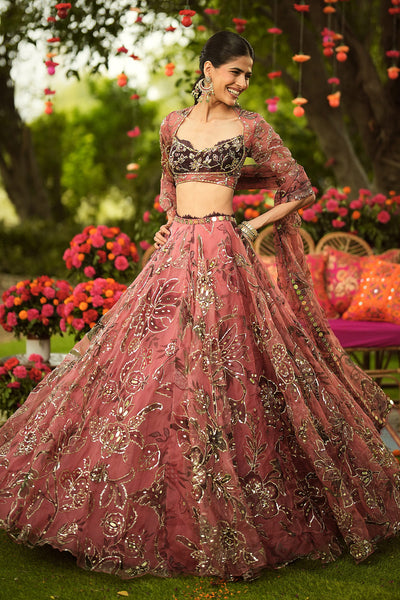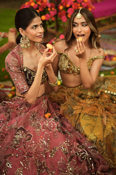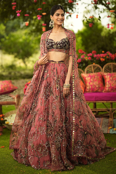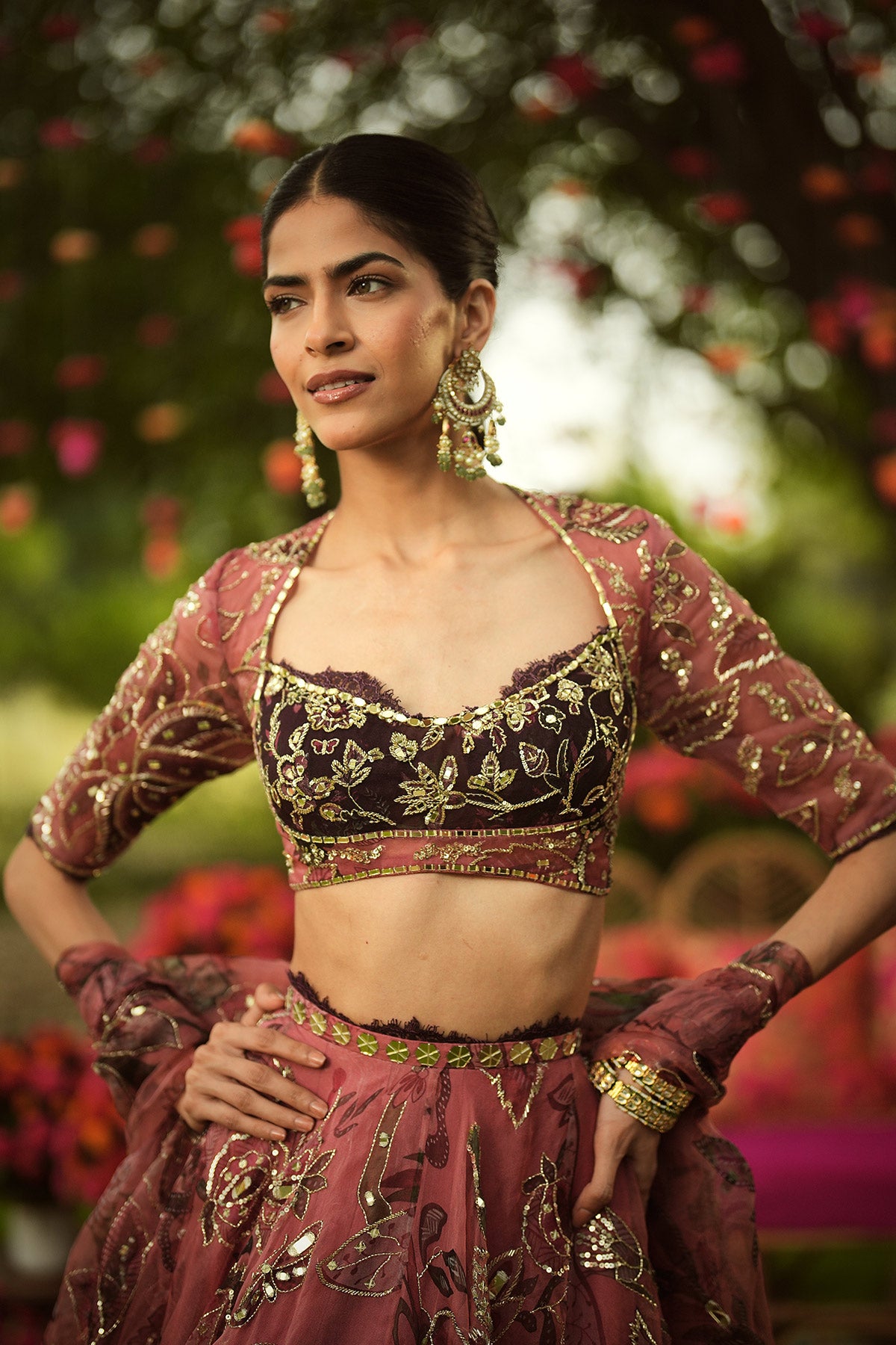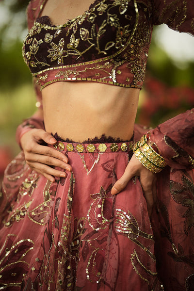 Heavy Hand Embroidered Choli Cut Blouse And Lehenga With Lace Detailing Paired With Dupatta