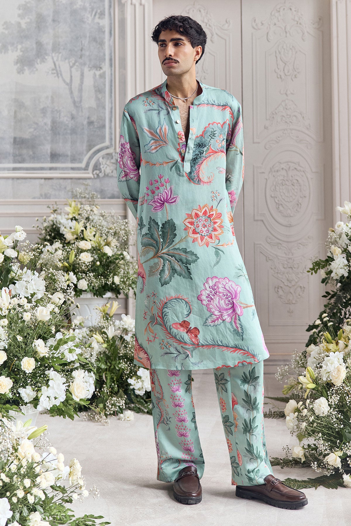 PRINTED KURTA SET PAIRED WITH PINTUCK DETAILING TROUSER