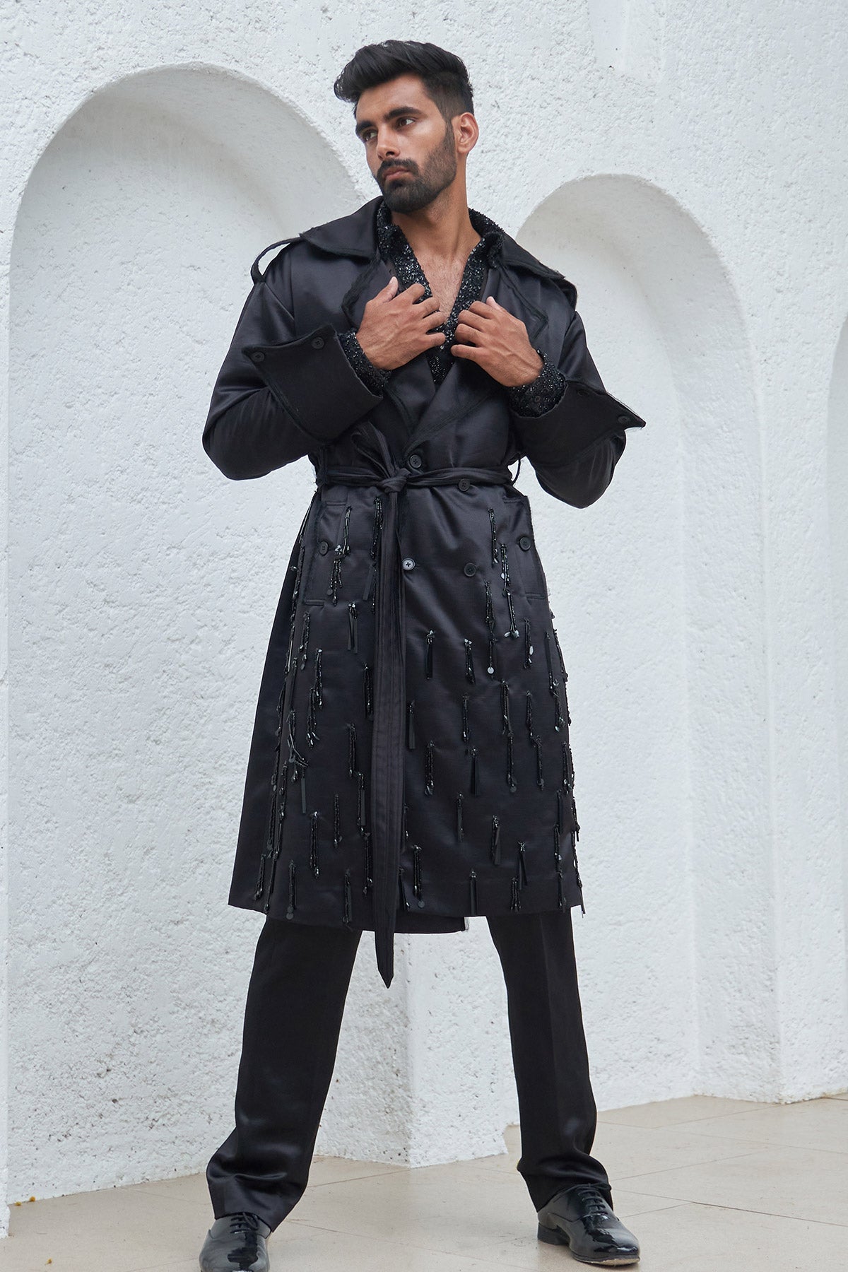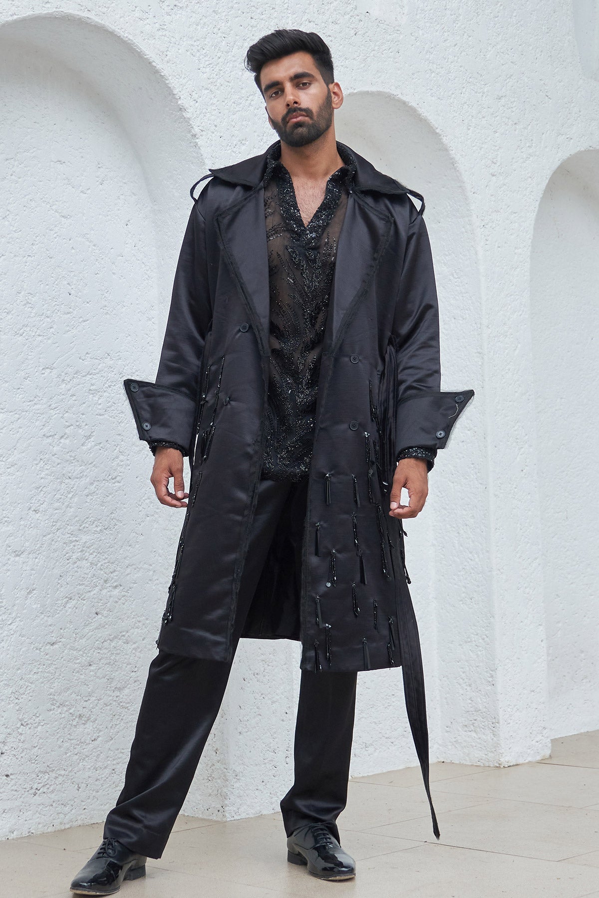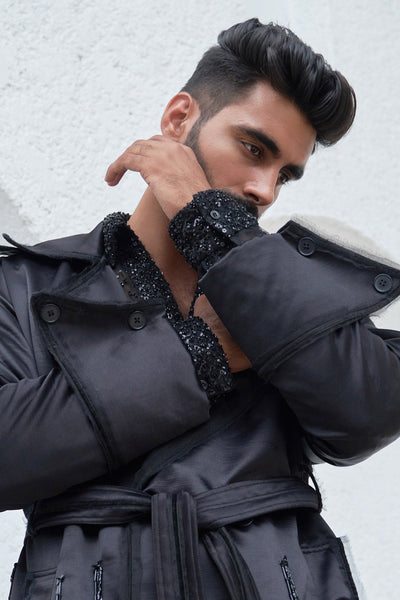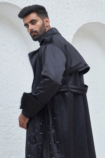 Embroidered Trench Coat With Pants