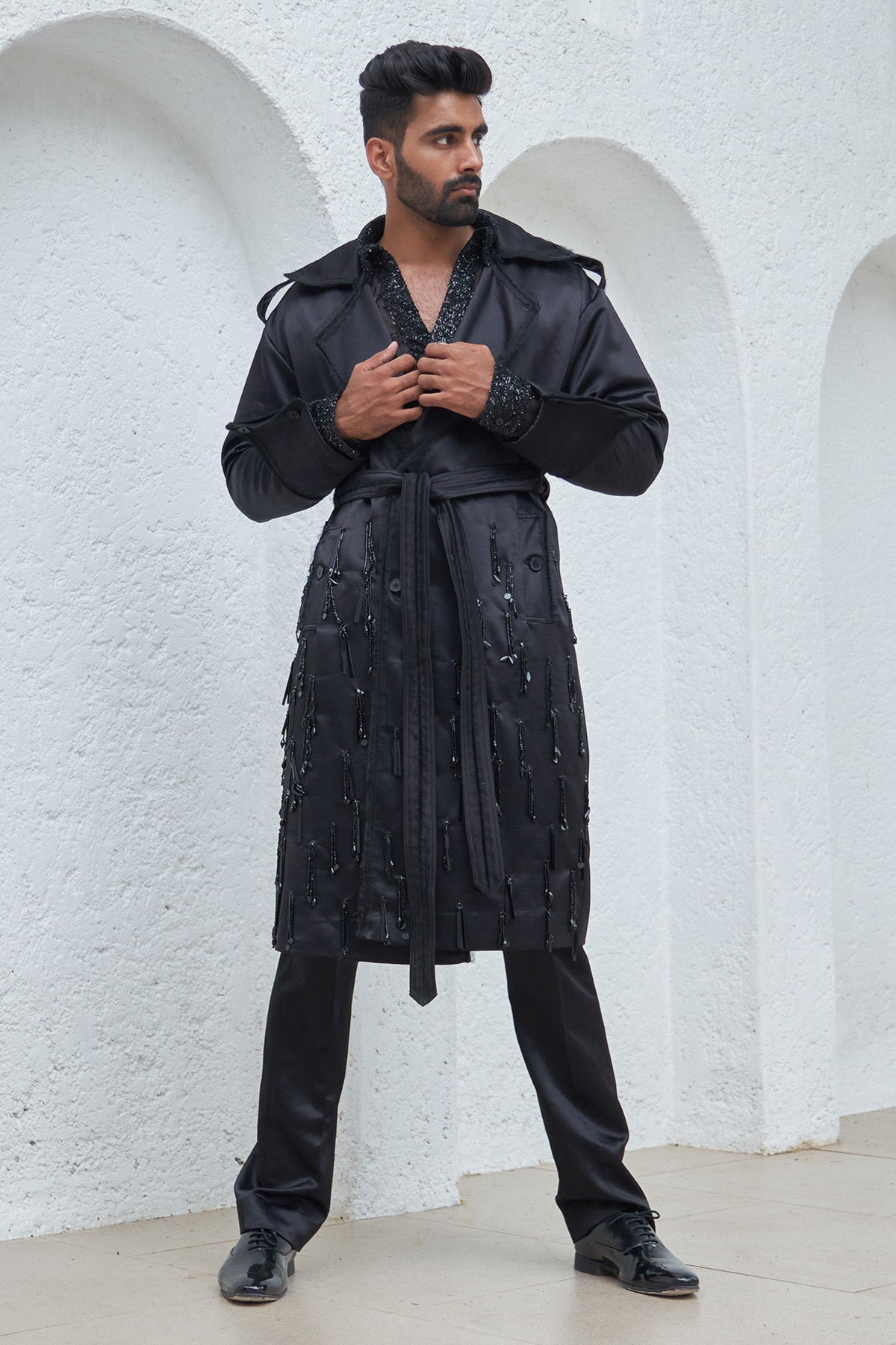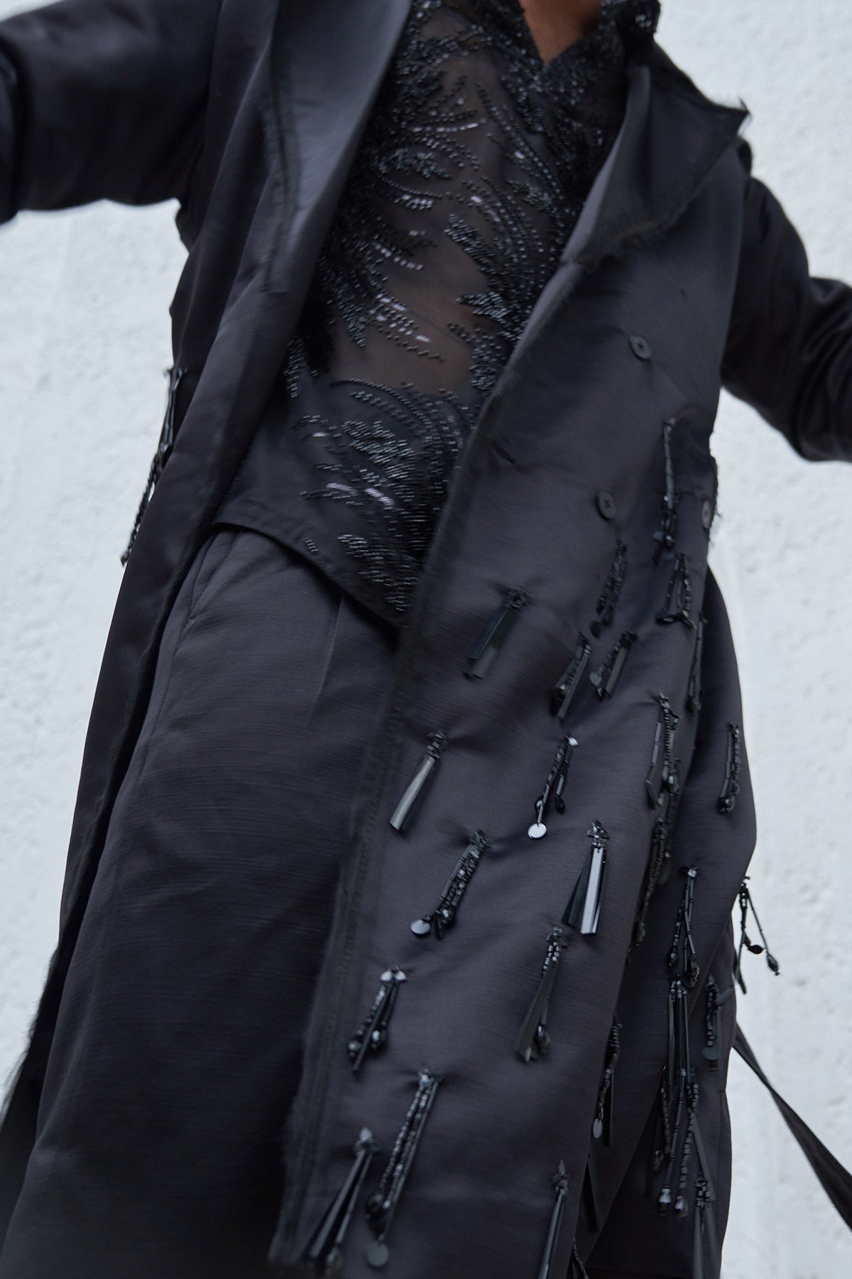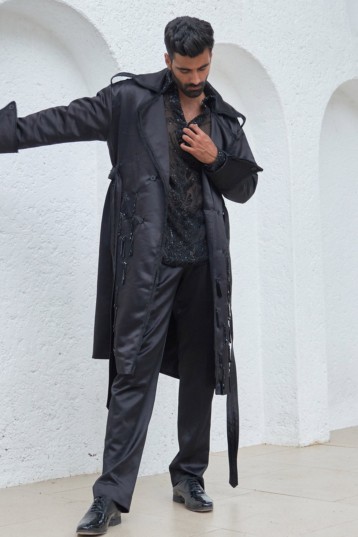 Embroidered Trench Coat With Pants