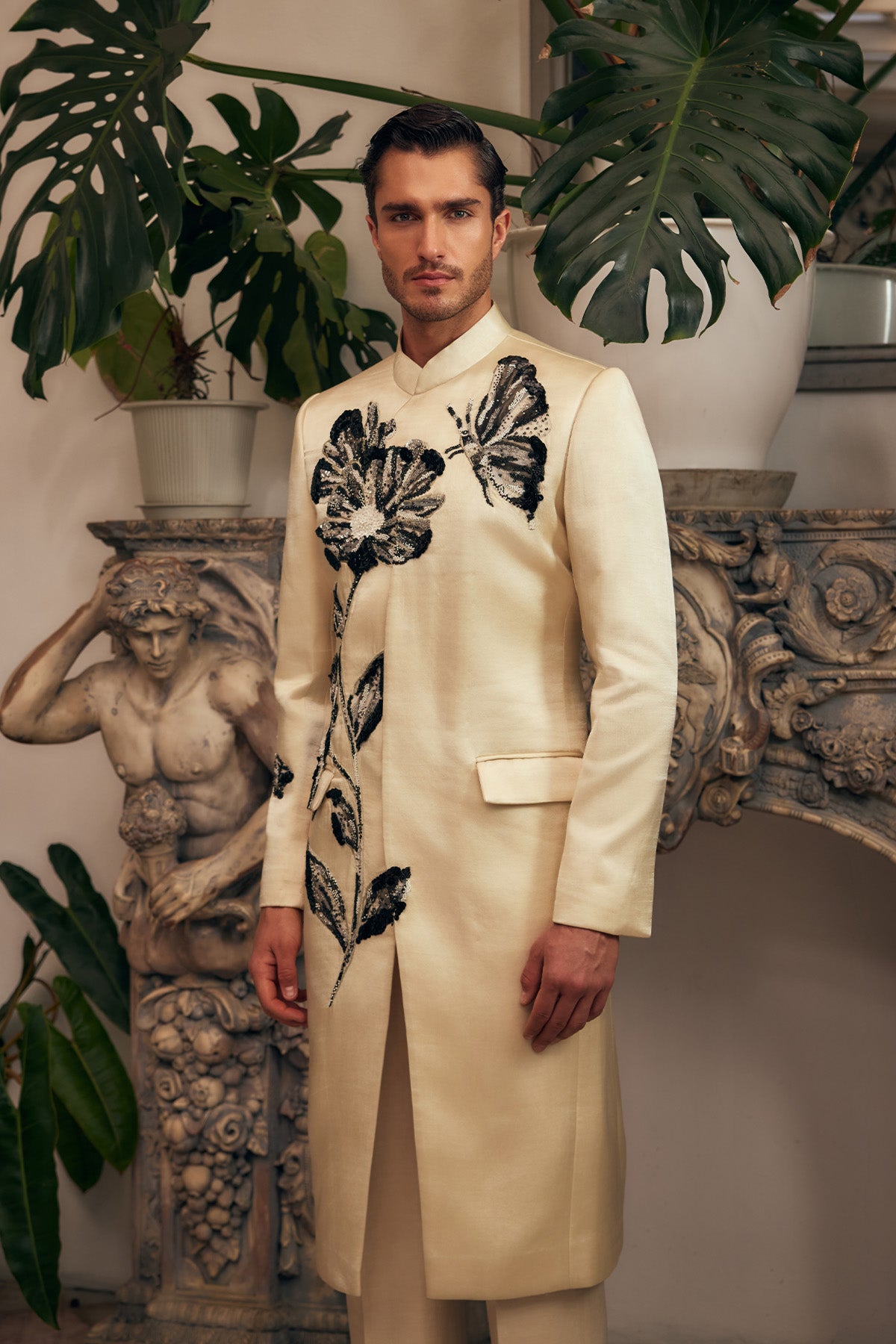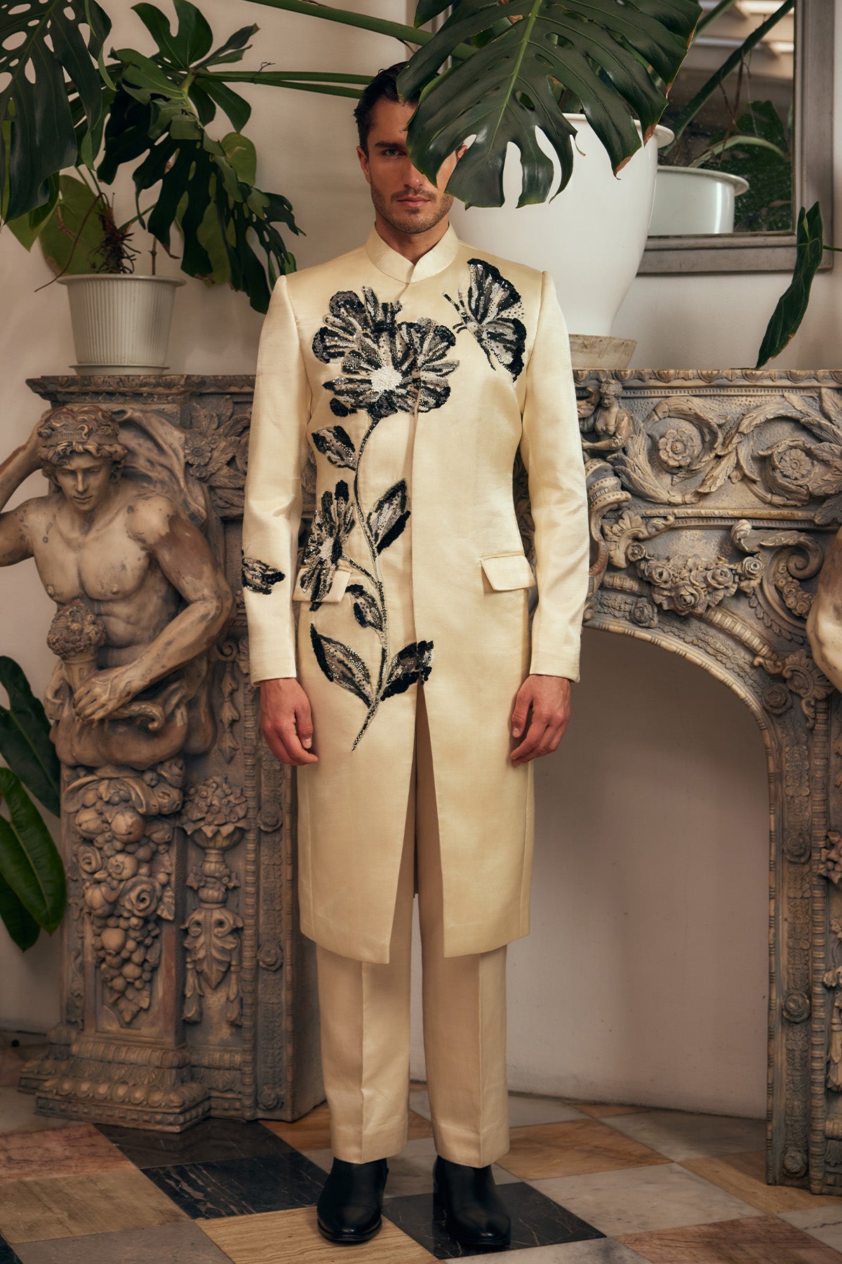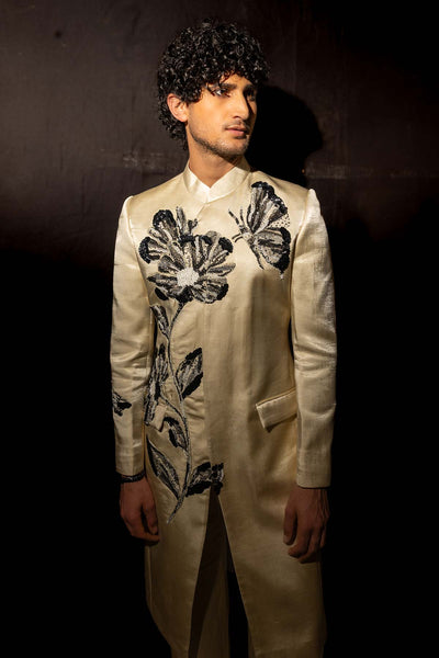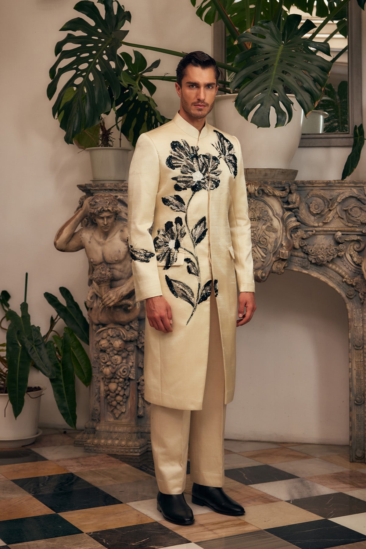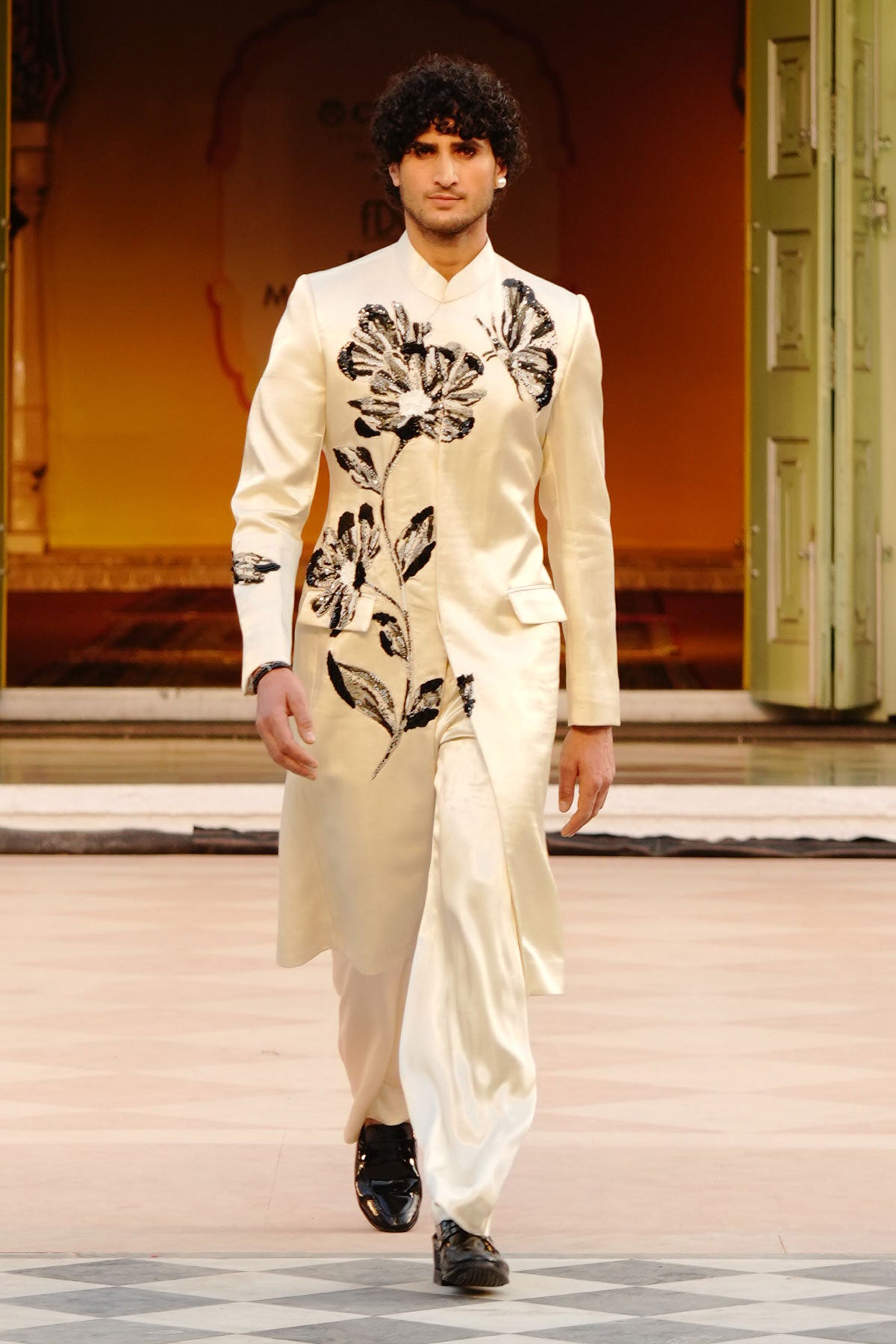 Monochrome Hand Embroidered Indo Western Sherwani set