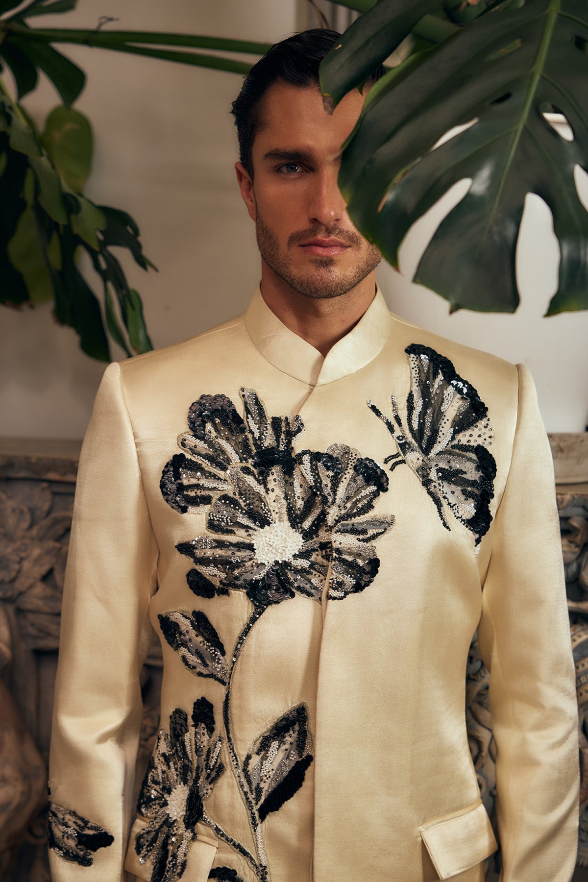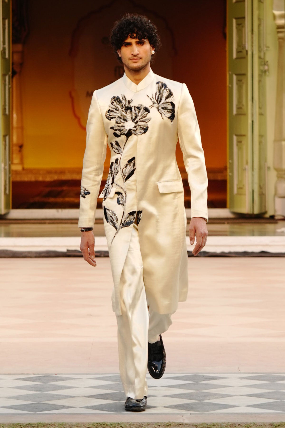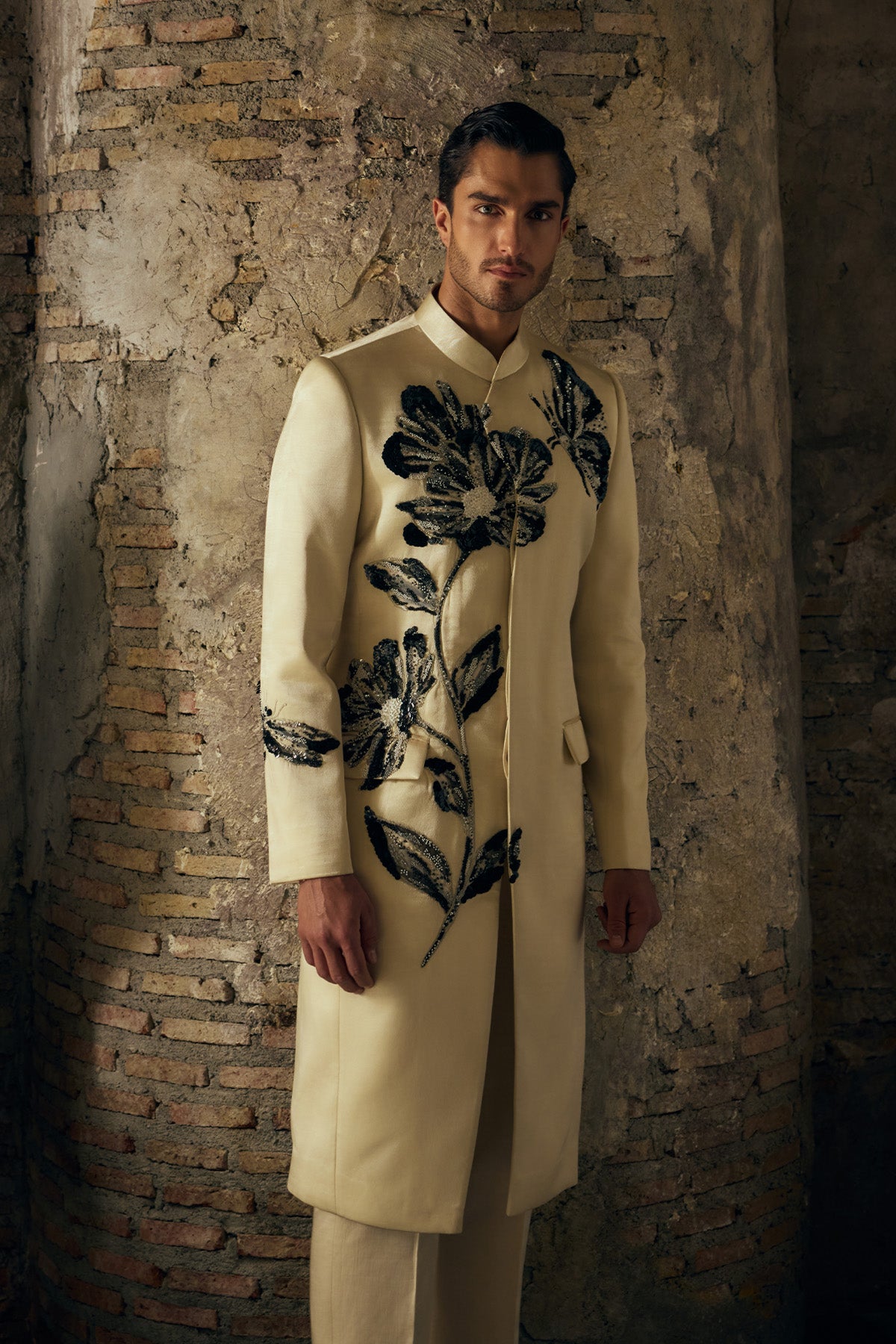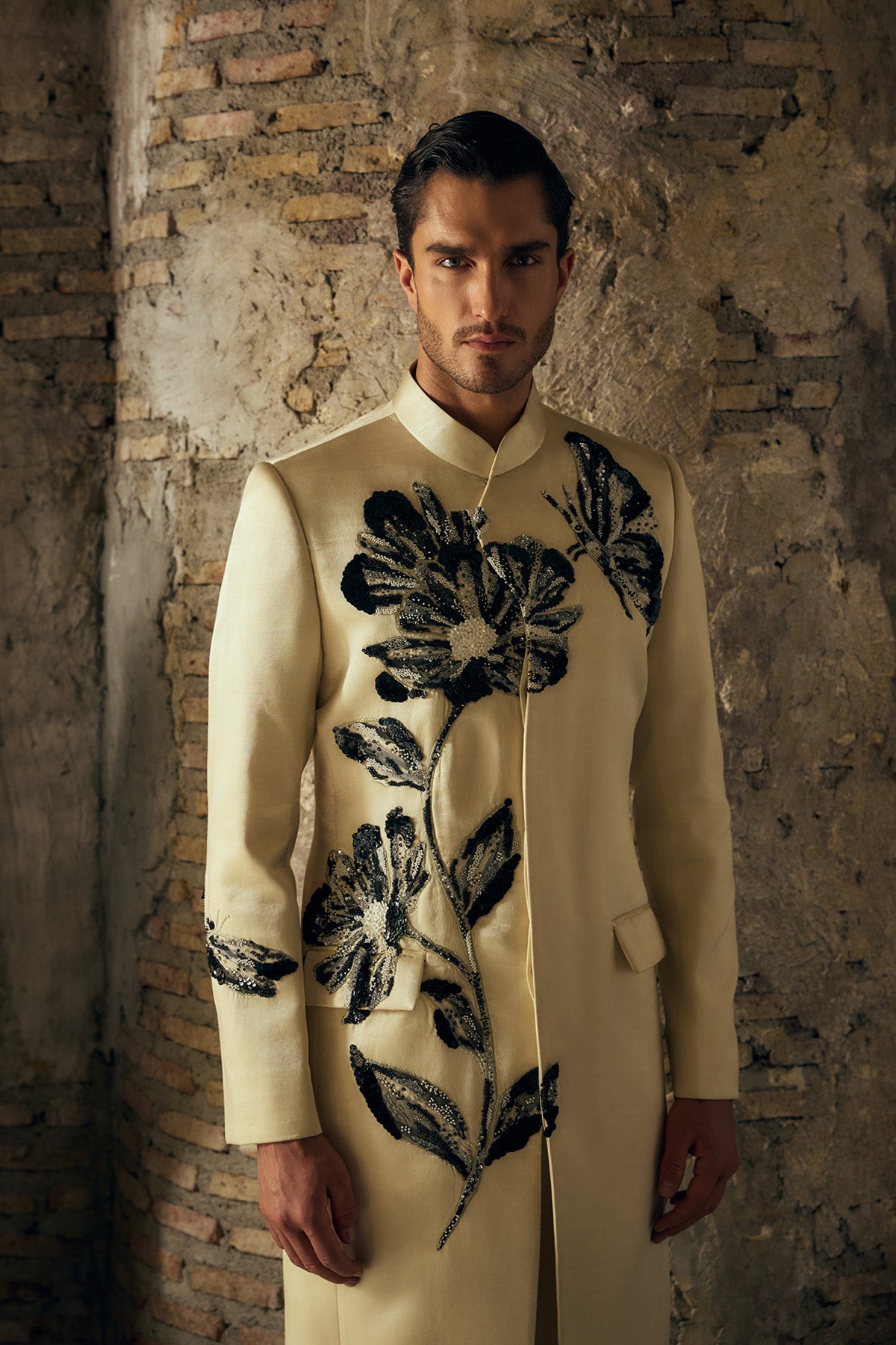 Monochrome Hand Embroidered Indo Western Sherwani set