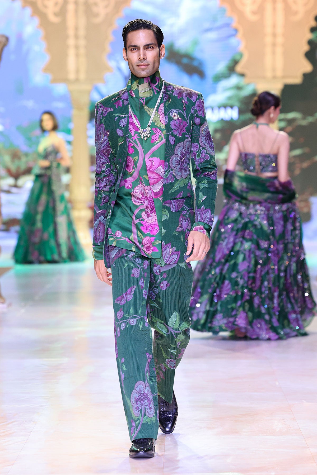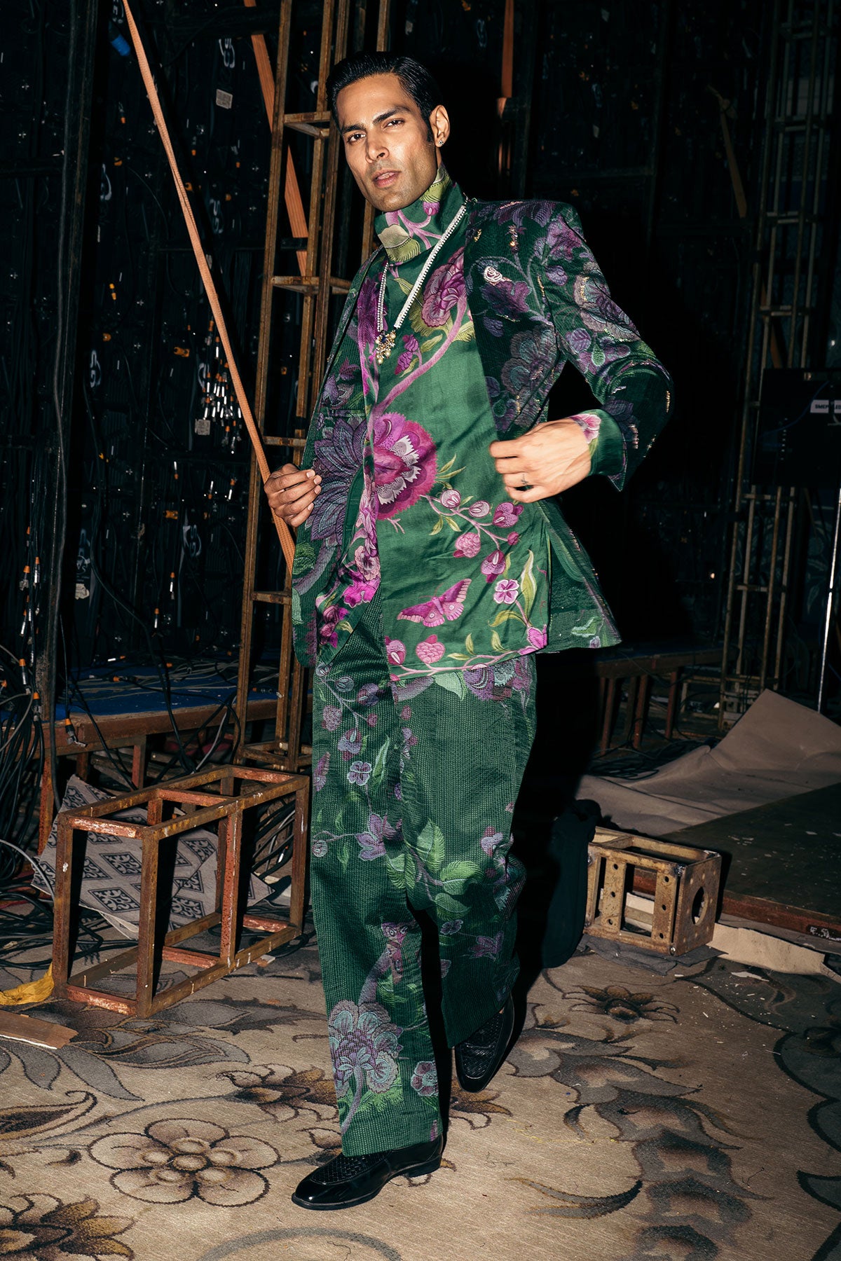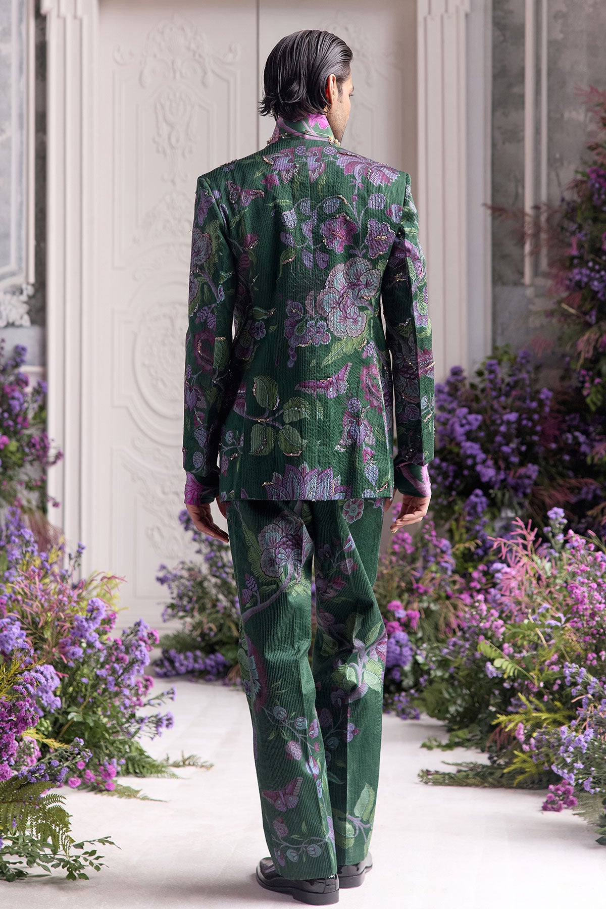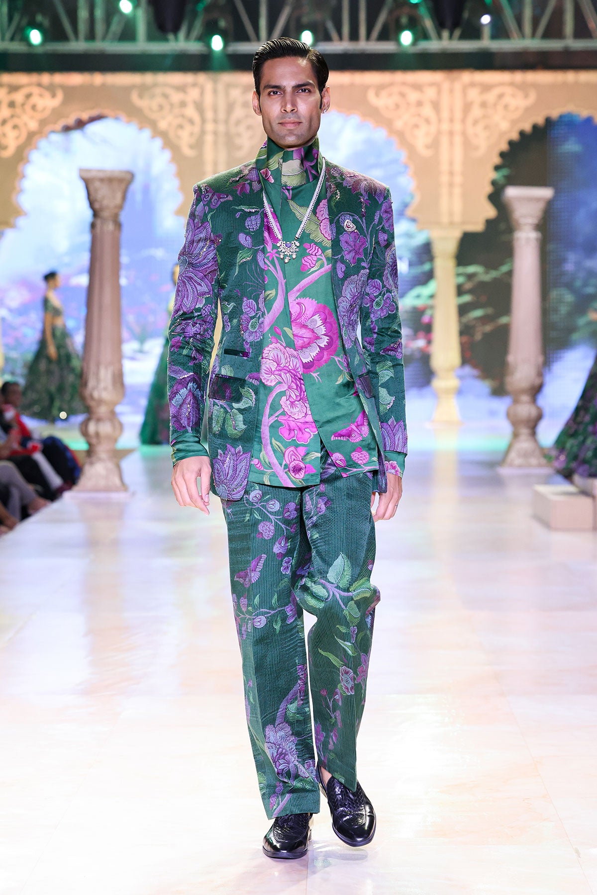 HAND EMBROIDERED BLAZER PAIRED WITH HIGH NECK SHIRT AND TROUSER