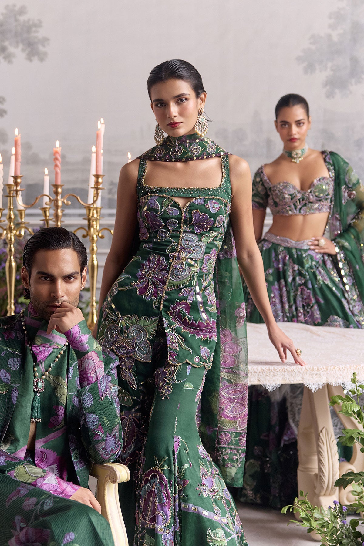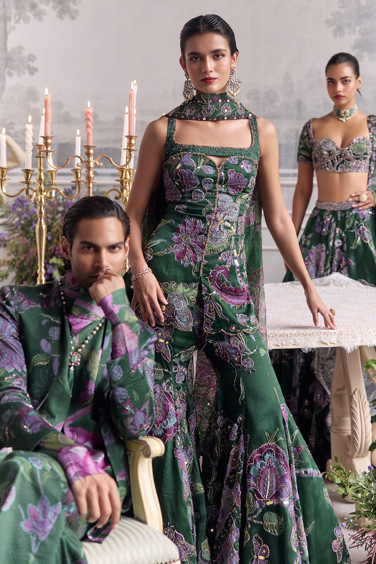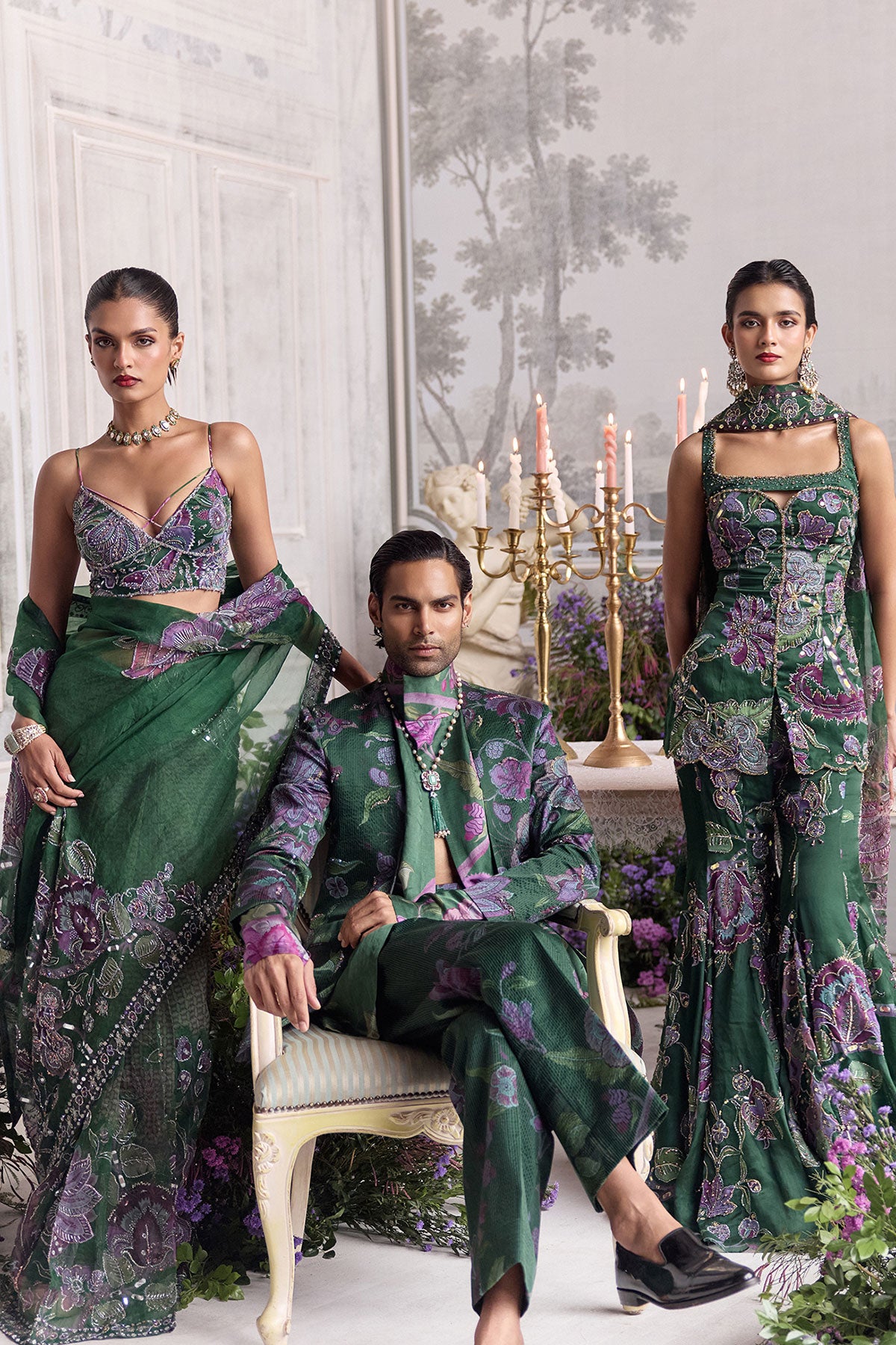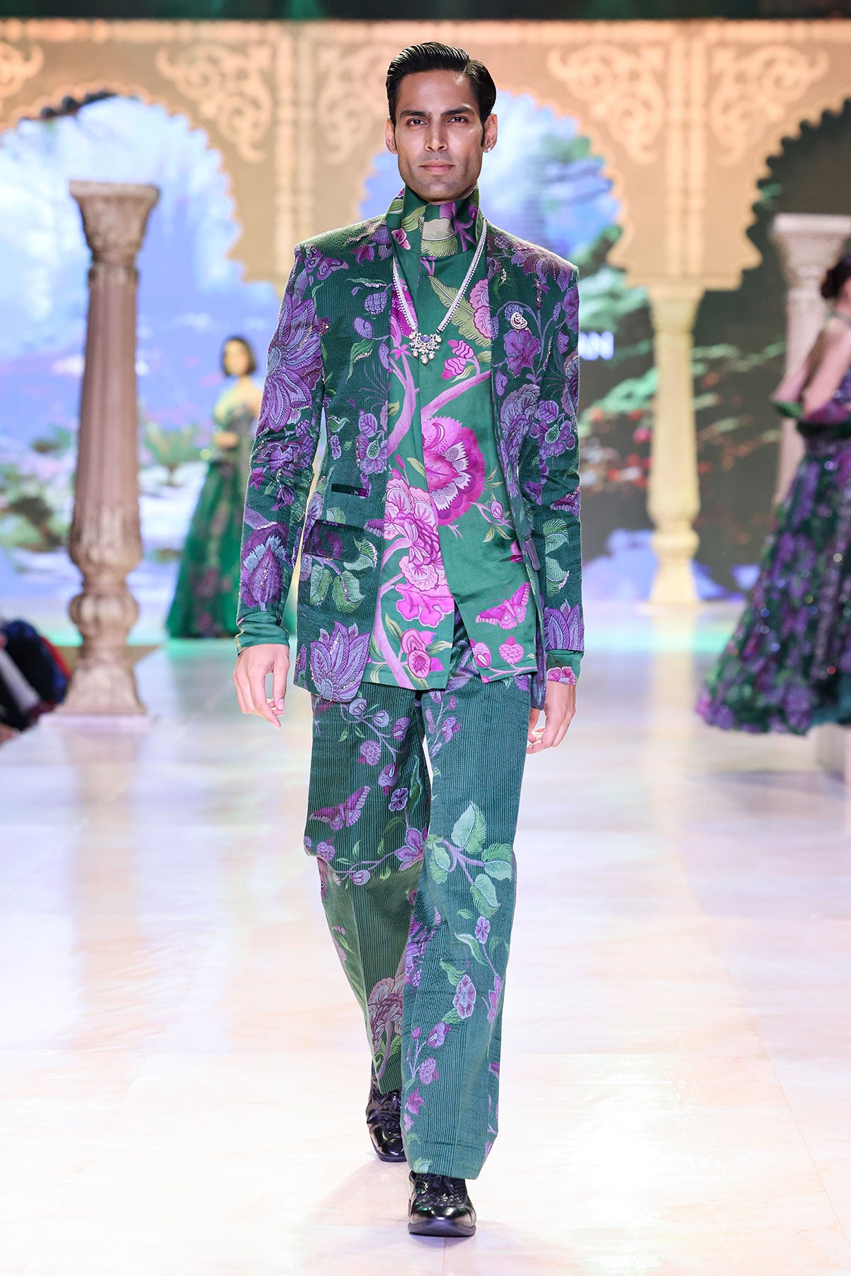 HAND EMBROIDERED BLAZER PAIRED WITH HIGH NECK SHIRT AND TROUSER