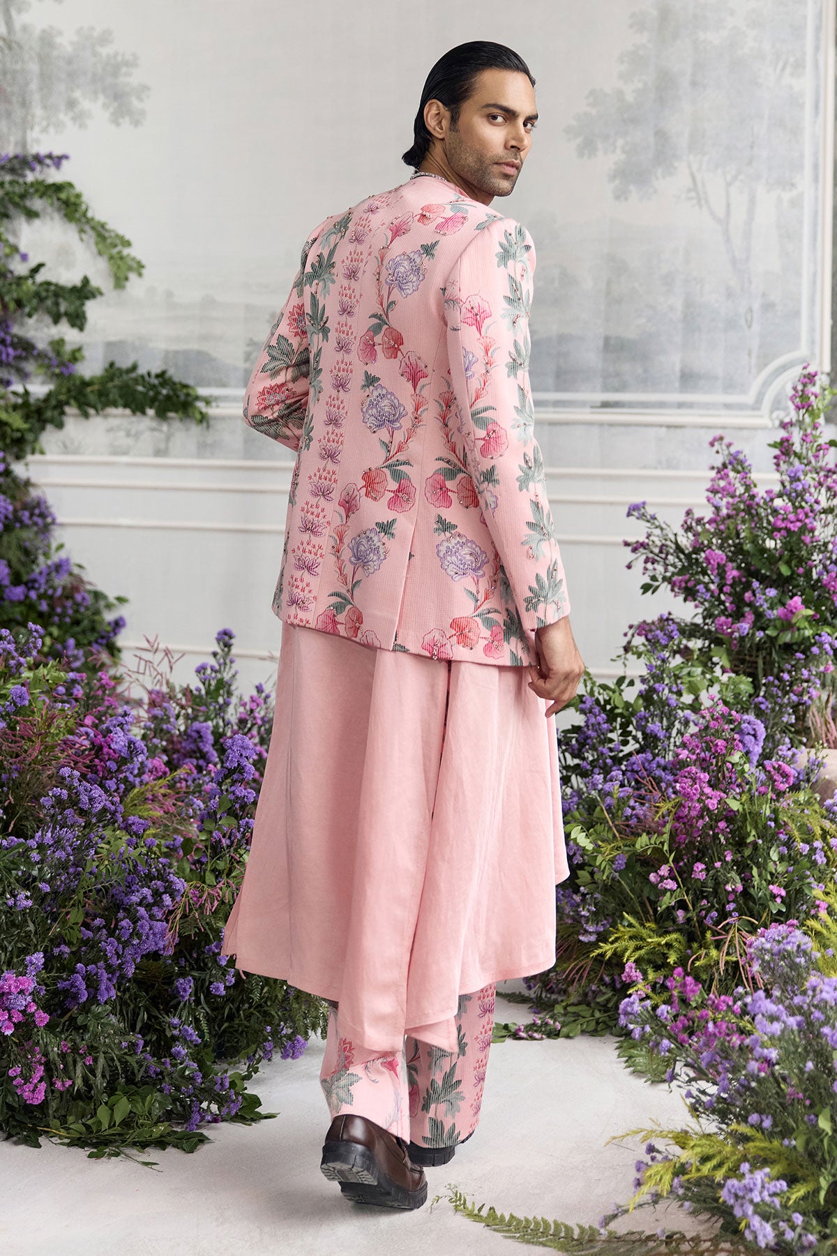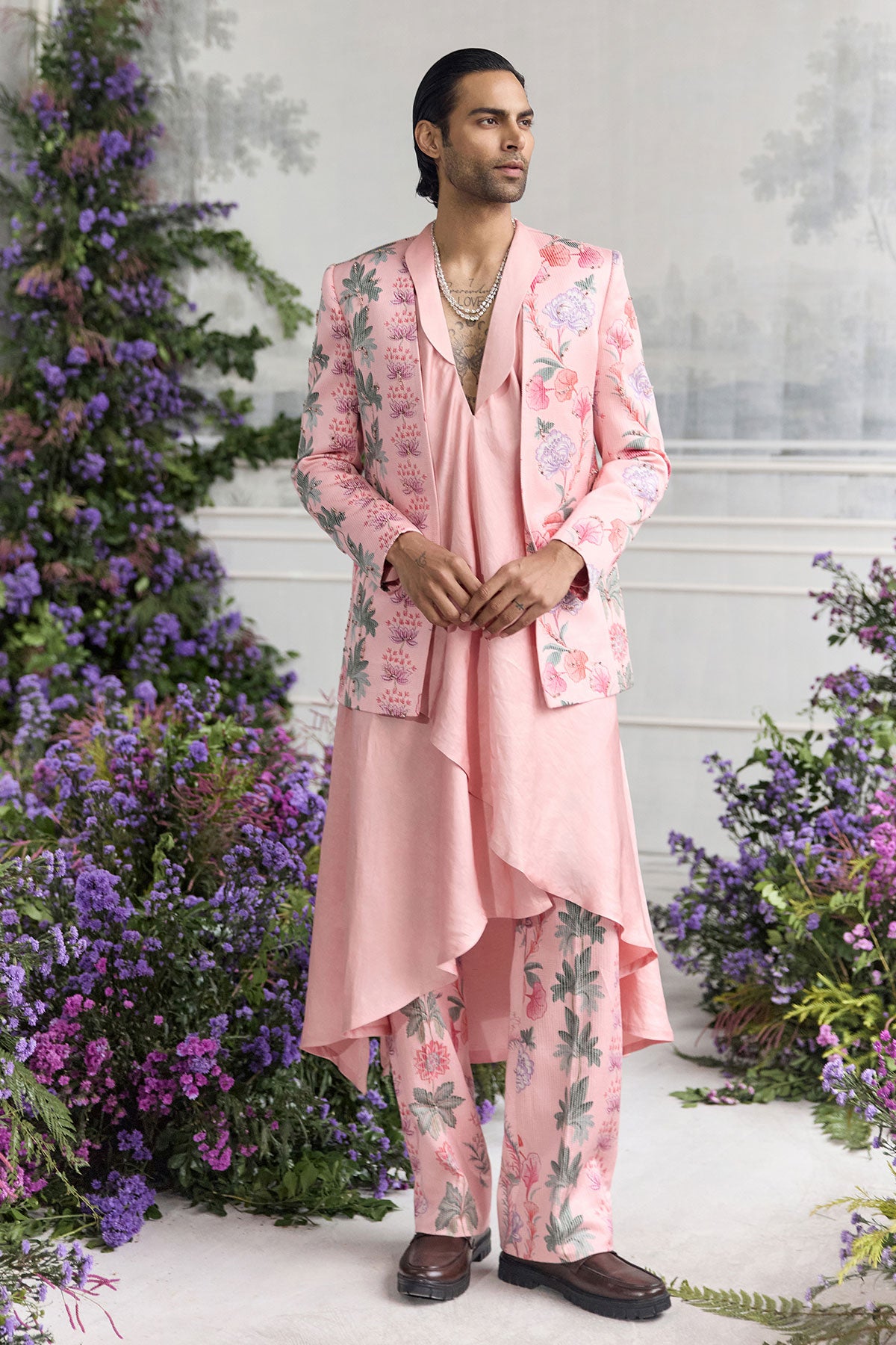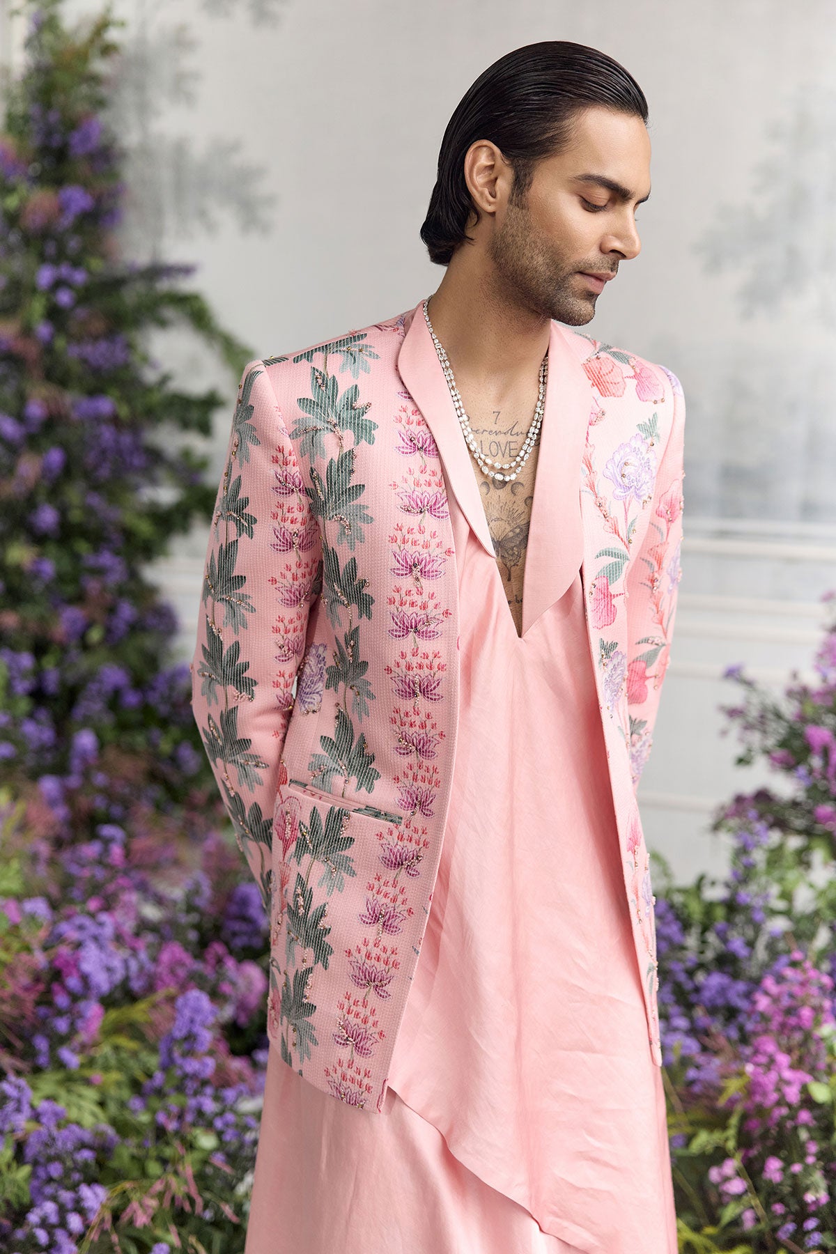 QUILTED HAND EMBROIDERED BLAZER PAIRED WITH ANGRAKHA KURTA AND QUILTED TROUSER