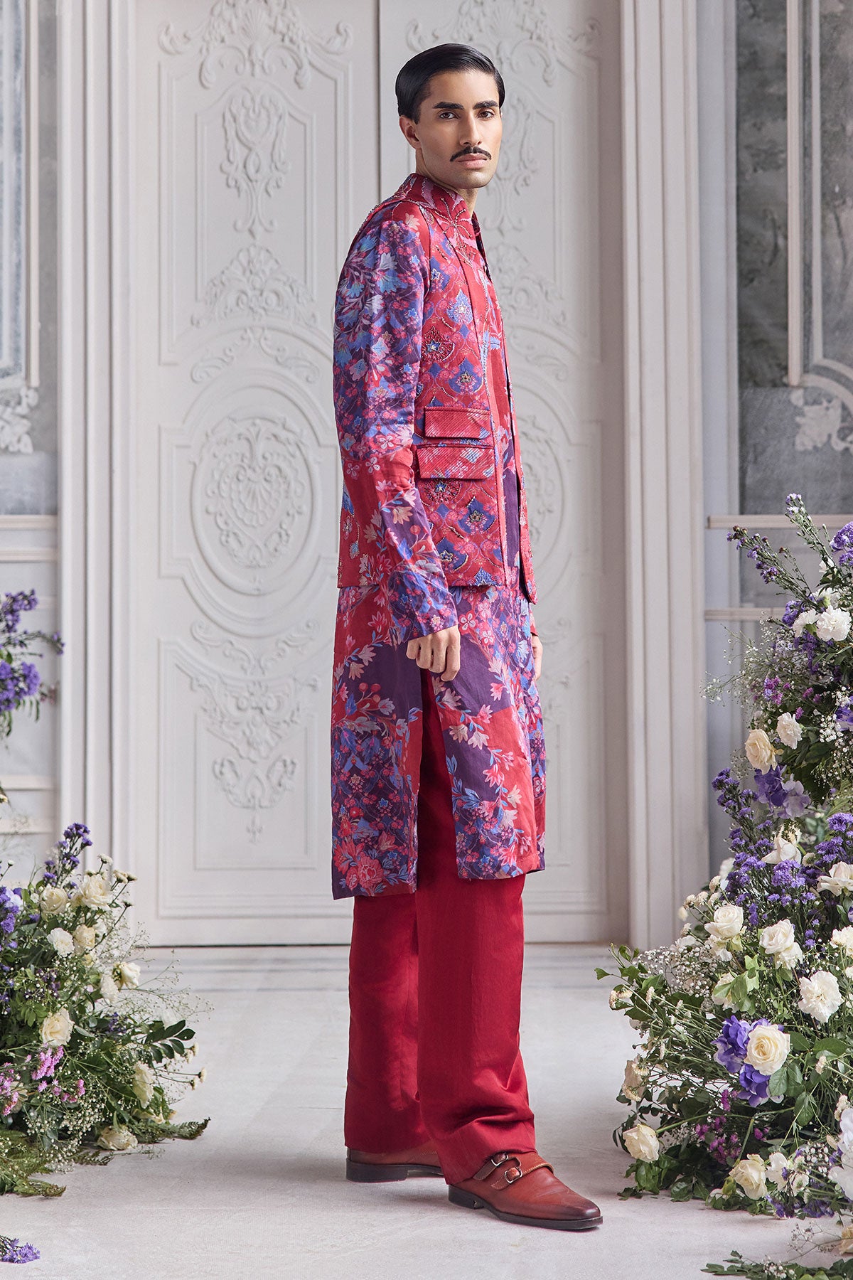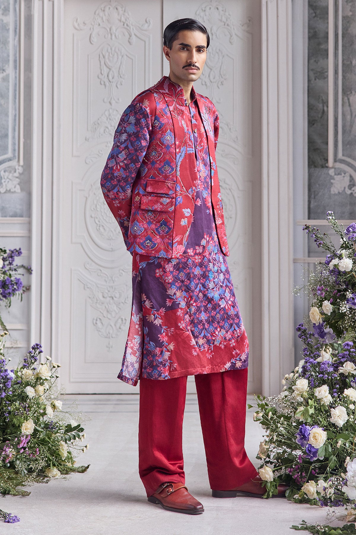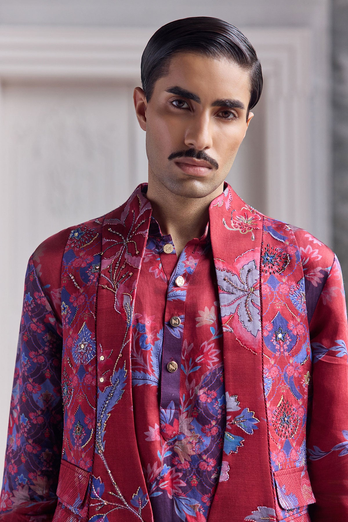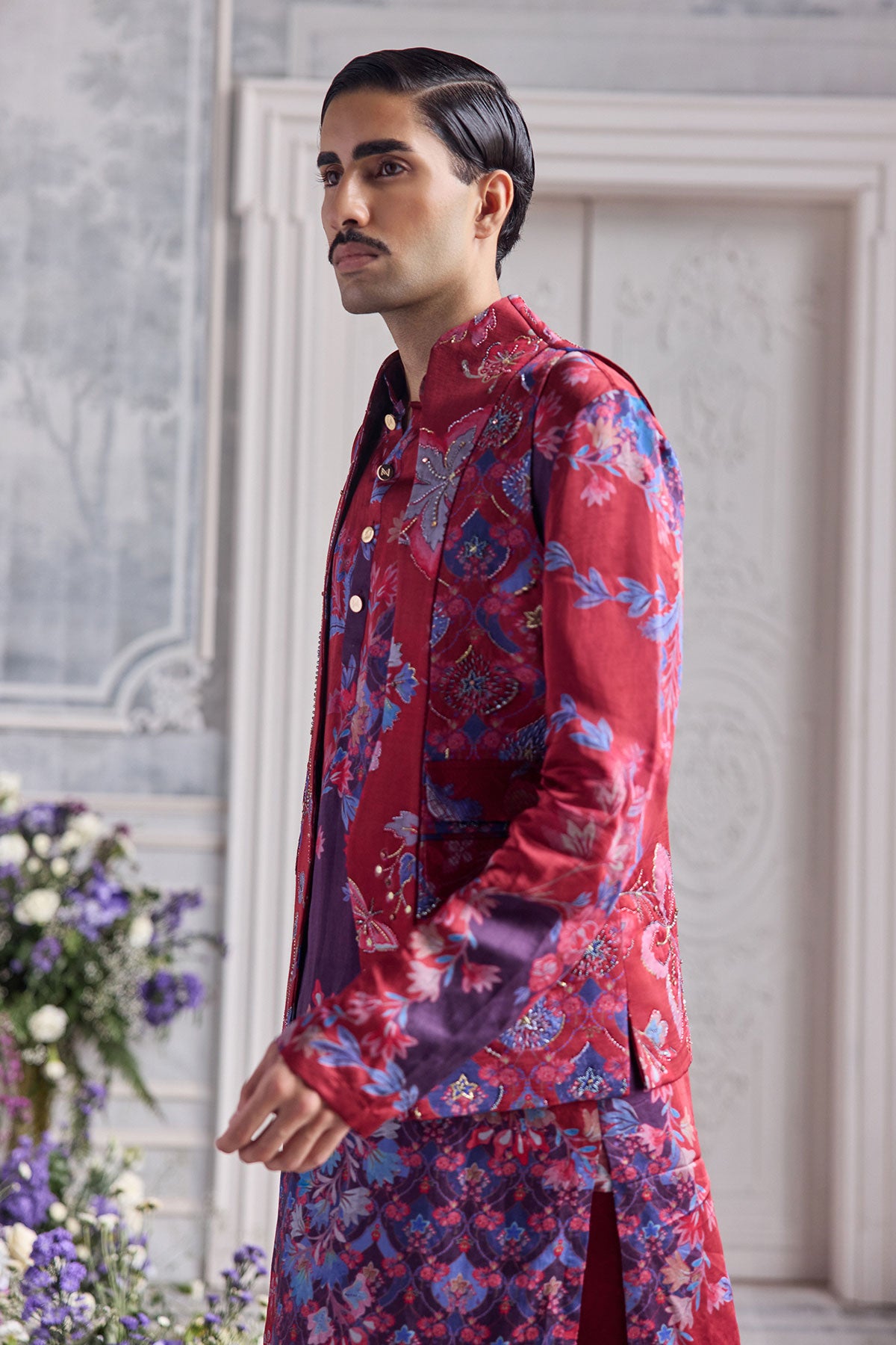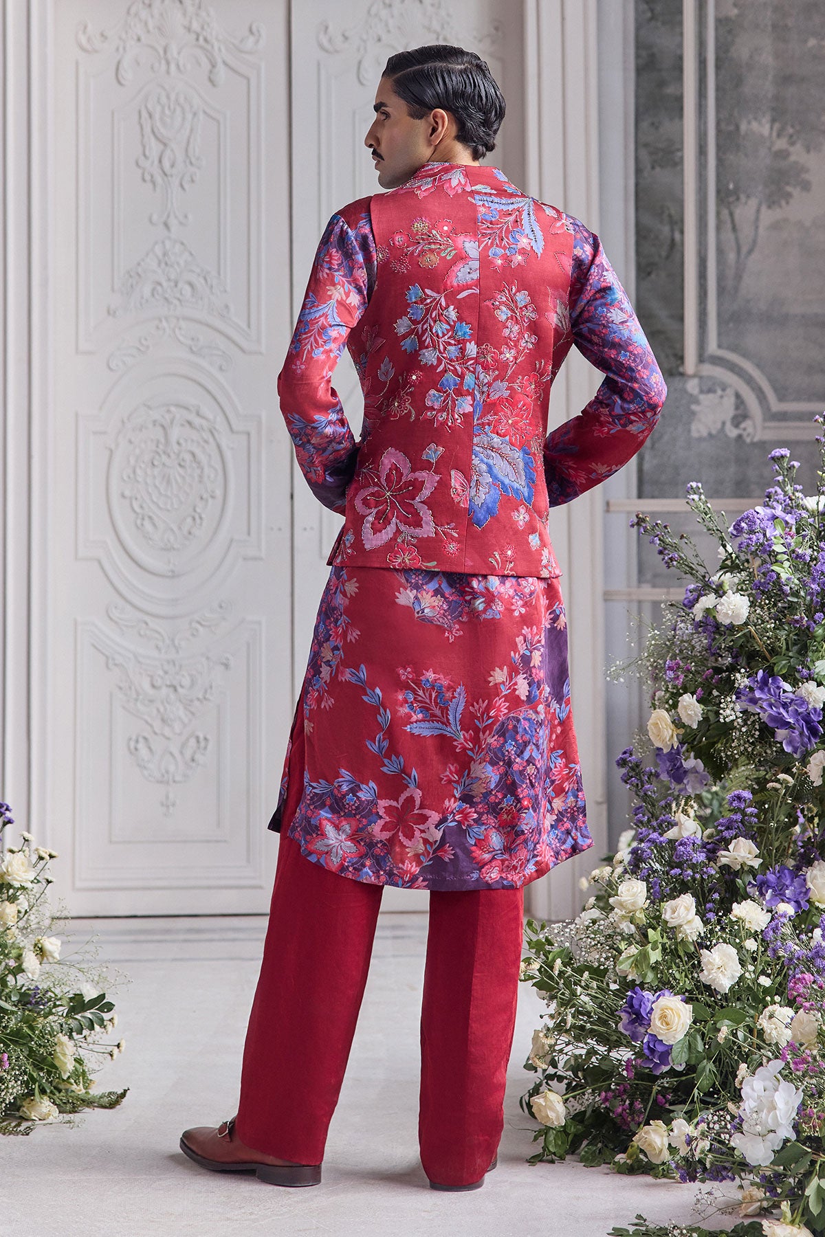 PANELLED HAND EMBROIDERED BUNDI PAIRED WITH KURTA AND TROUSER