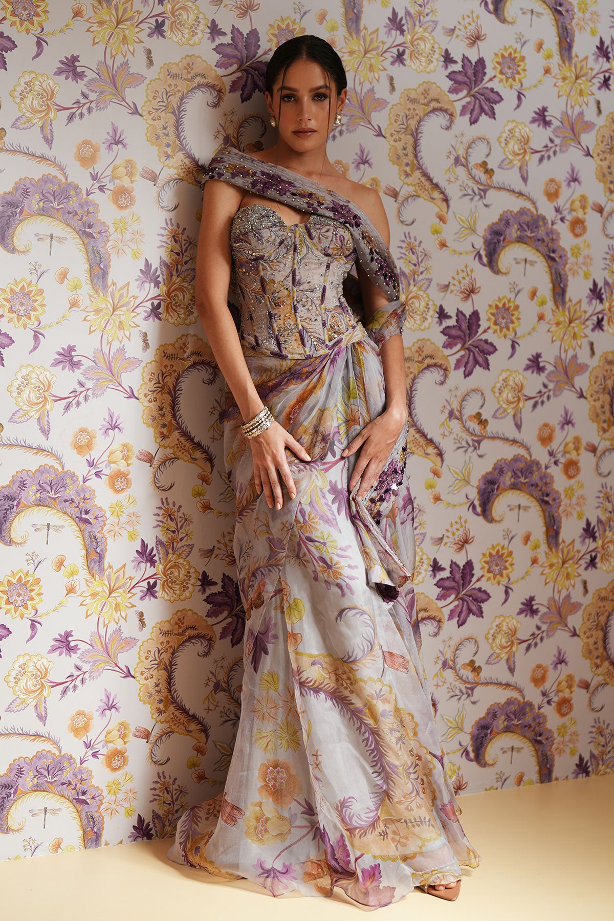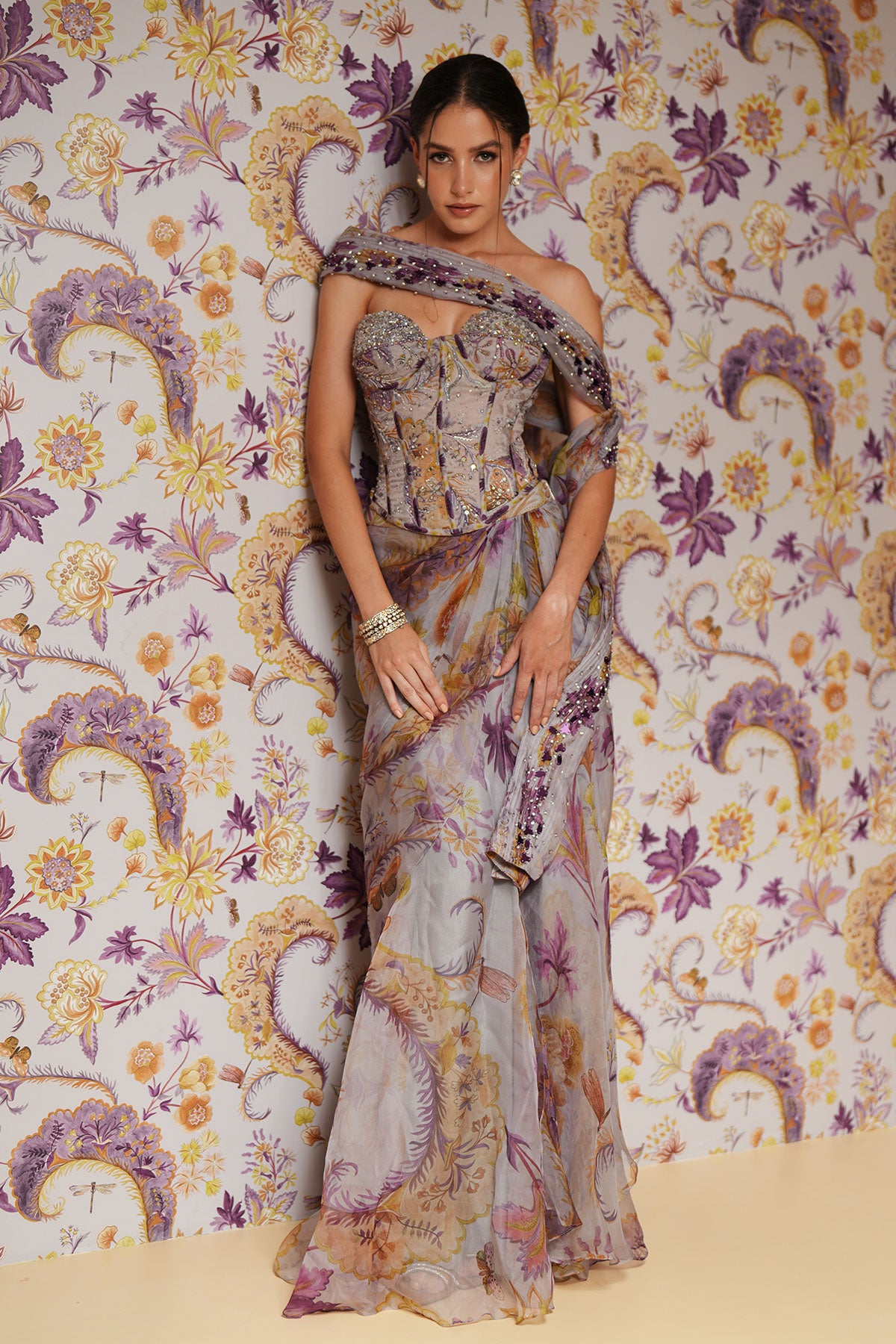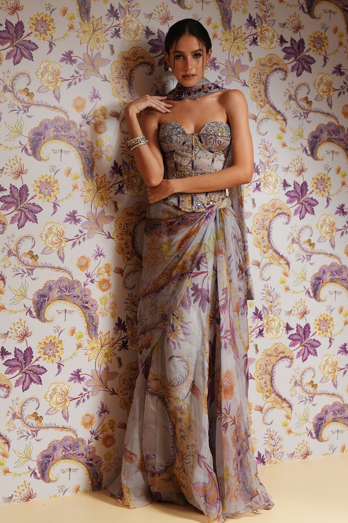 Heavy Hand Embroidered Corset Paired With Draped Skirt and dupatta