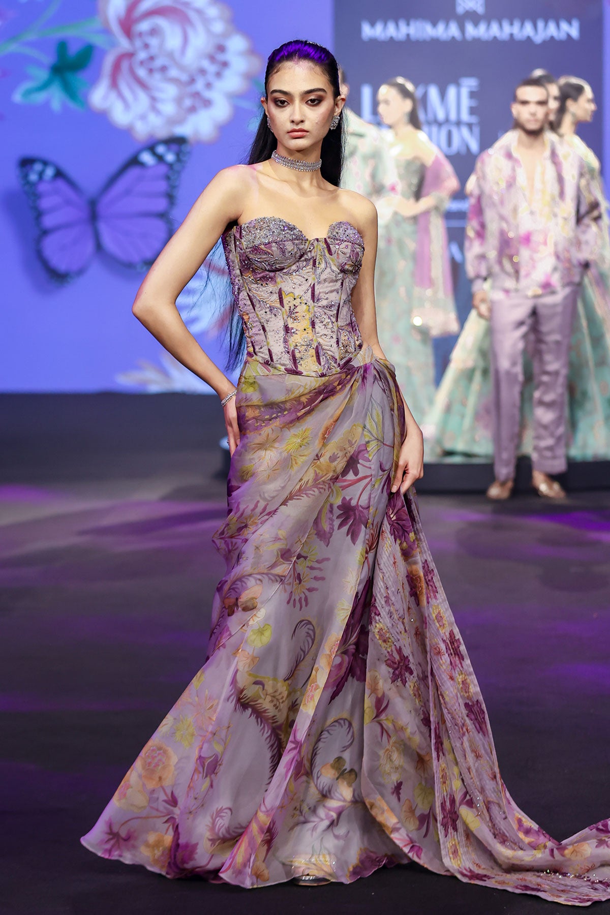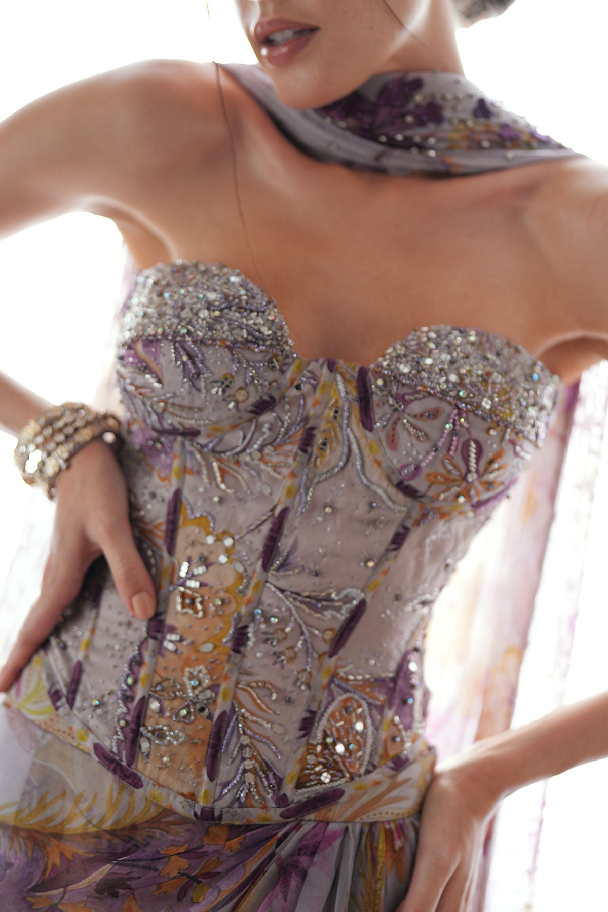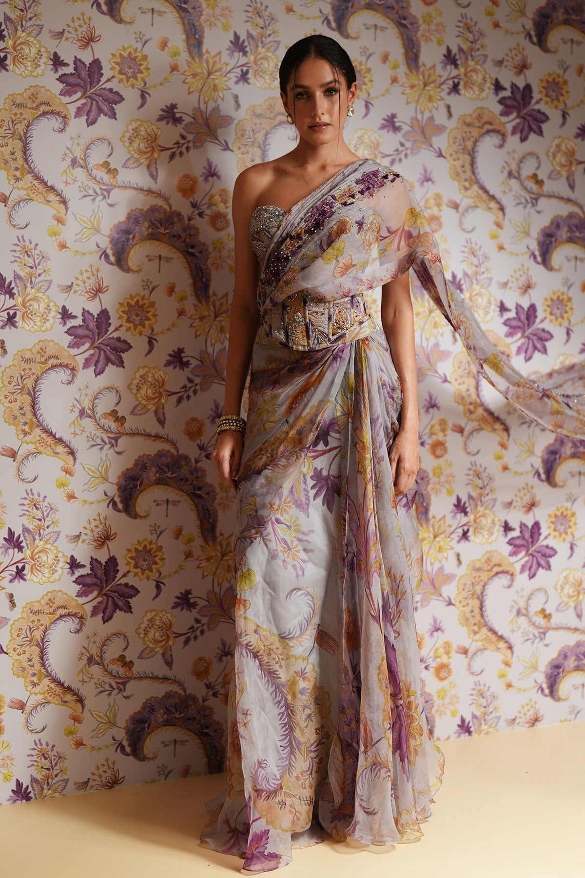 Heavy Hand Embroidered Corset Paired With Draped Skirt and dupatta