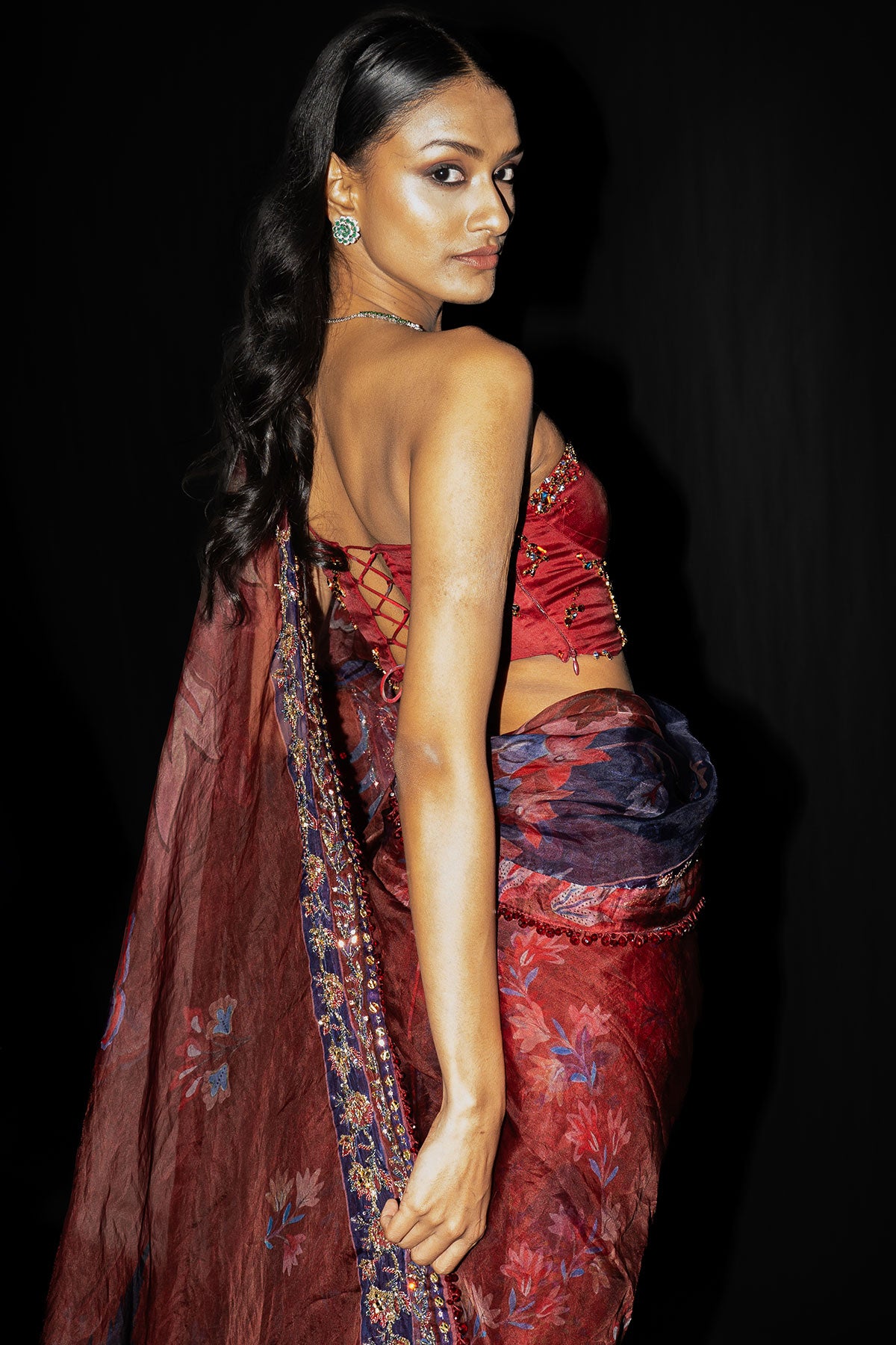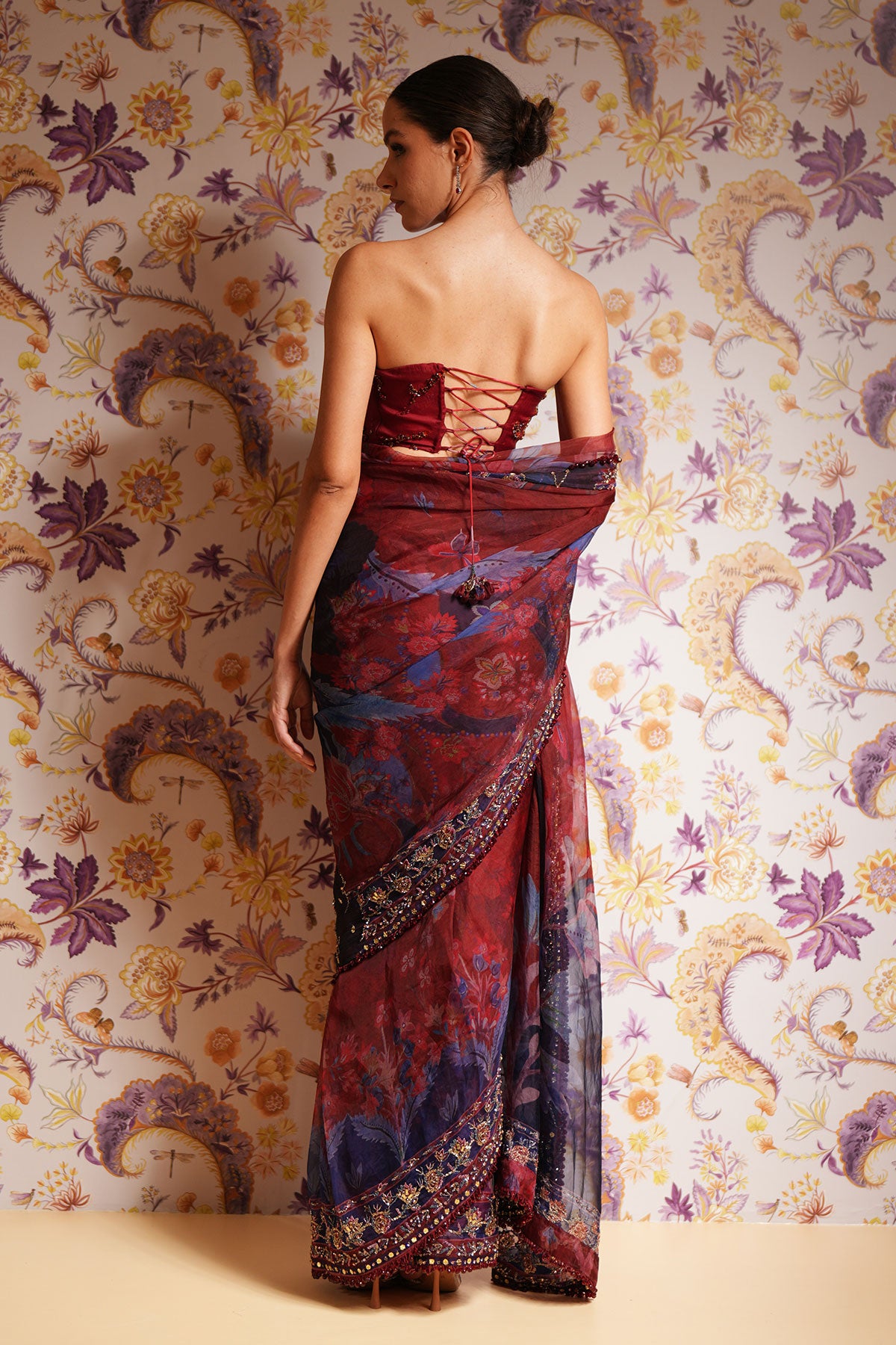 Embroidered Corset Paired Predraped Saree
