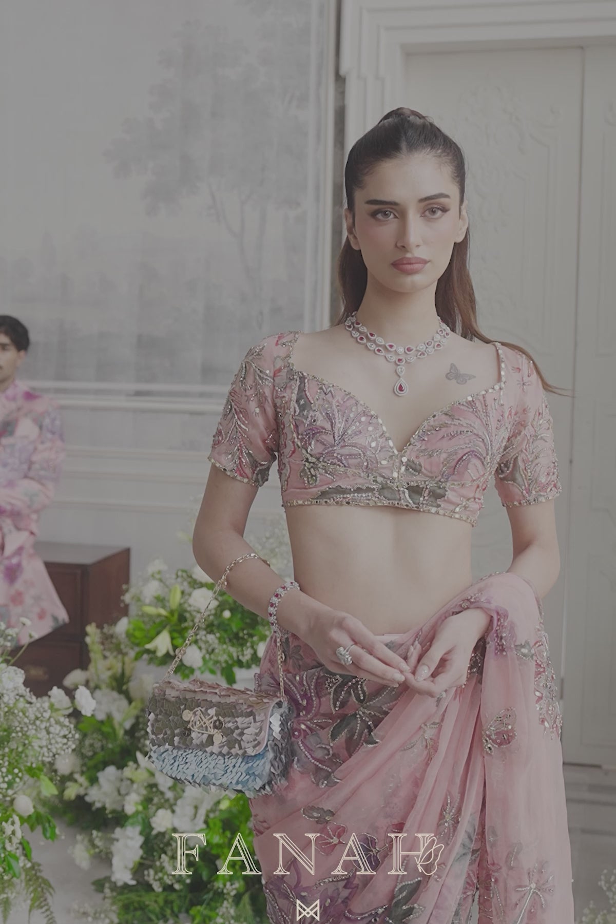 EMBROIDERED CHOLI CUT BLOUSE PAIRED WITH EMBROIDERED PREDRAPED SAREE