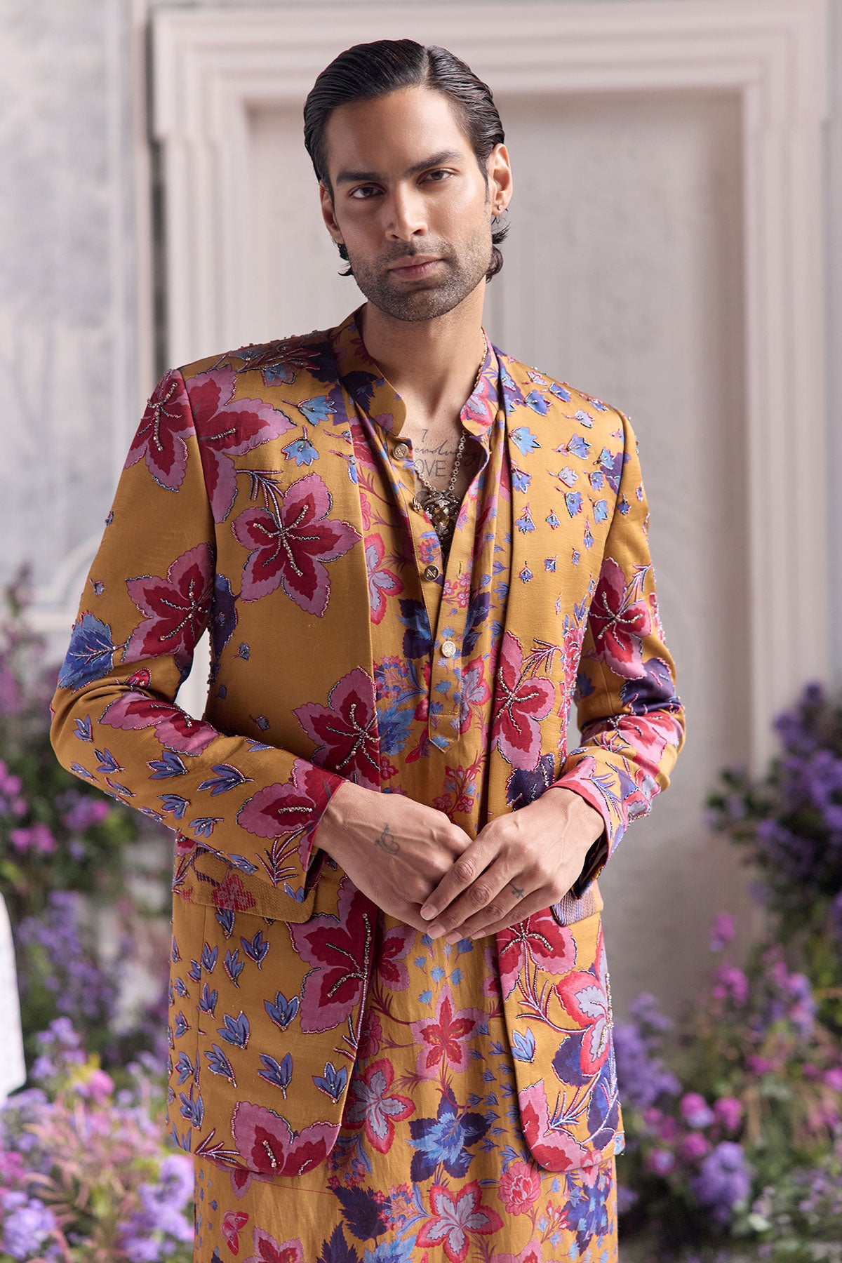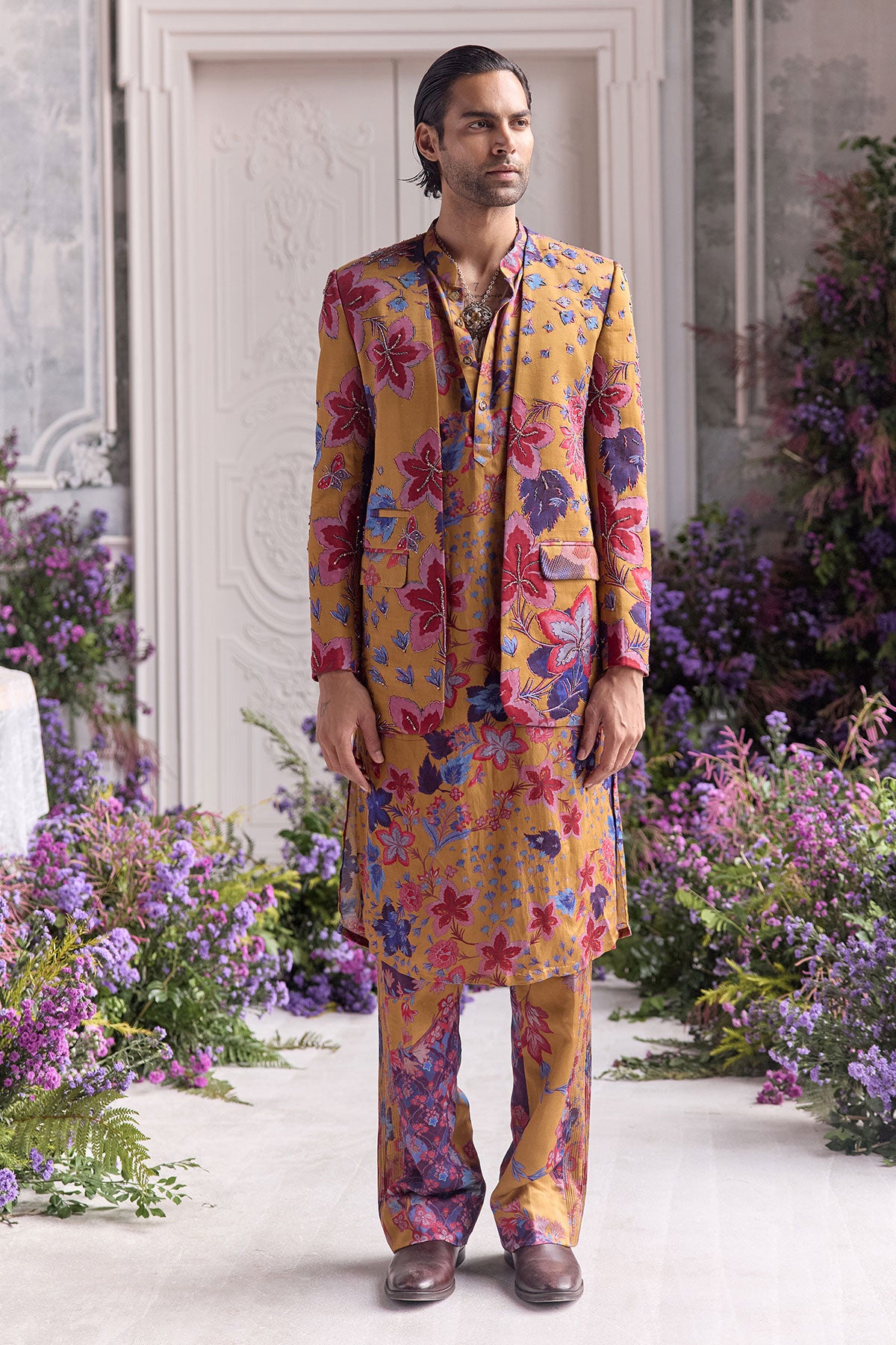 HAND EMBROIDERED BLAZER WITH QUILTING DETAILS ON PLACKET PAIRED WITH KURTA AND TROUSER