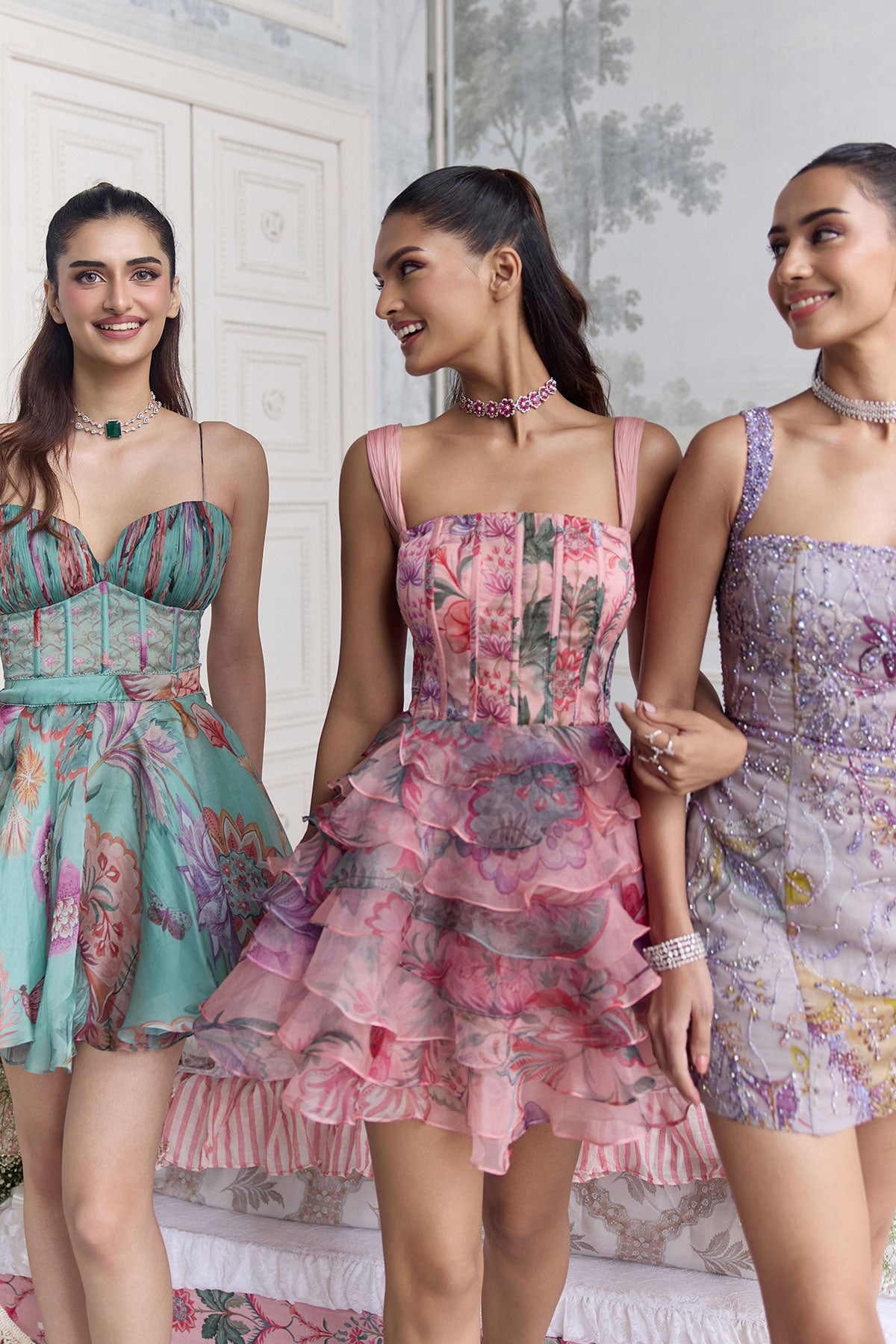HAND EMBROIDERED RUFFLED MIDI DRESS