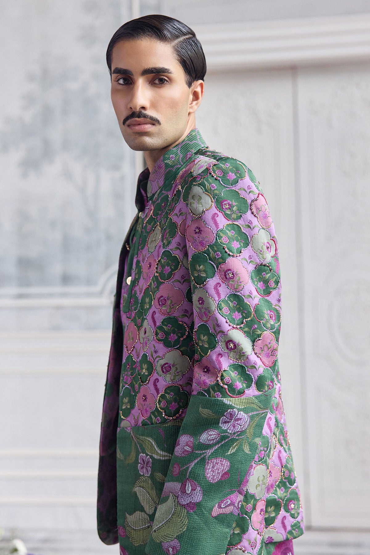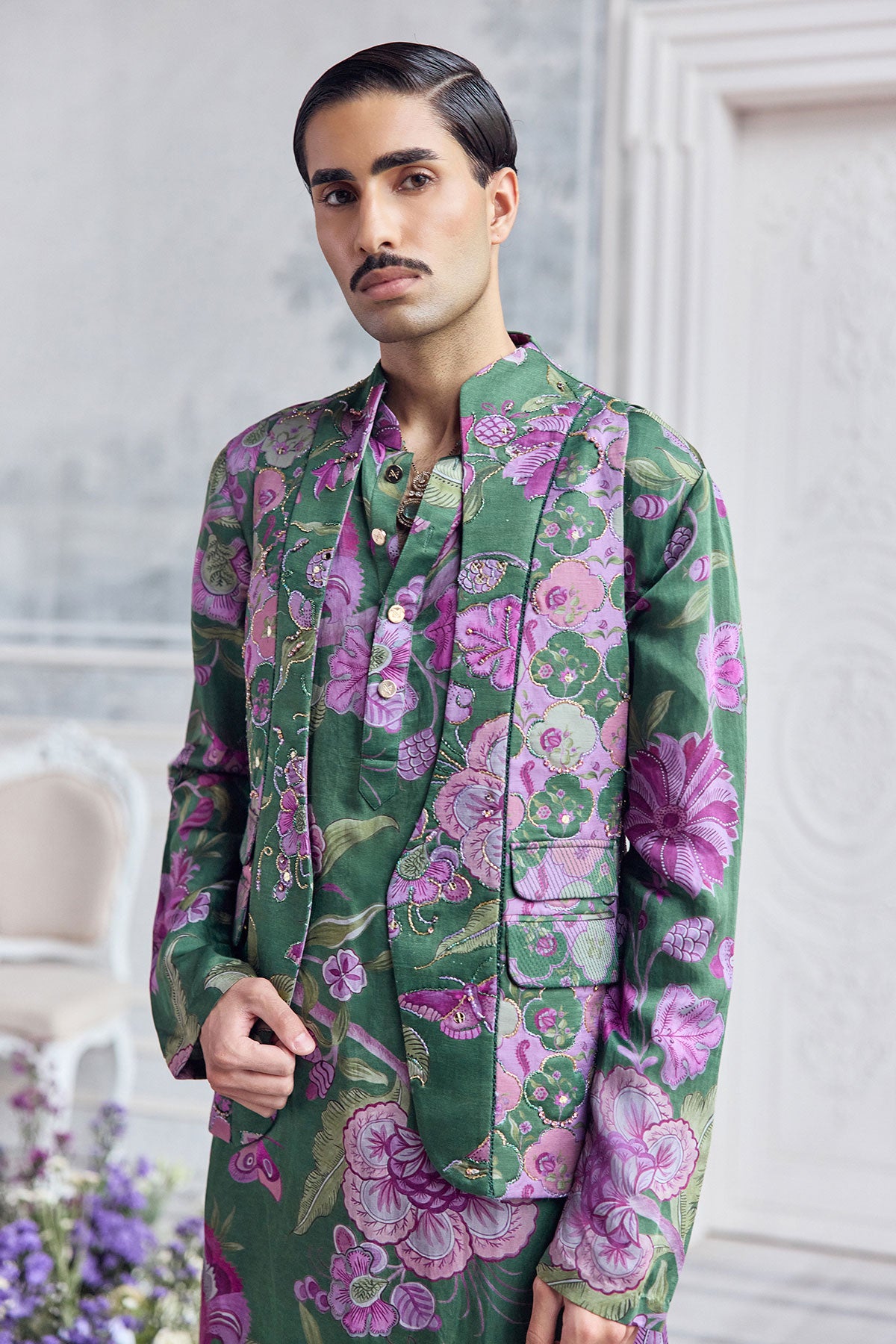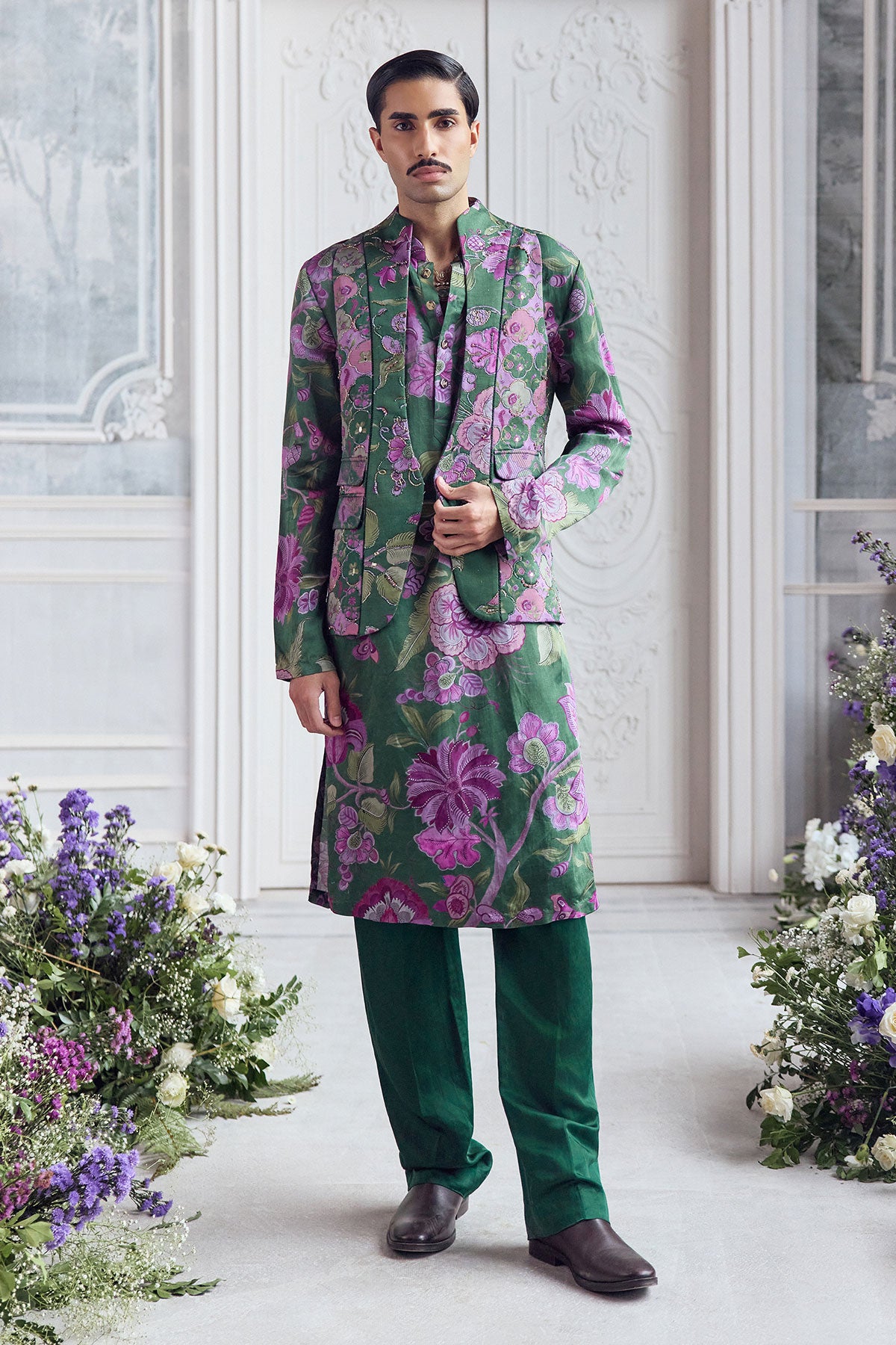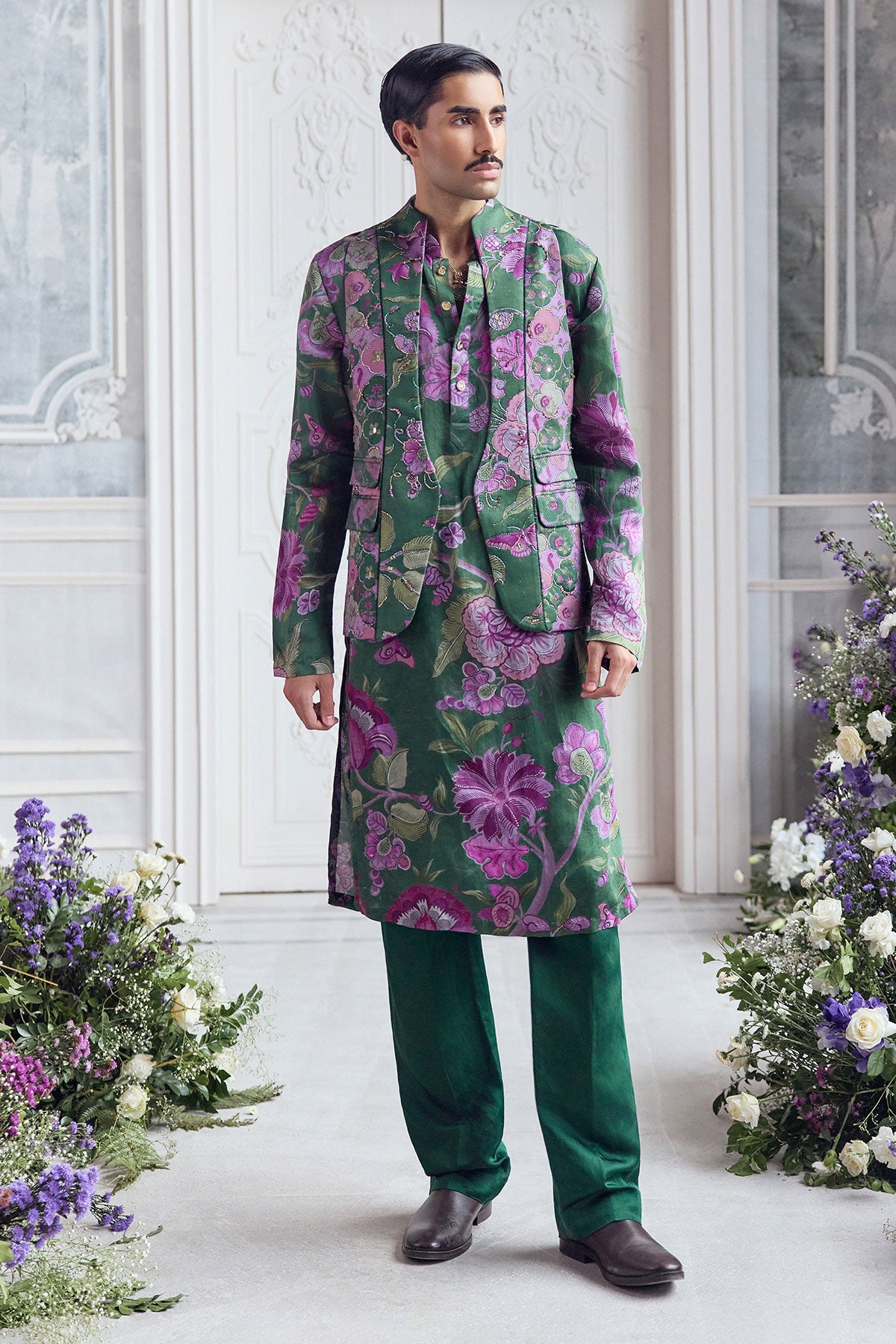 PANELLED HAND EMBROIDERED BUNDI PAIRED WITH KURTA AND TROUSER