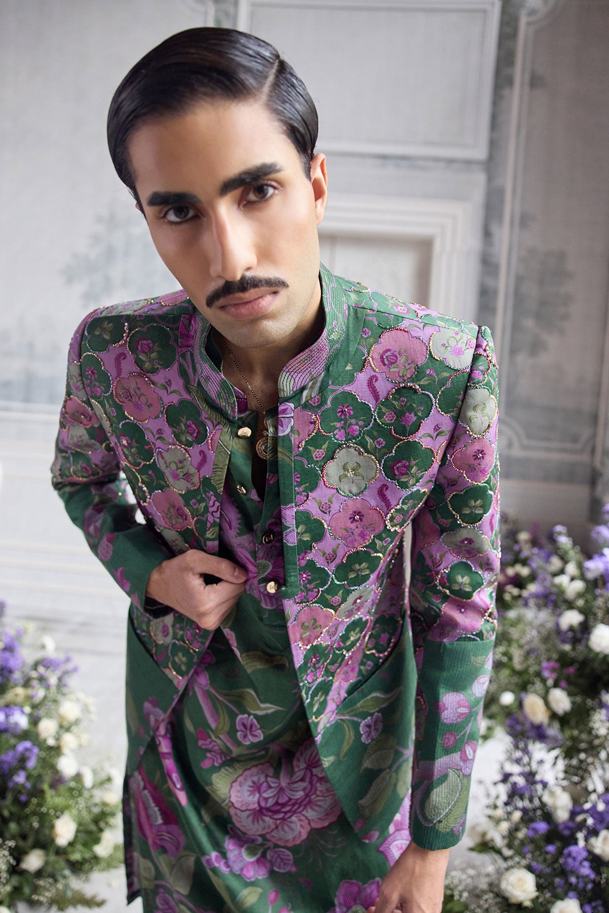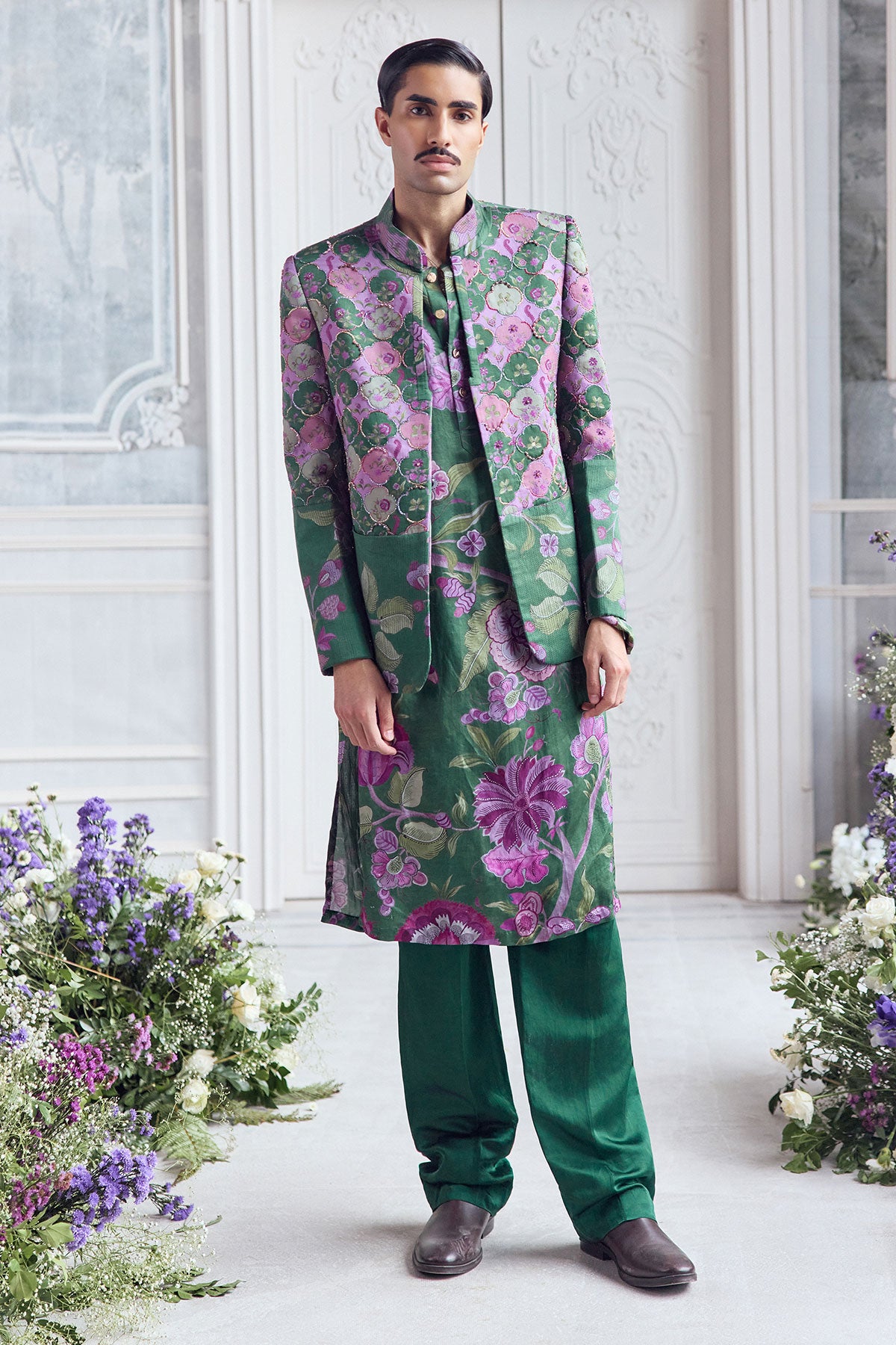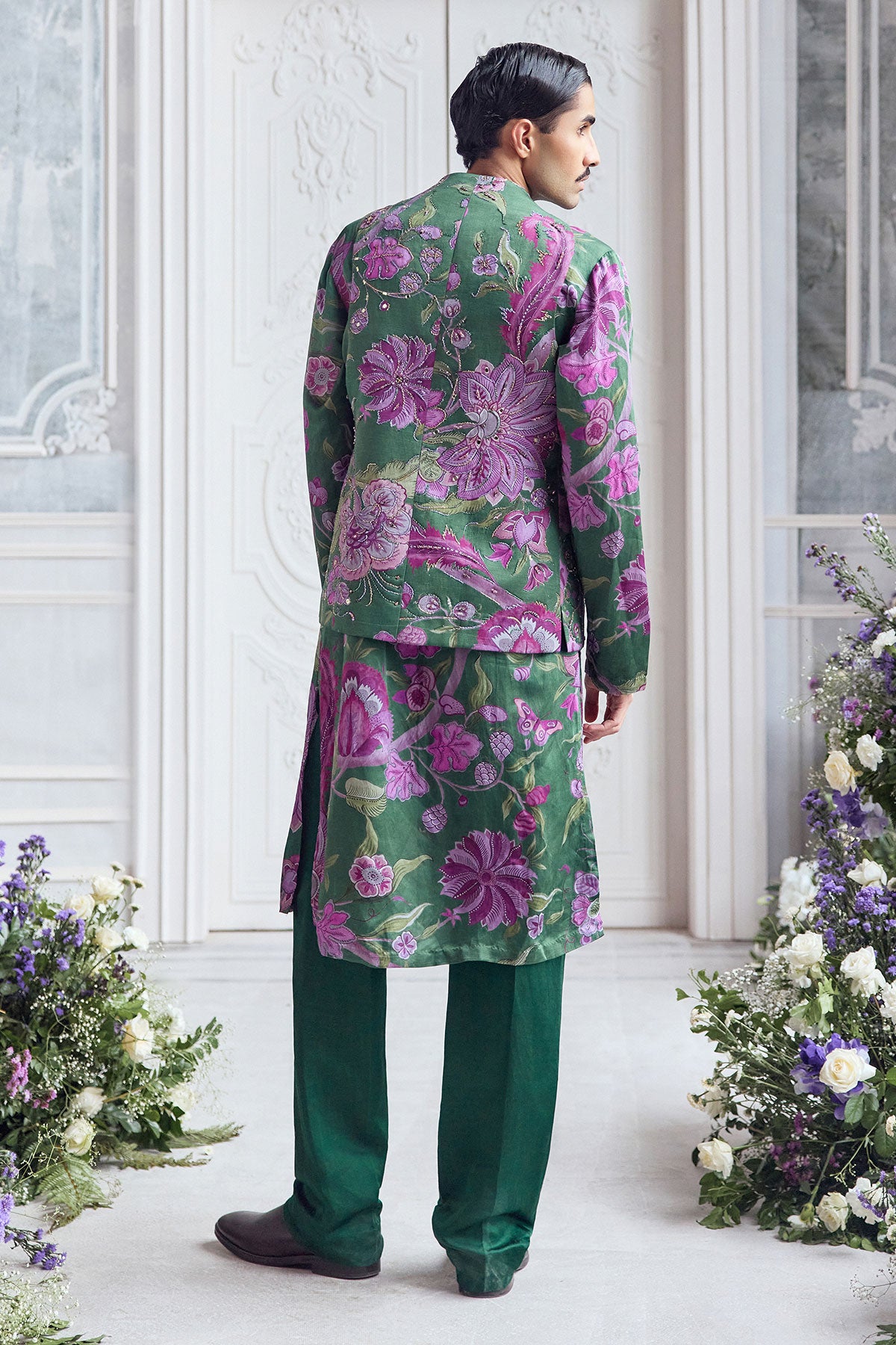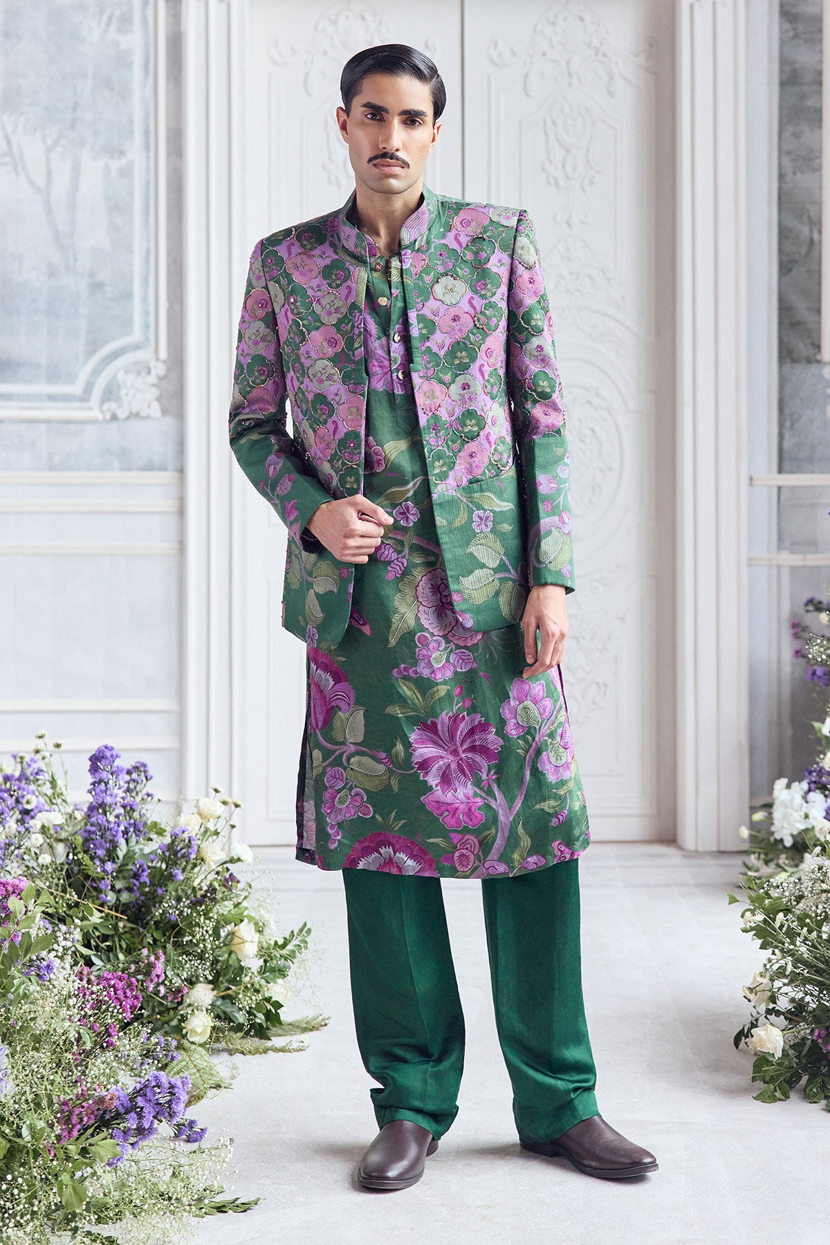 PANELLED HAND EMBROIDERED BUNDI PAIRED WITH KURTA AND TROUSER