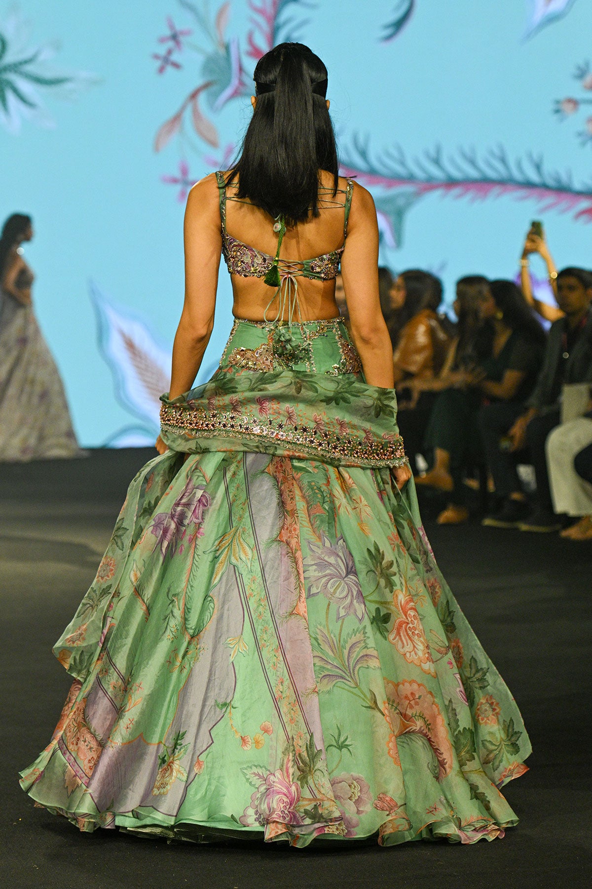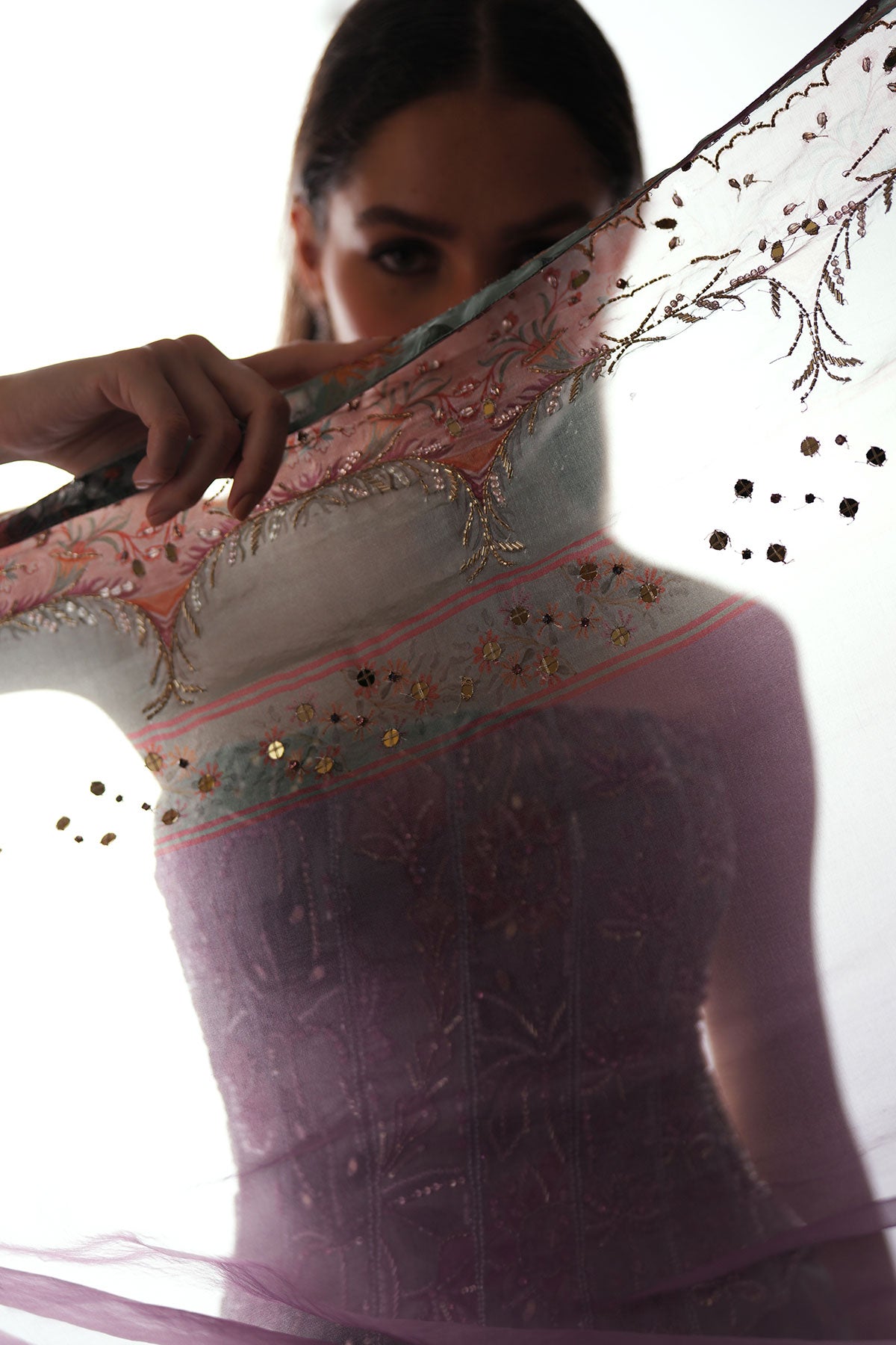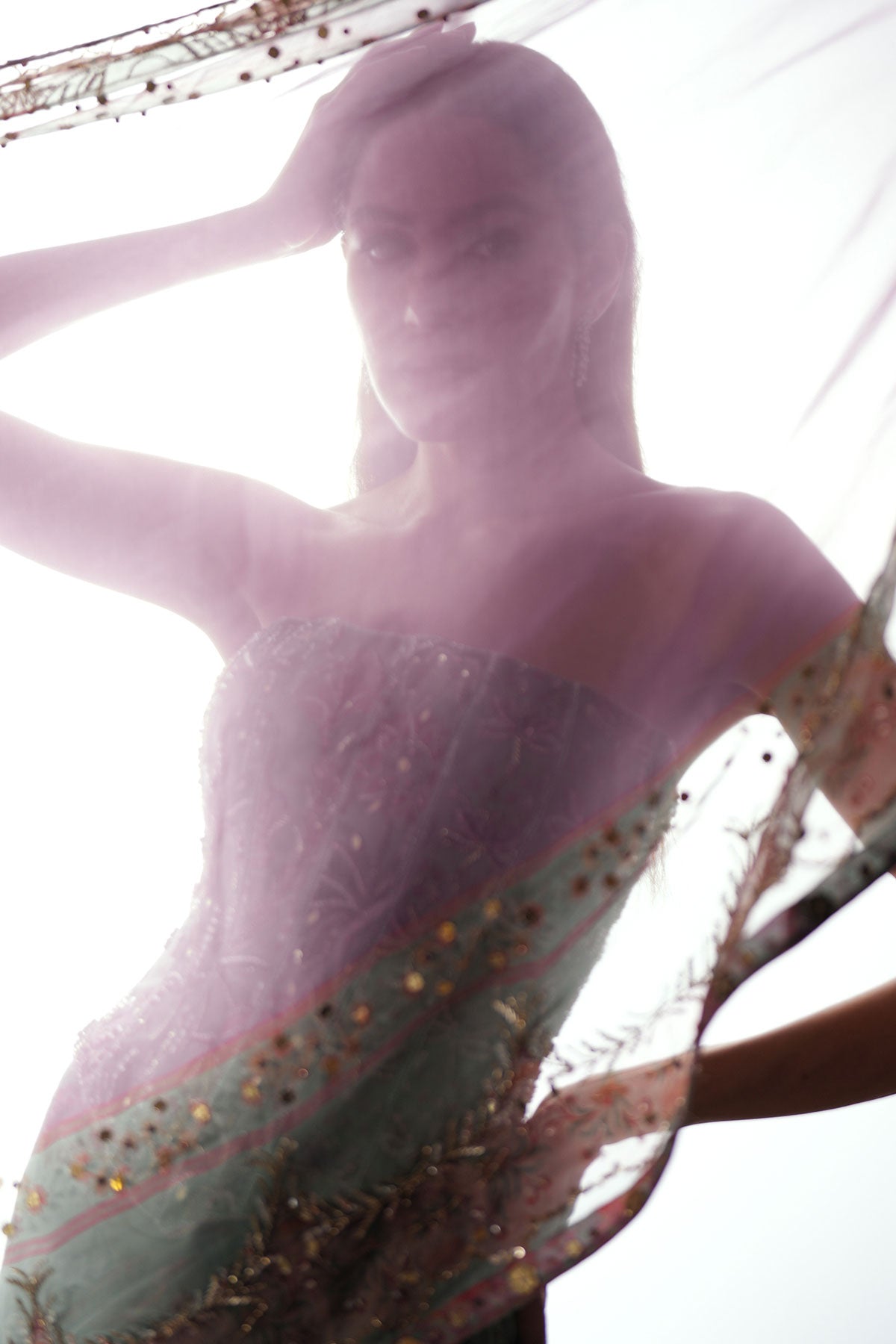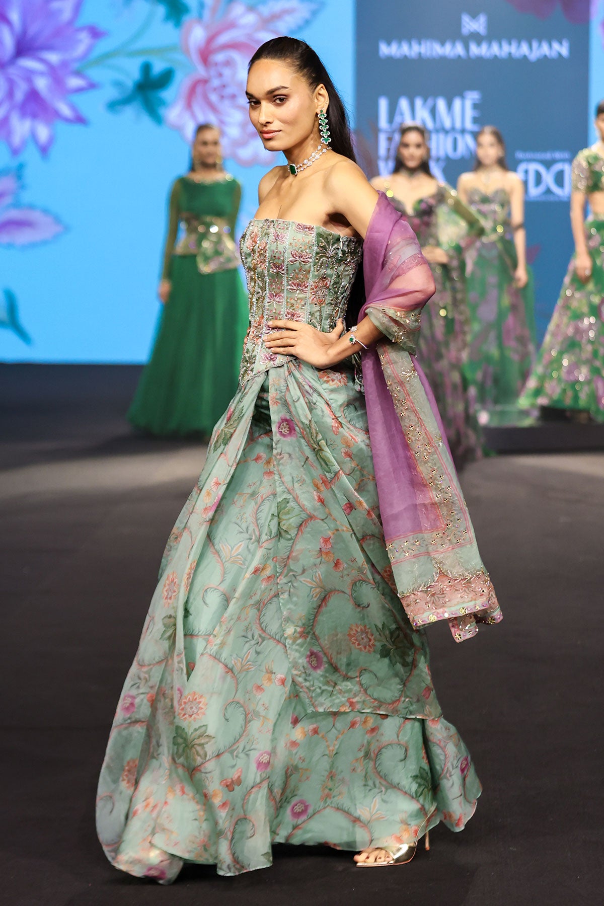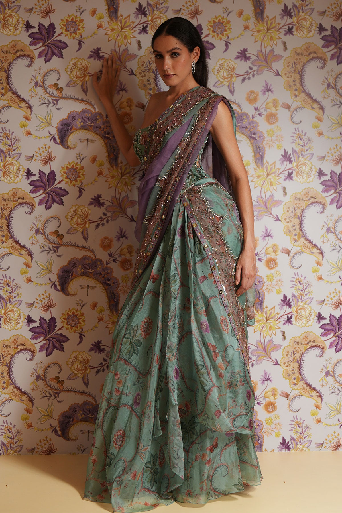Heavy Embroidered Corset Paired With Draped Skirt And Dupatta