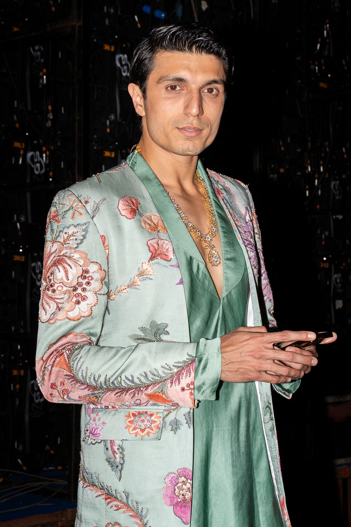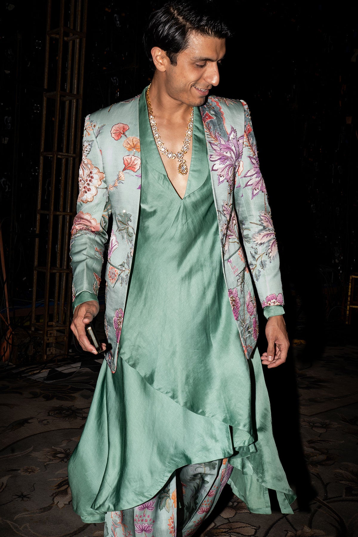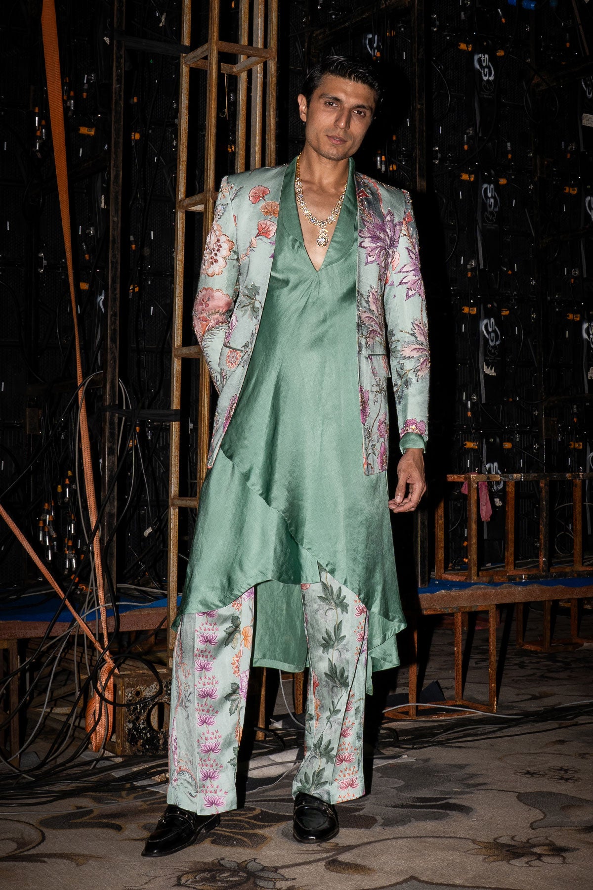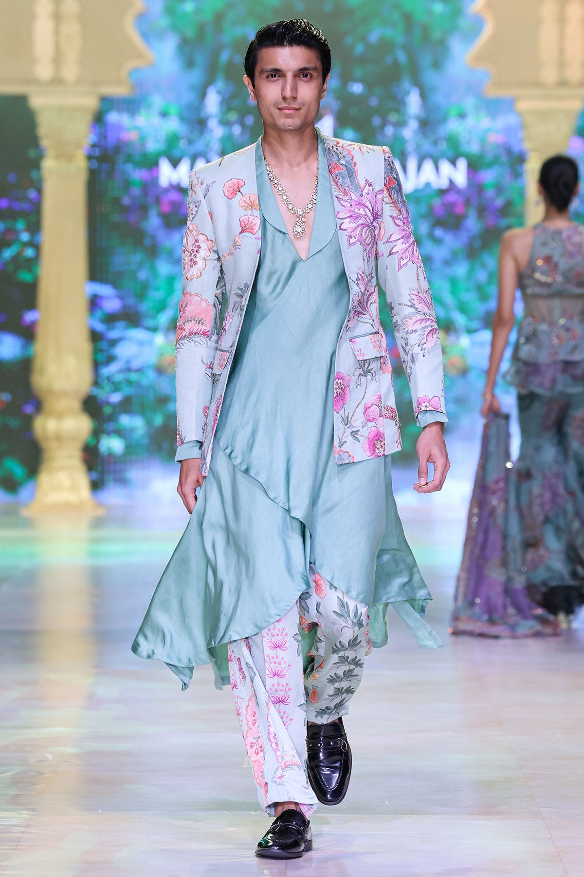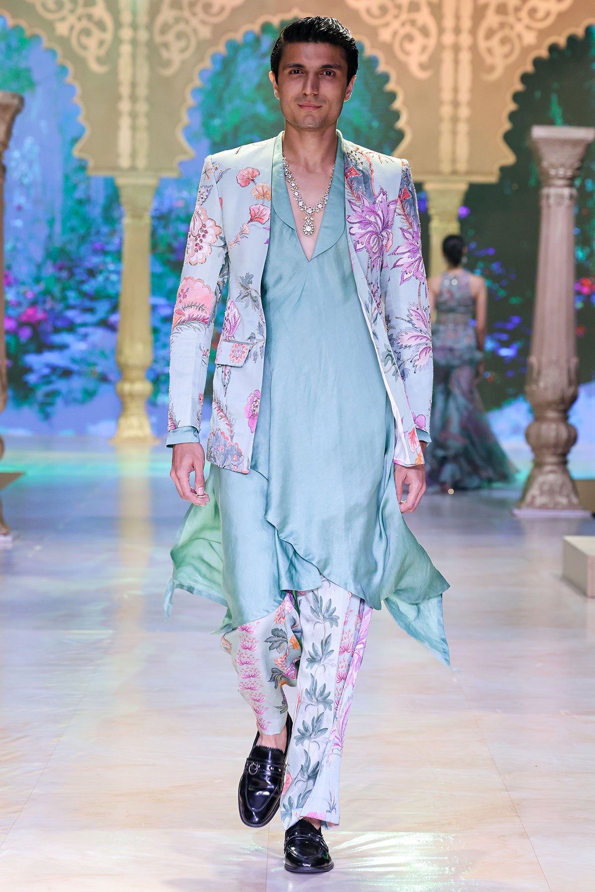 PANELLED HAND EMBROIDERED BLAZER PAIRED WITH ANGRAKHA KURTA AND QUILTED TROUSER