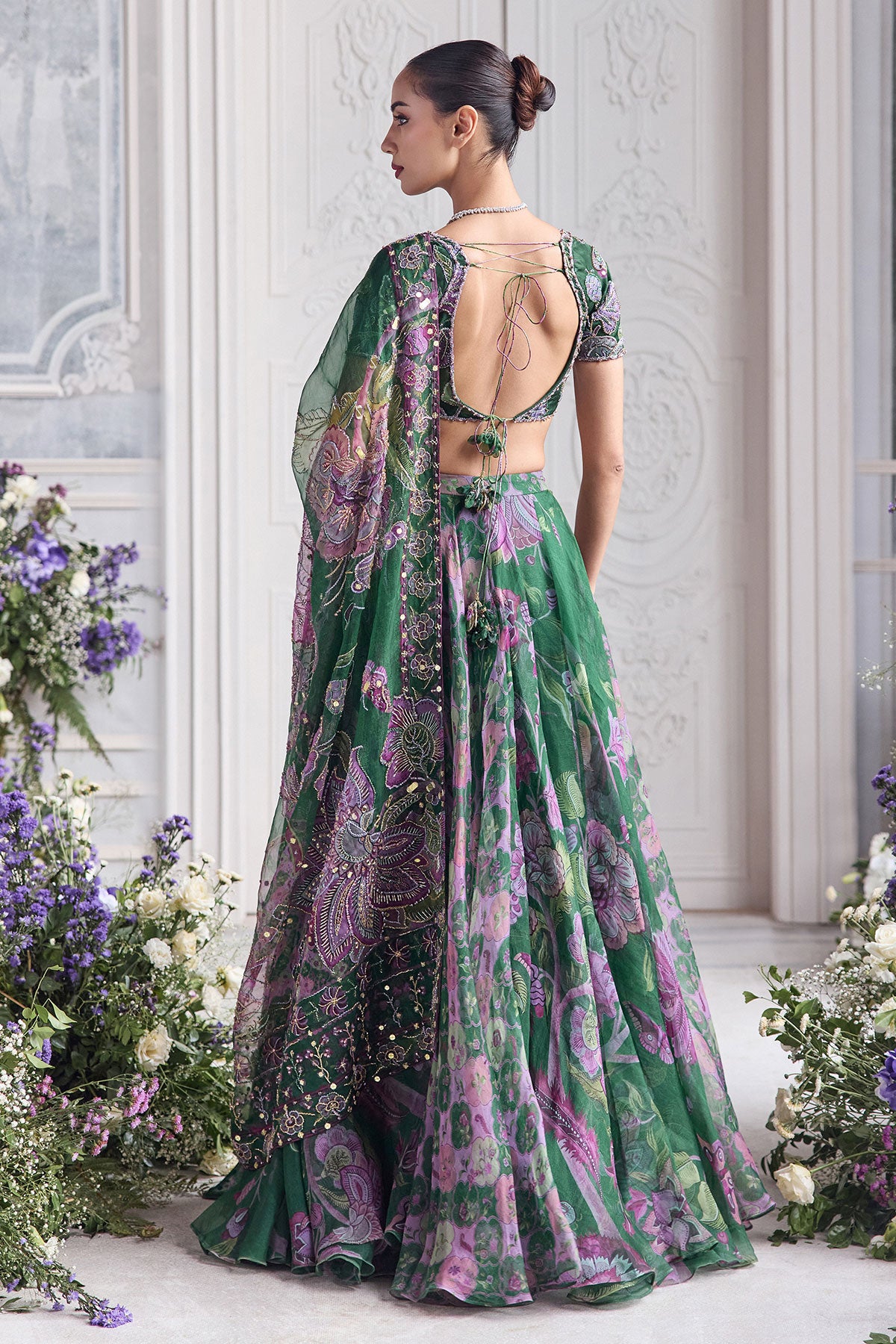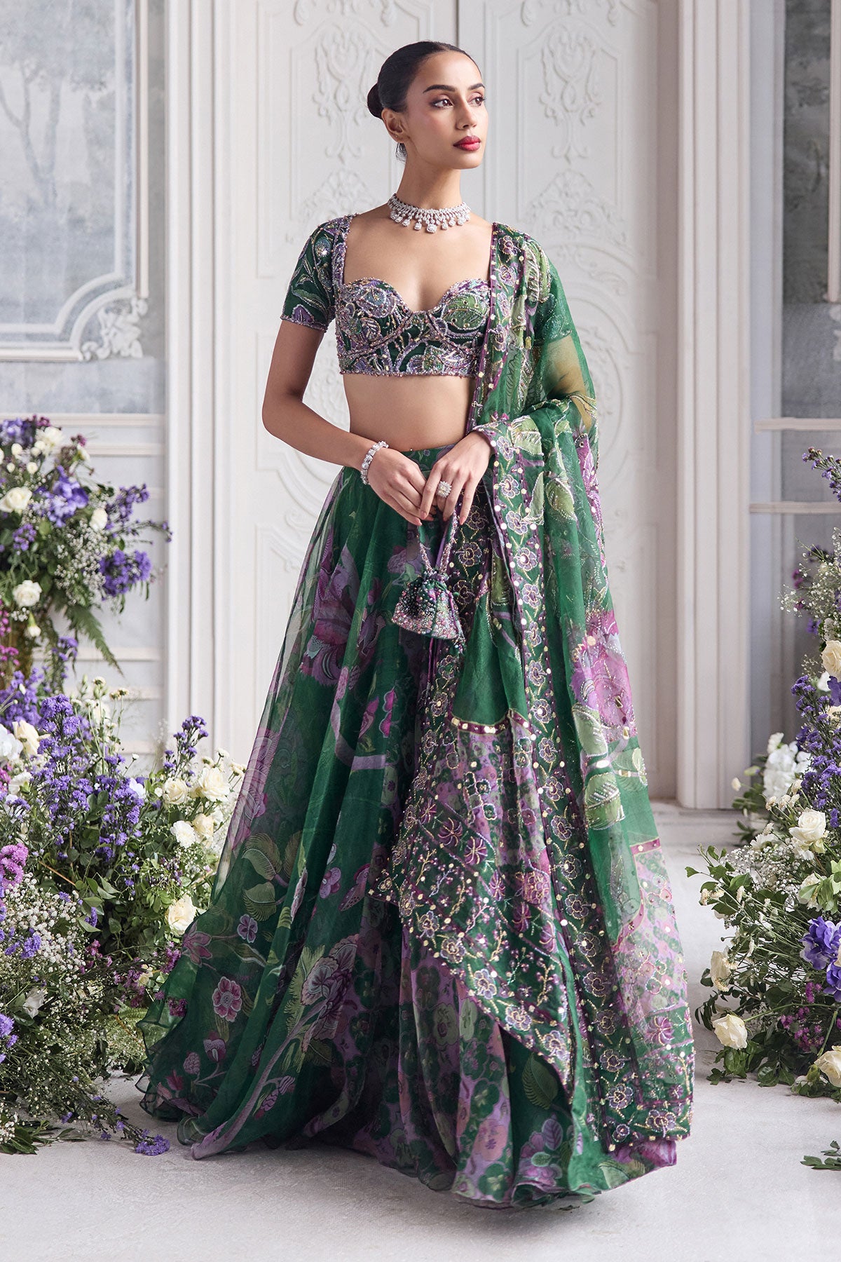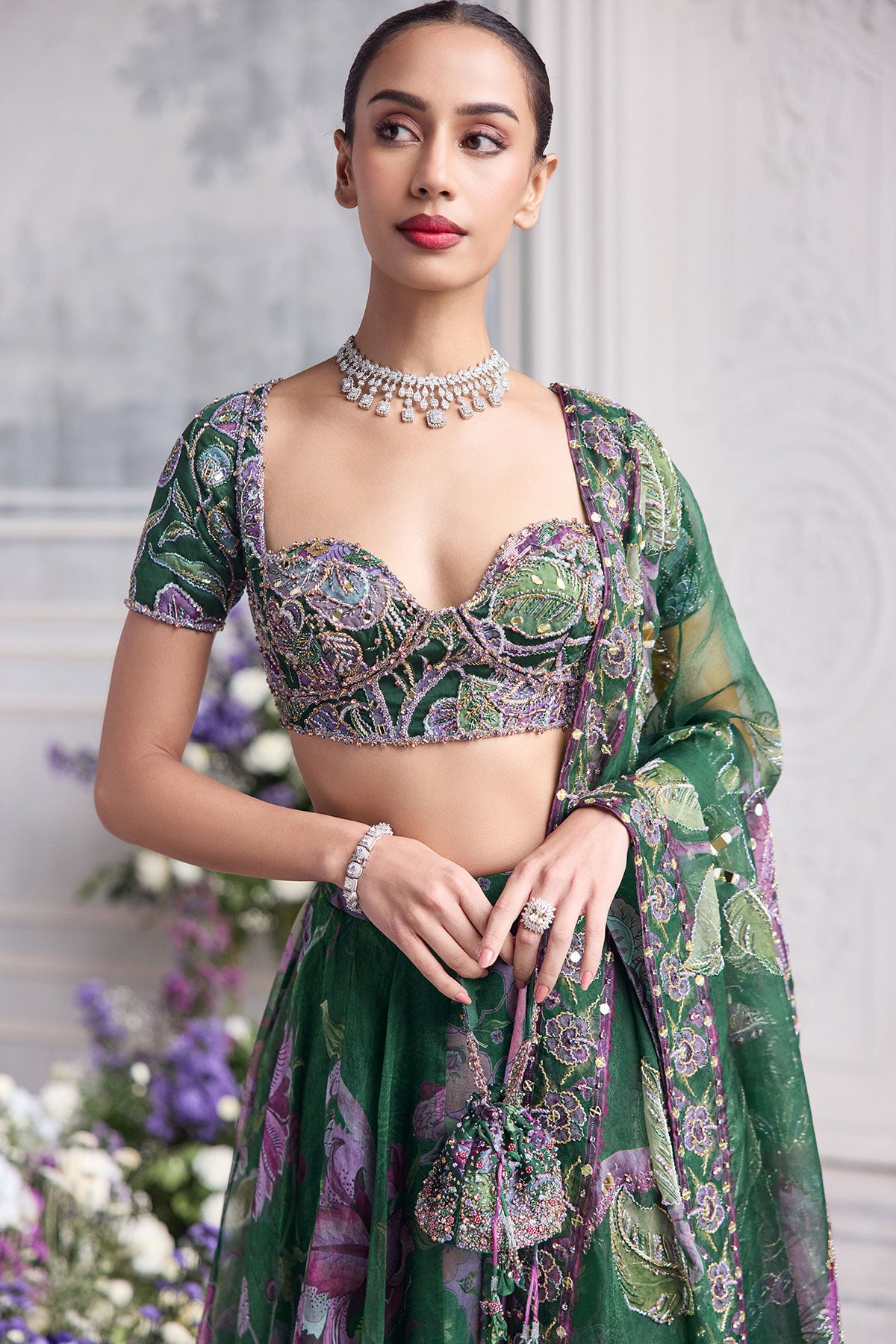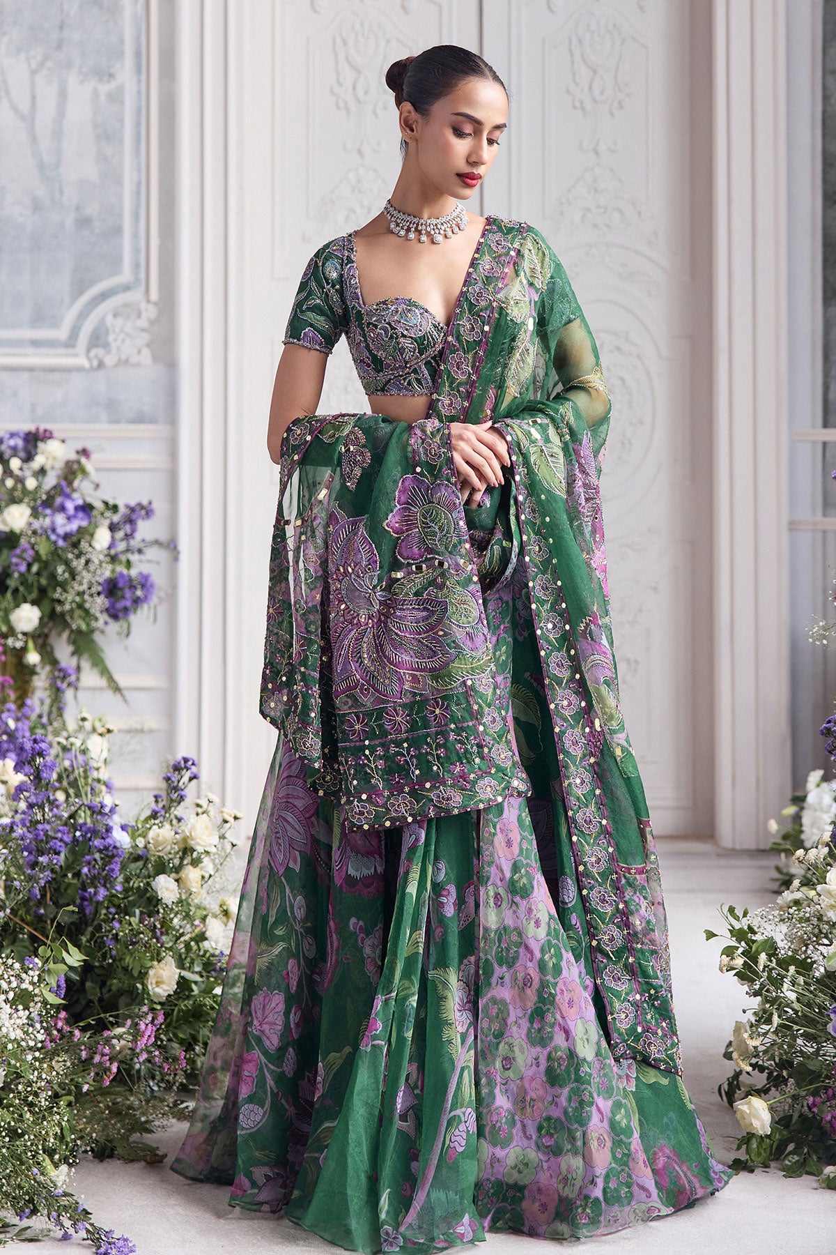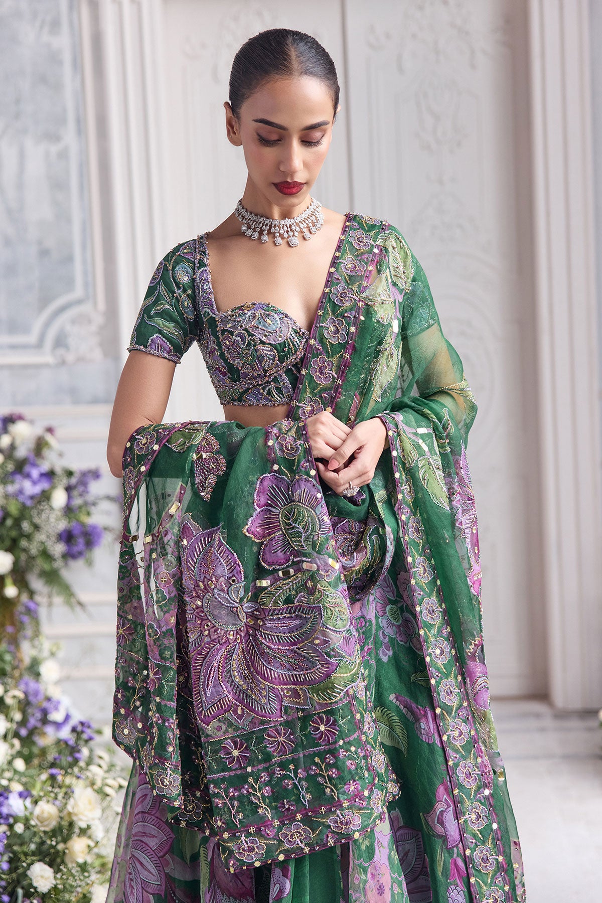 EMBROIDERED BLOUSE AND DUPATTA PAIRED WITH FLORAL LEHENGA