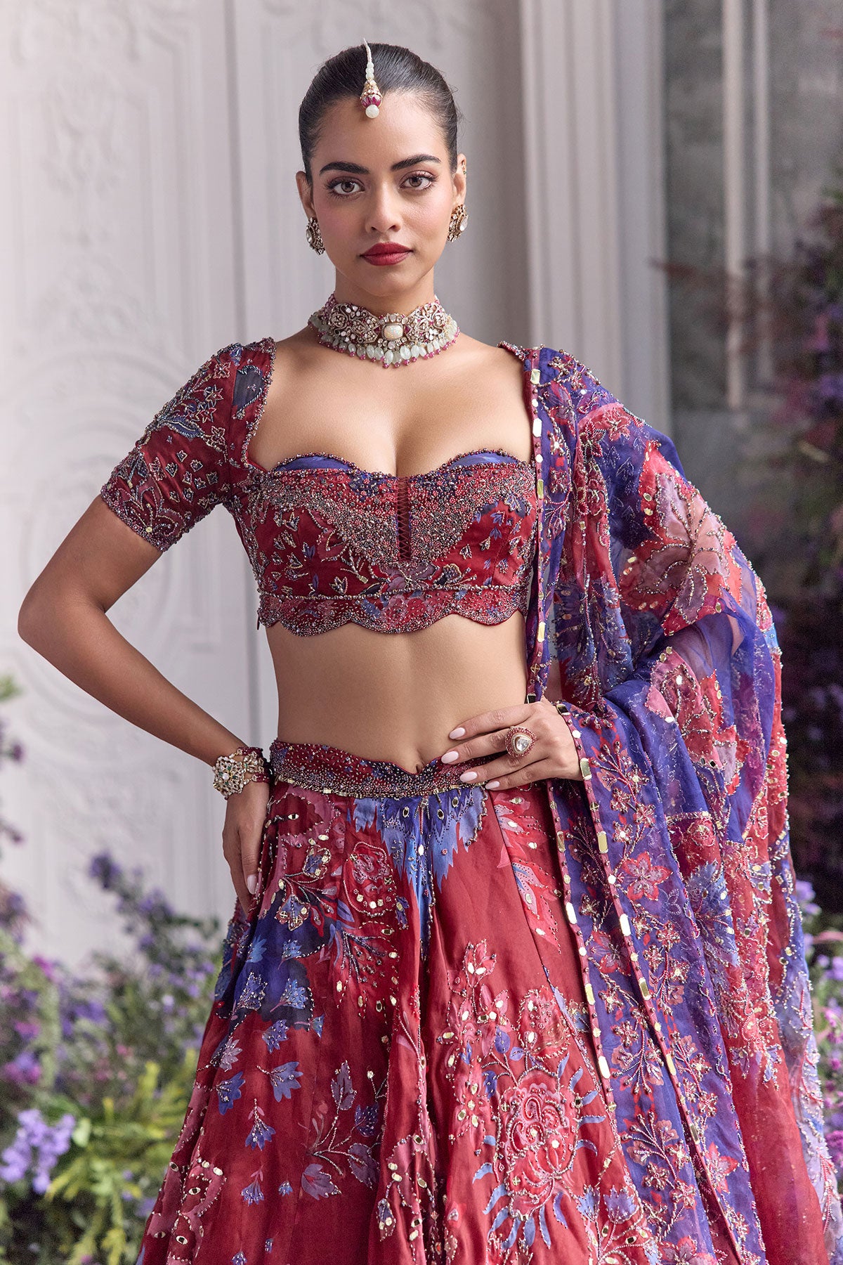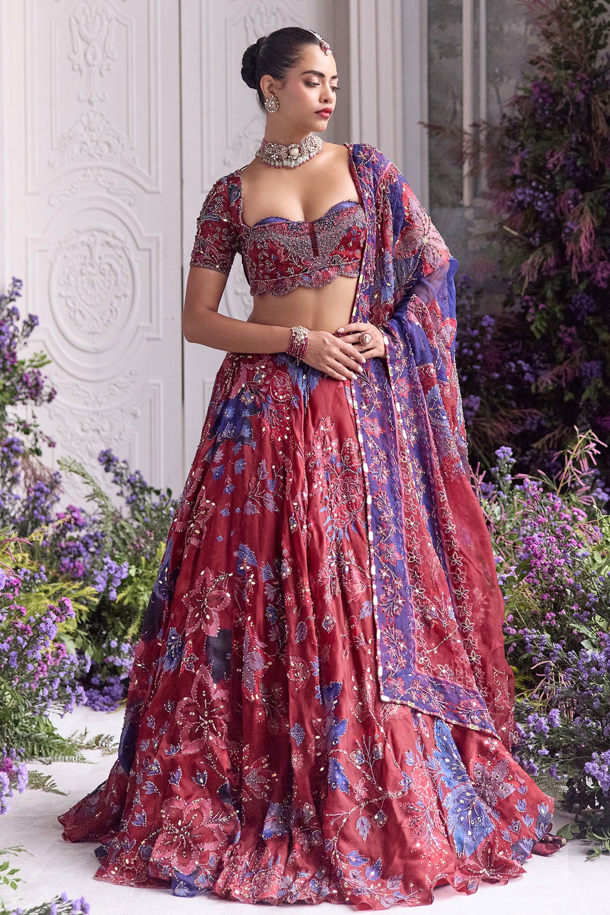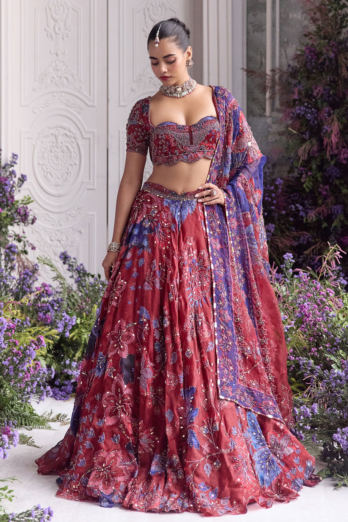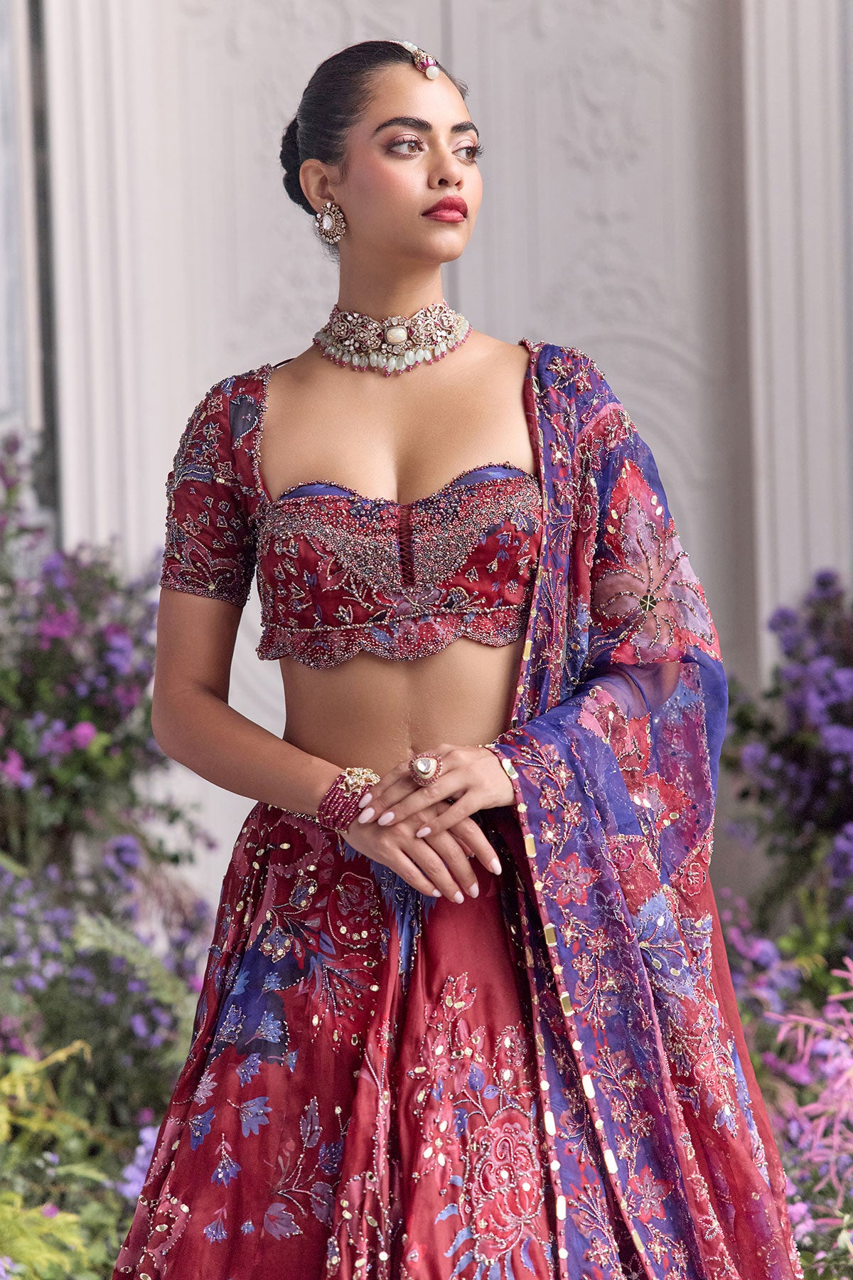 HEAVY HAND EMBROIDERED SCALLOPED BLOUSE PAIRED WITH HEAVY EMBROIDERED LEHENGA AND DUPATTA