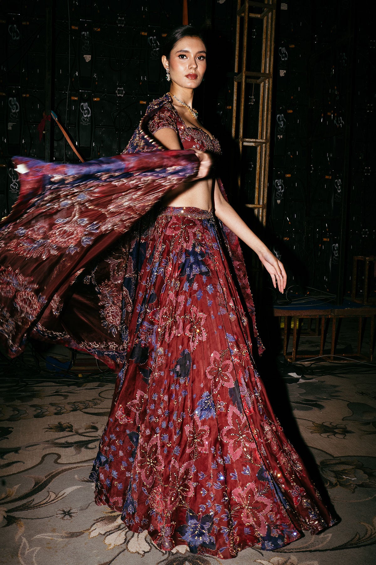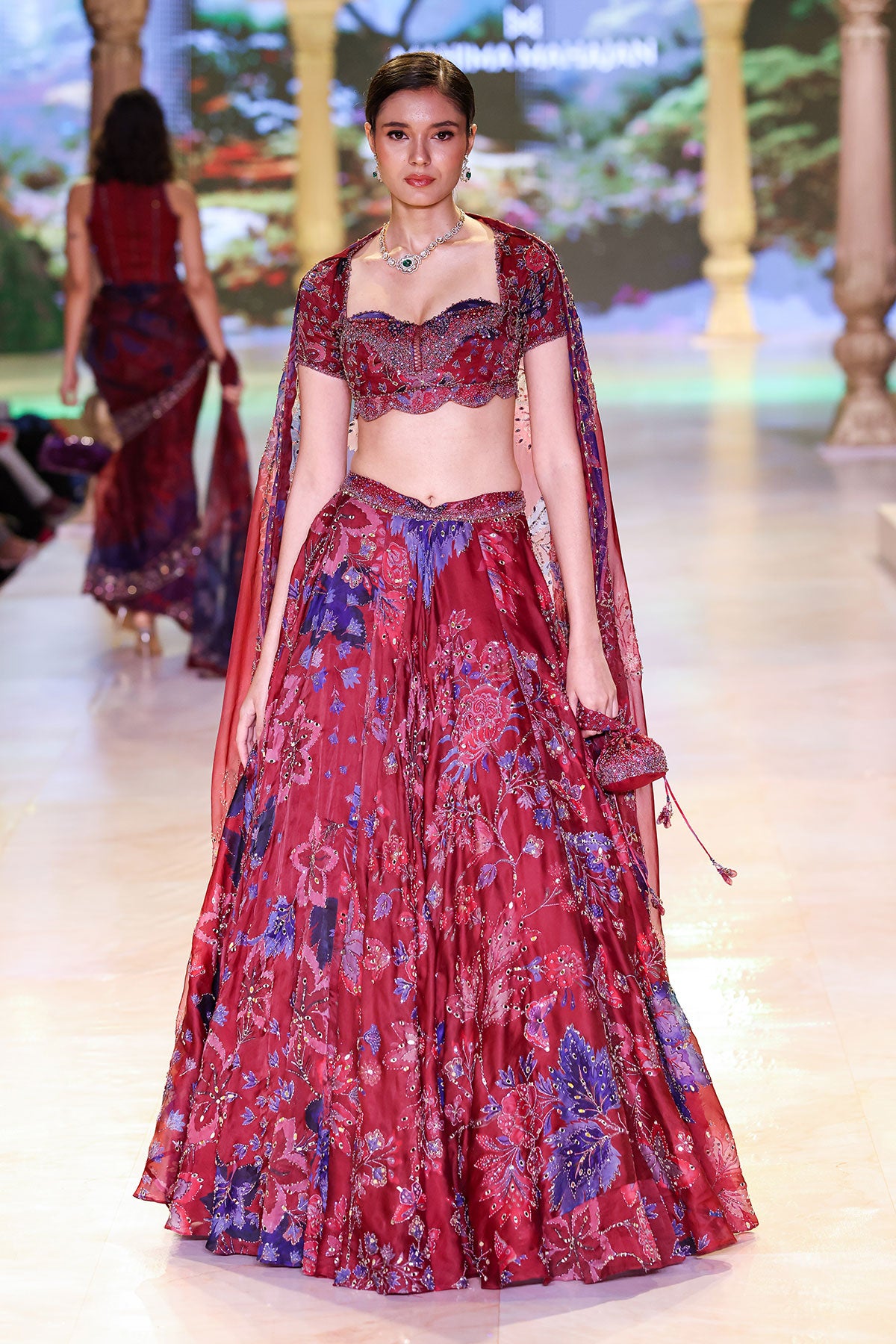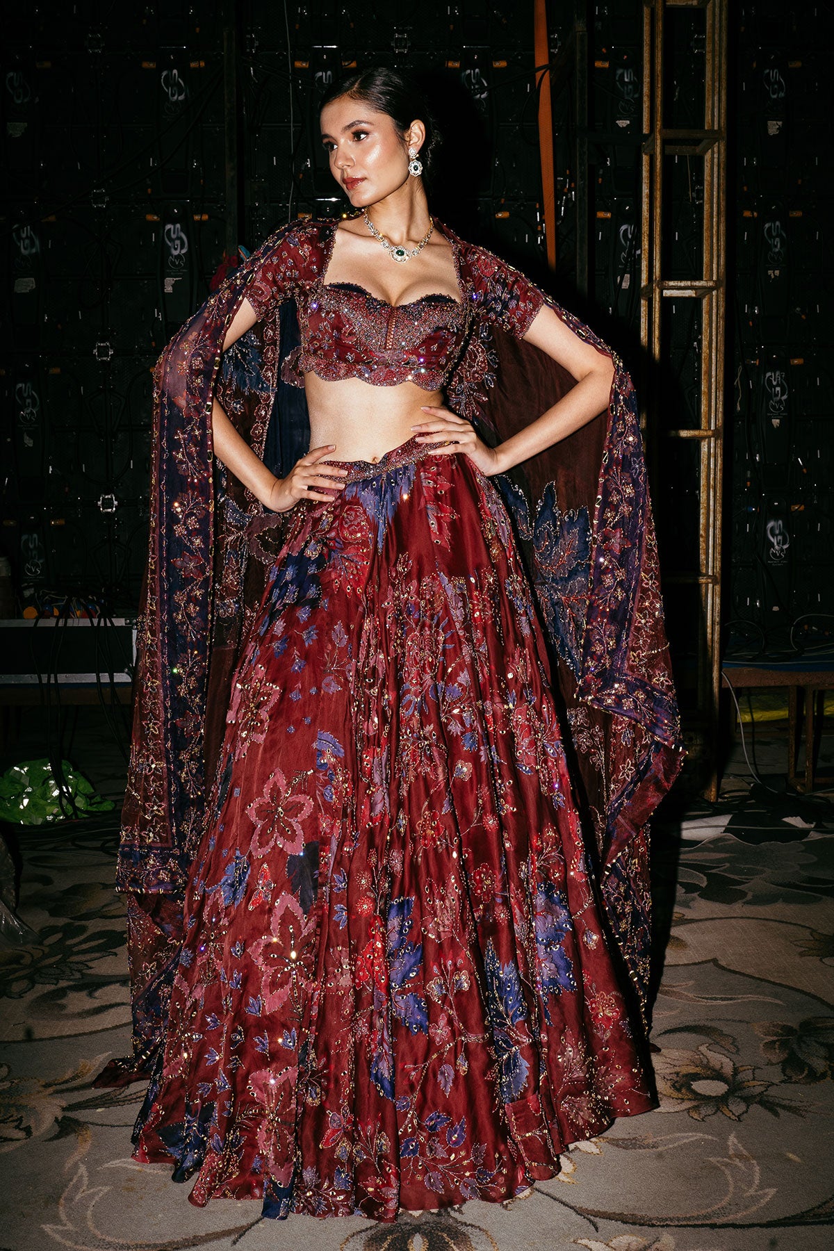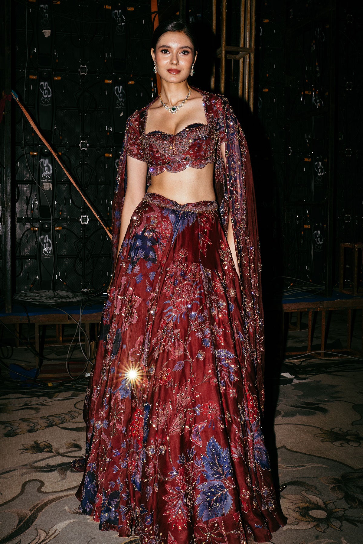 HEAVY HAND EMBROIDERED SCALLOPED BLOUSE PAIRED WITH HEAVY EMBROIDERED LEHENGA AND DUPATTA