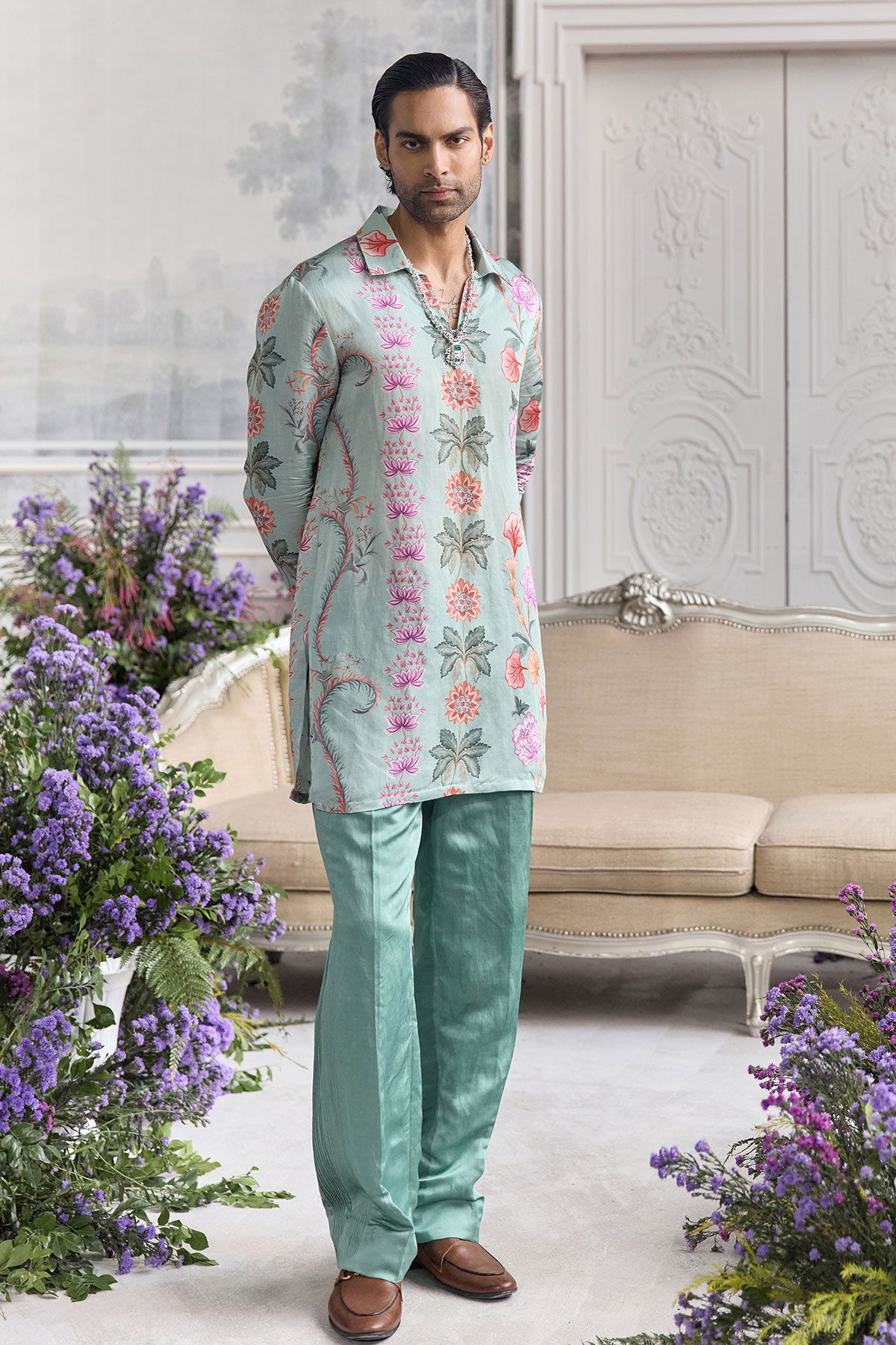 SHORT PRINTED KURTA WITH SIGNATURE MM BUTTONS DETAILINGS PAIRED WITH TROUSER