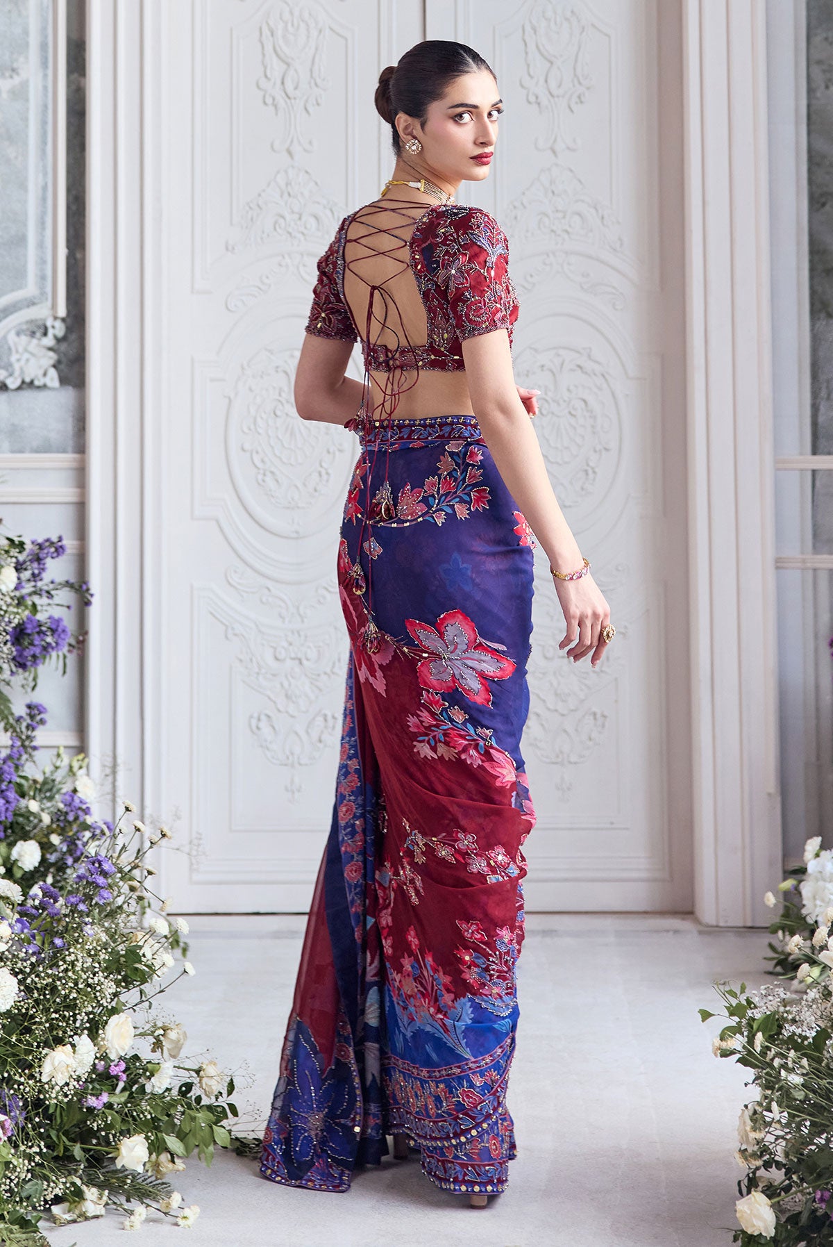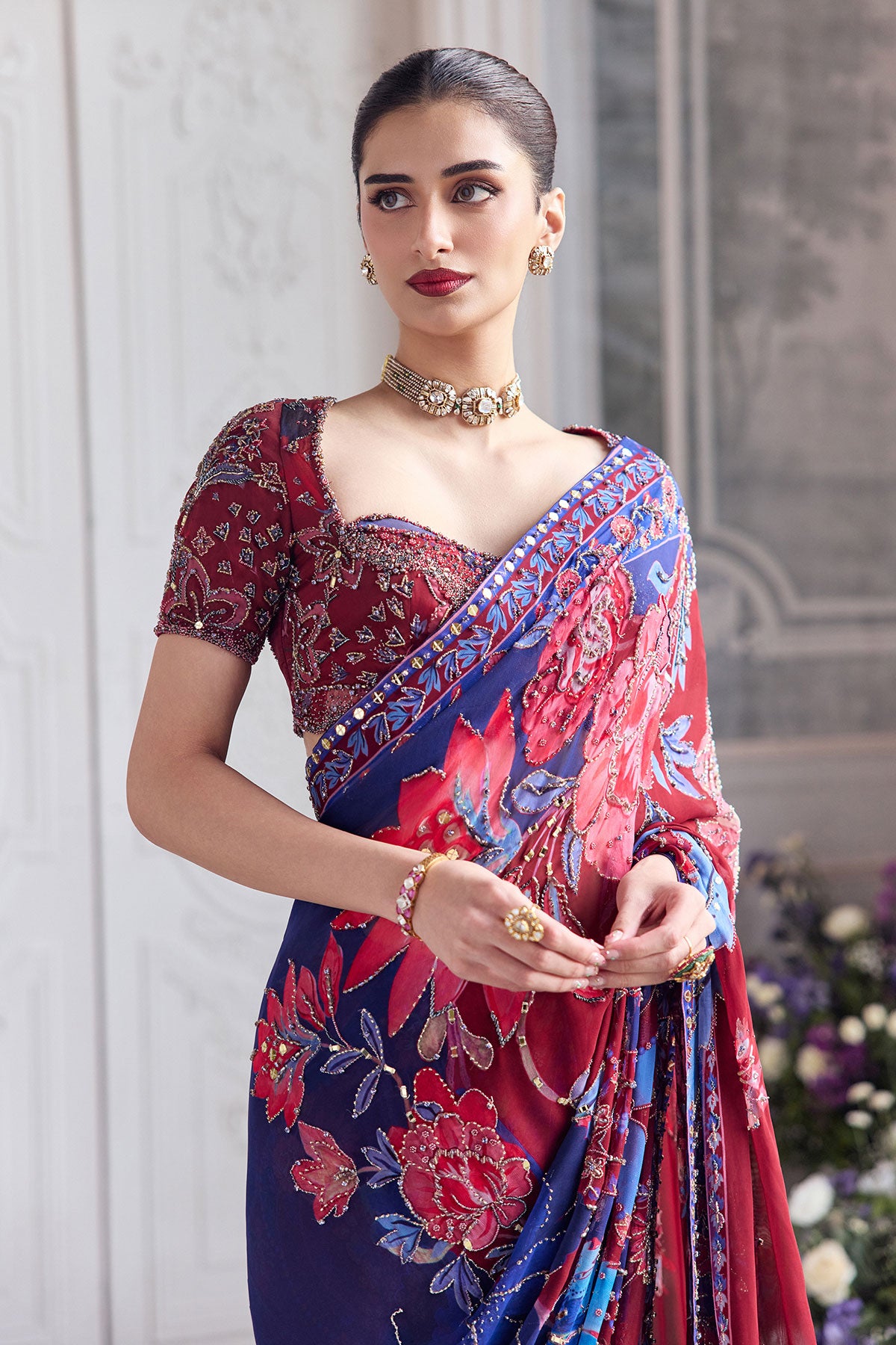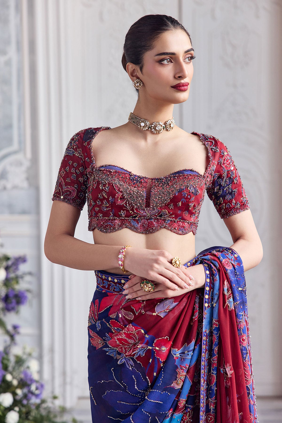 HEAVY EMBROIDERED SCALLOPED BLOUSE PAIRED WITH PREDRAPED SAREE