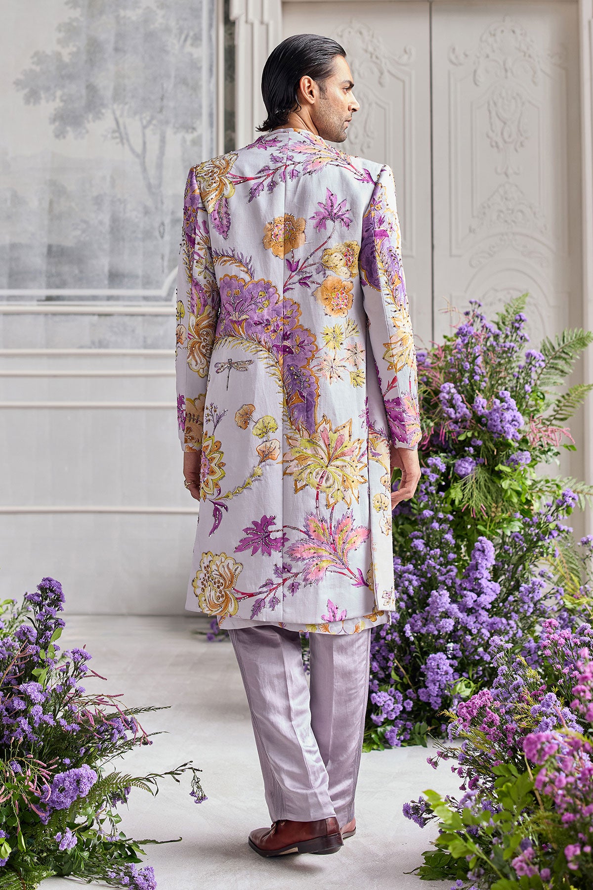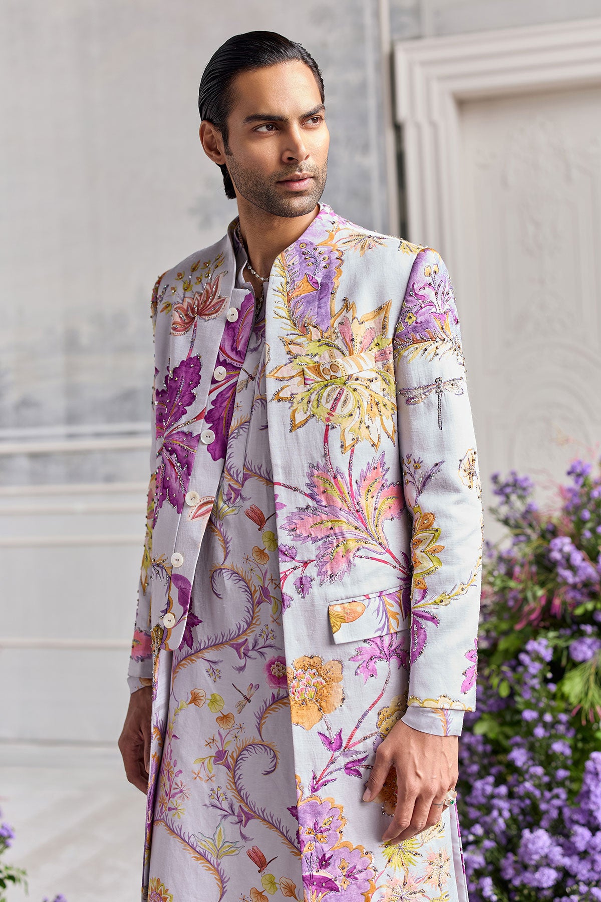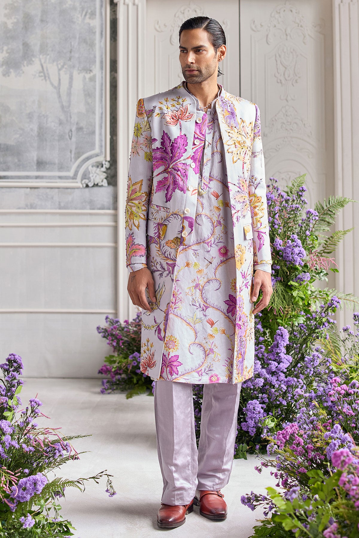HAND EMBROIDERED SHERWANI PAIRED WITH KURTA AND PINTUCK DETAILING TROUSER