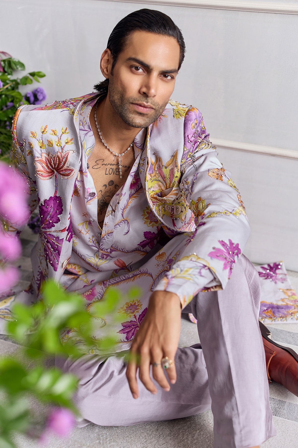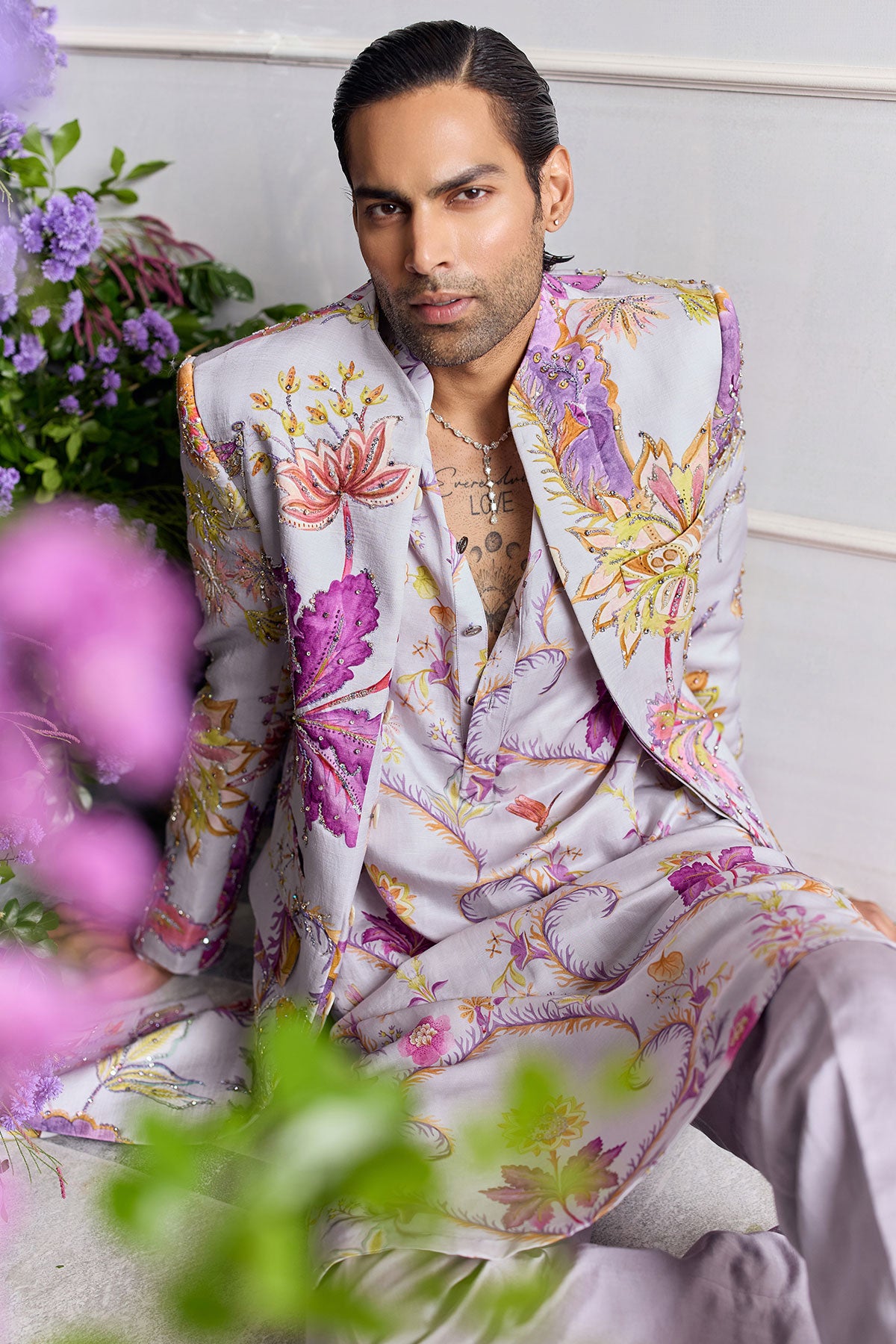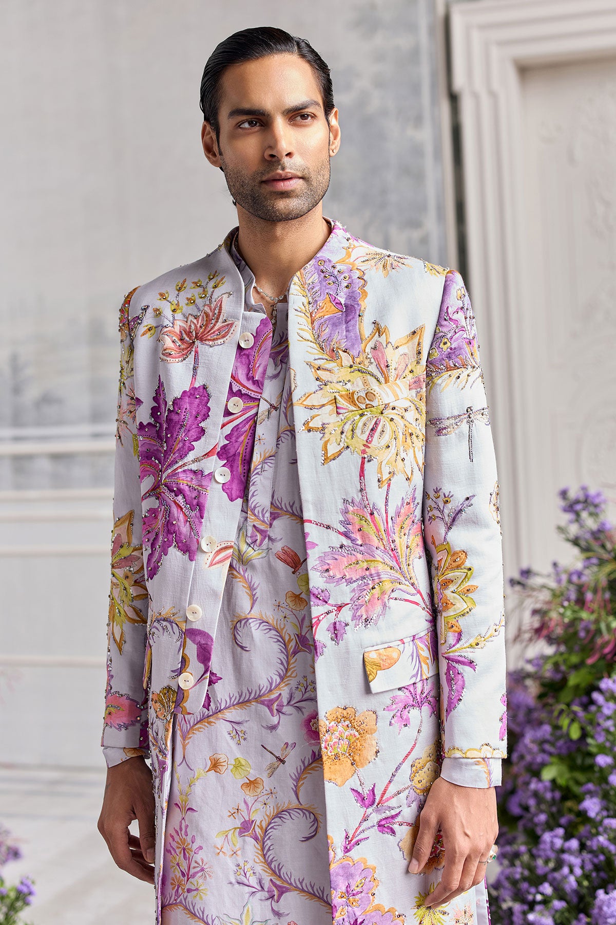 HAND EMBROIDERED SHERWANI PAIRED WITH KURTA AND PINTUCK DETAILING TROUSER