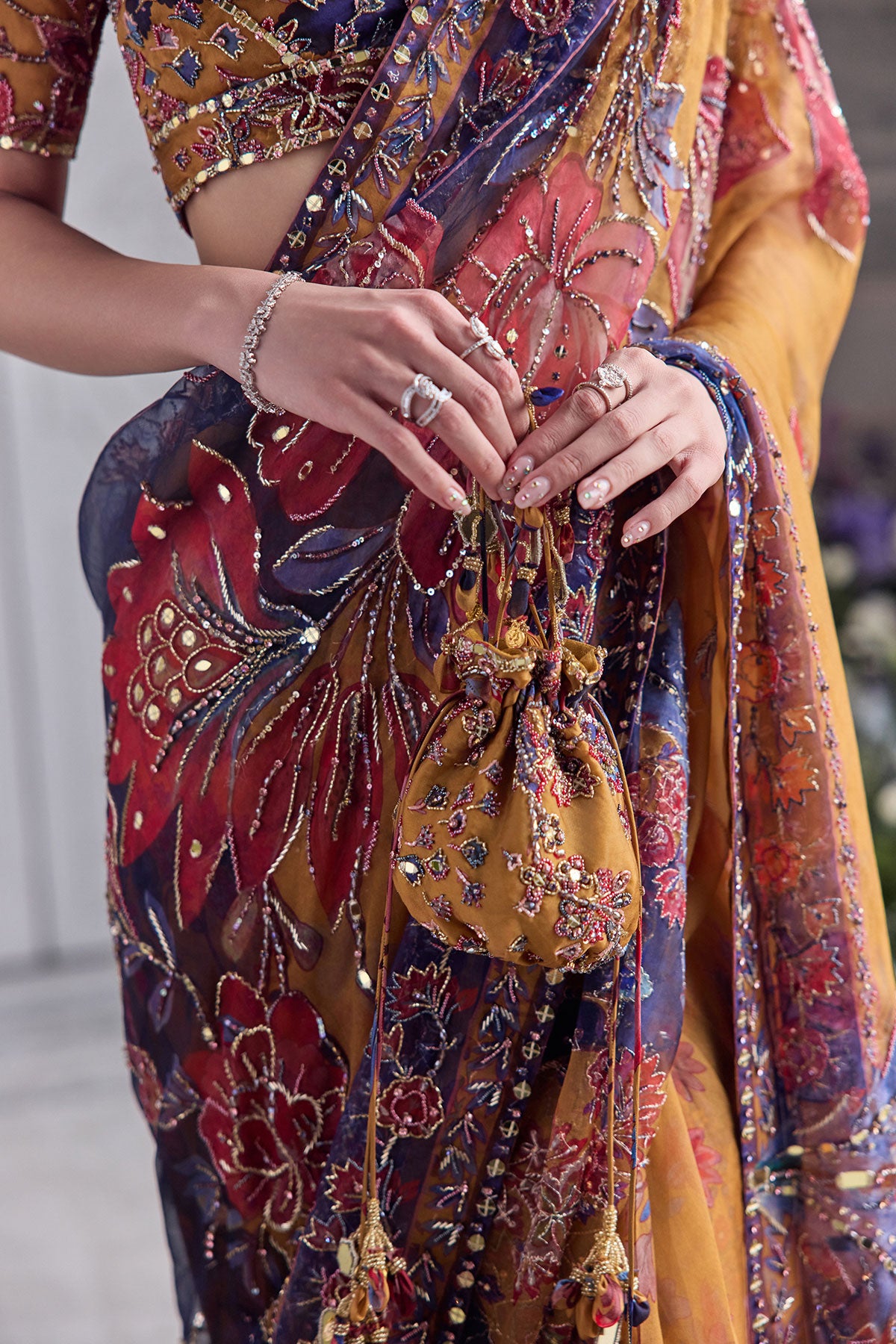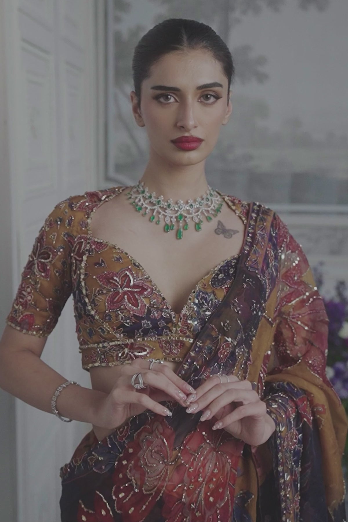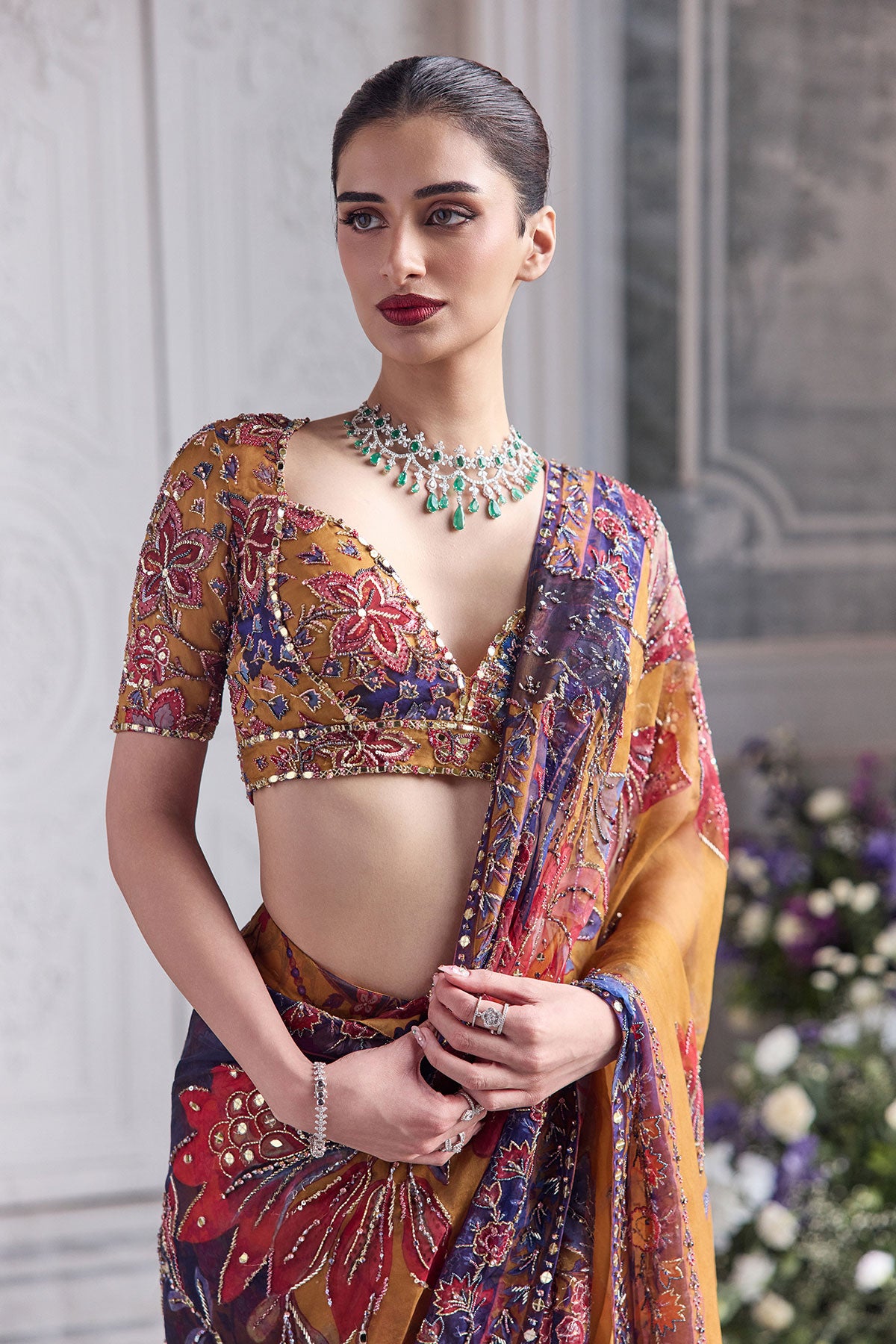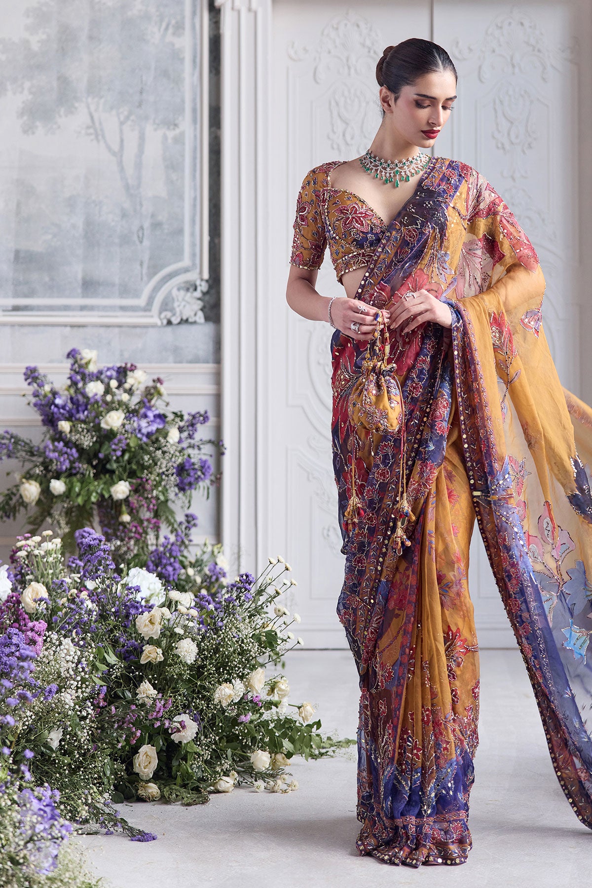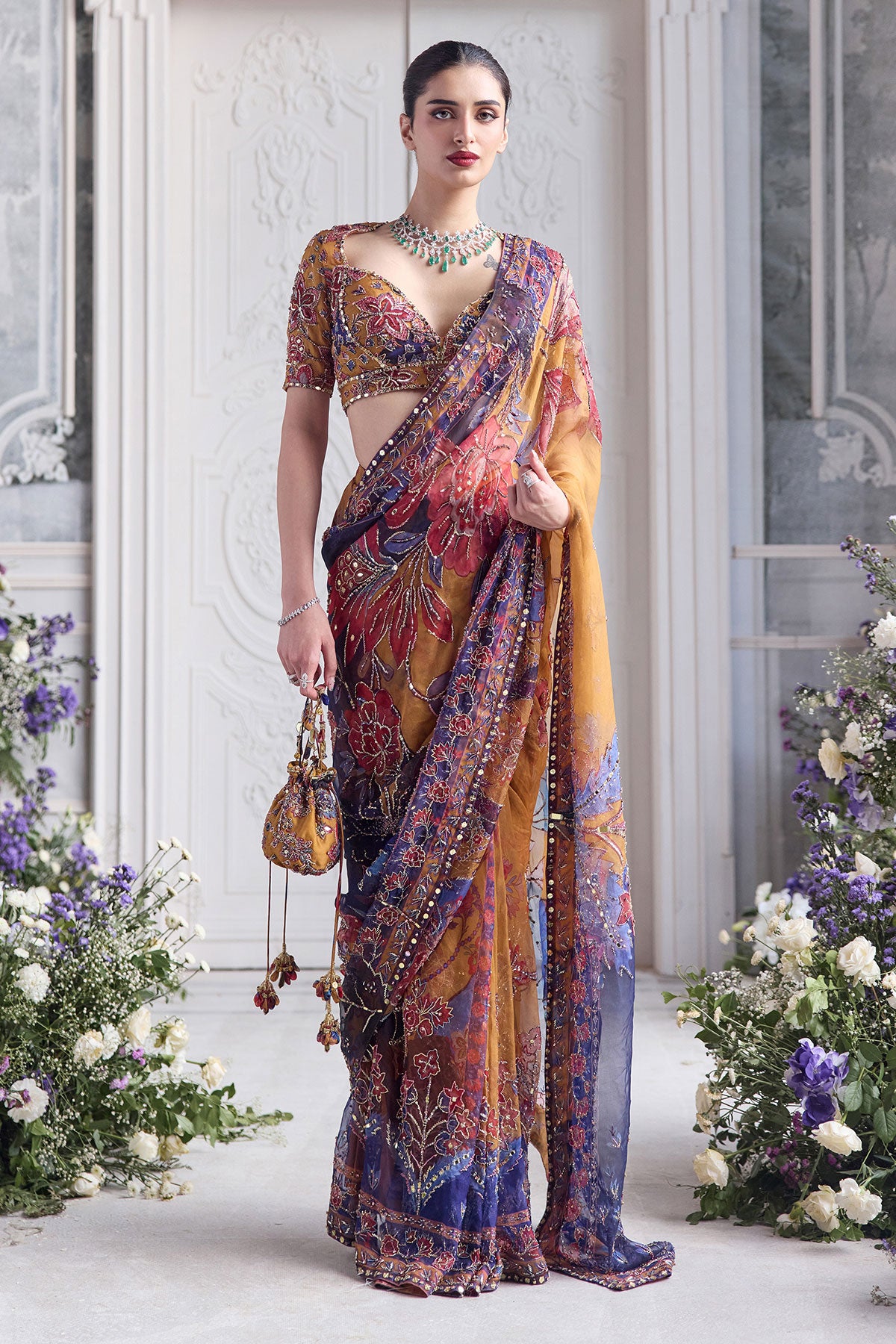 EMBRODIERED CHOLI CUT BLOUSE PAIRED WITH PREDRAPED SAREE