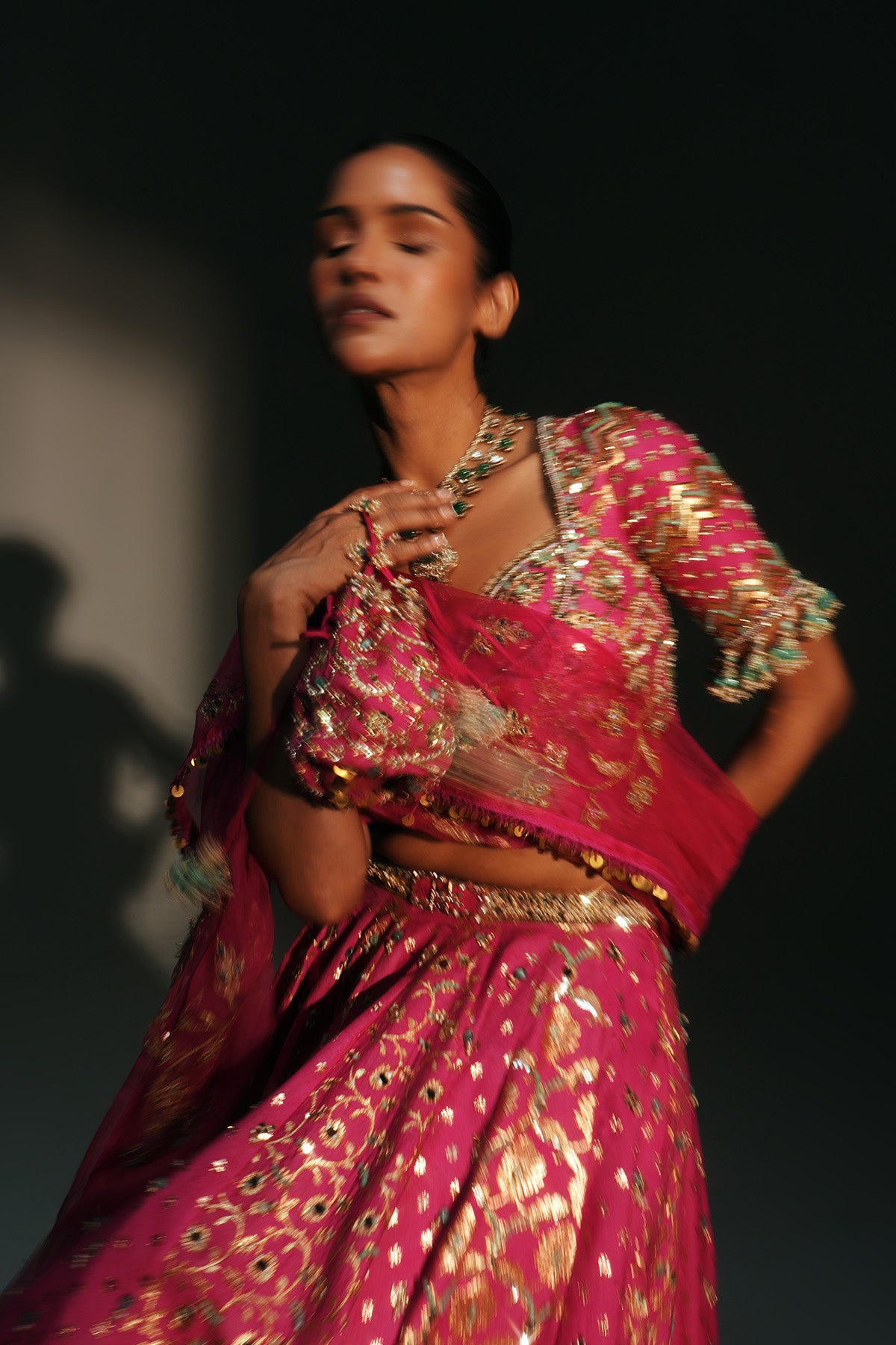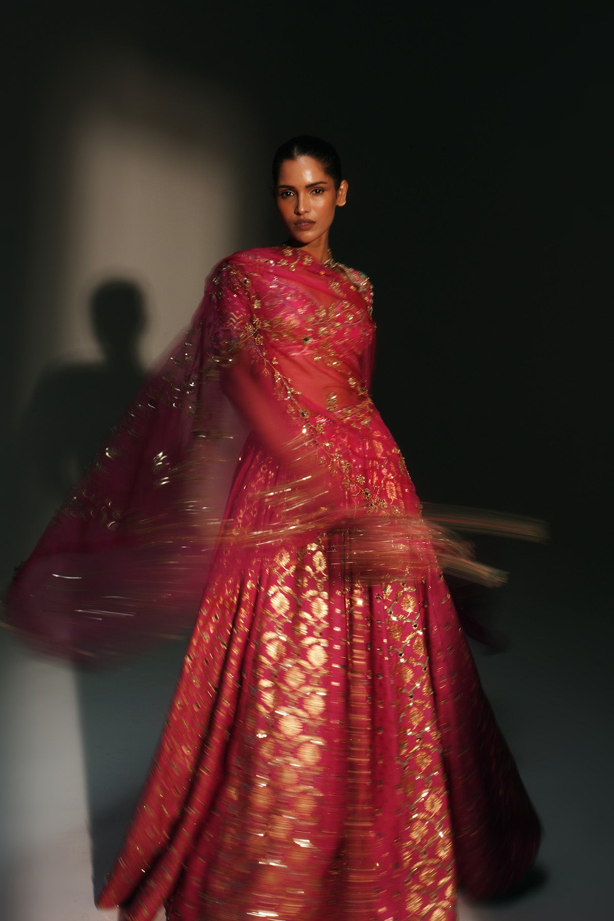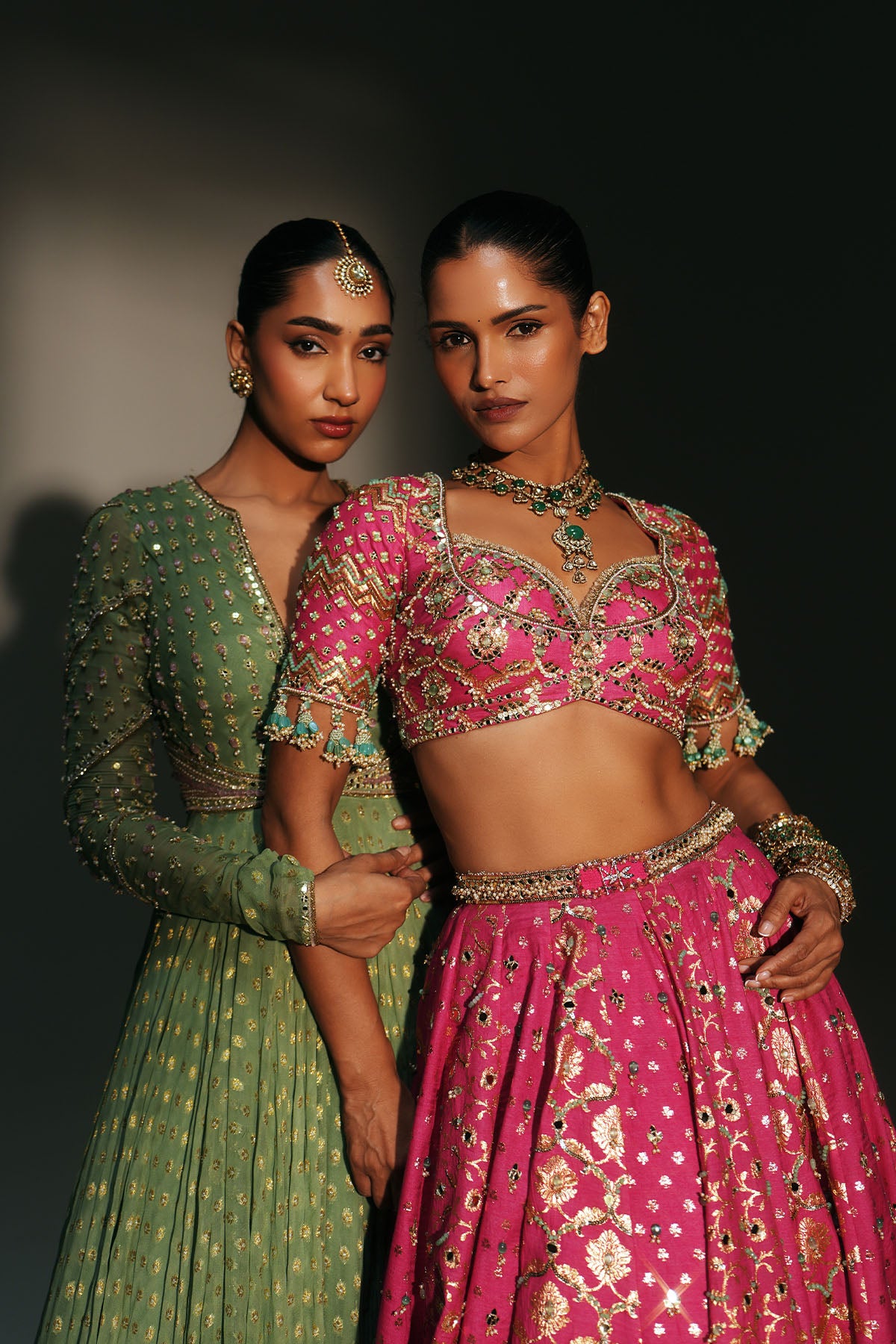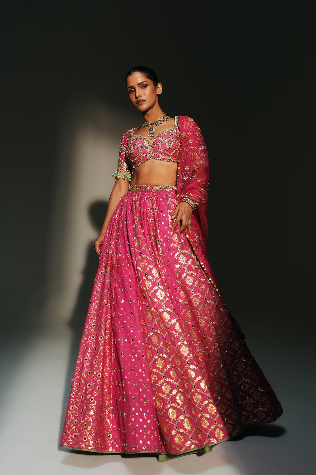 HEAVY HAND EMBROIDERED LEHENGA SET FEATURING DRAGON FLY LOGO ON BELT PAIRED WITH EMBROIDERED BLOUSE AND DUPATTA