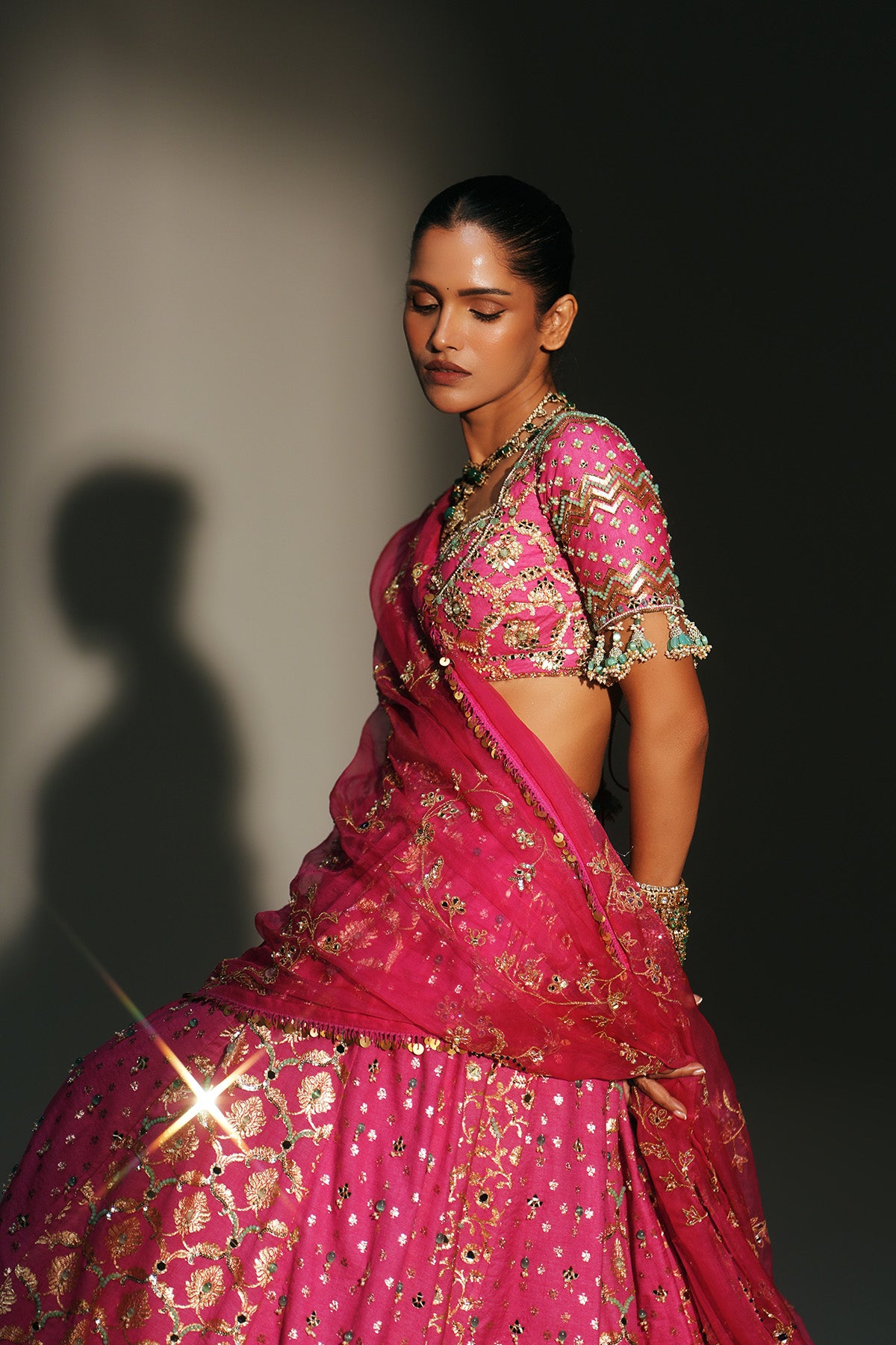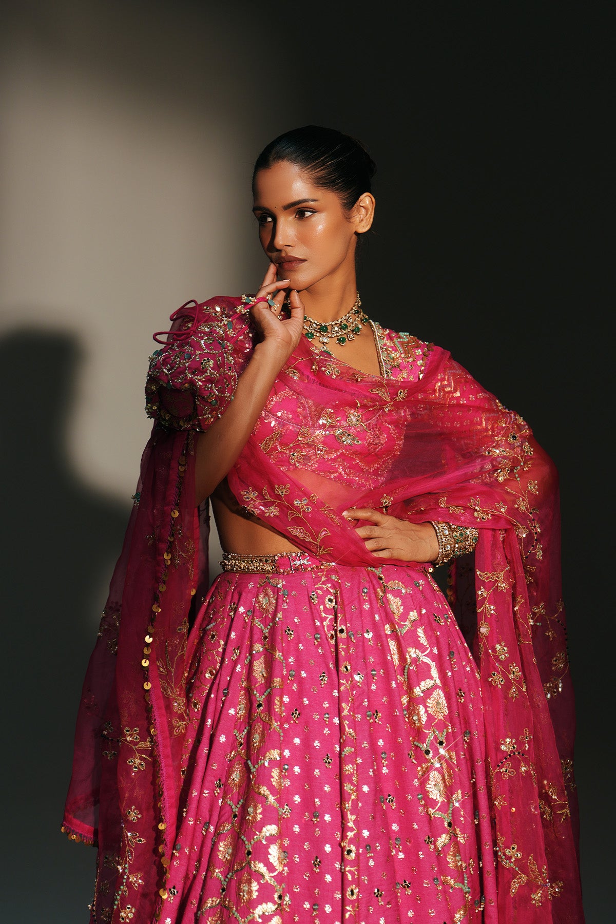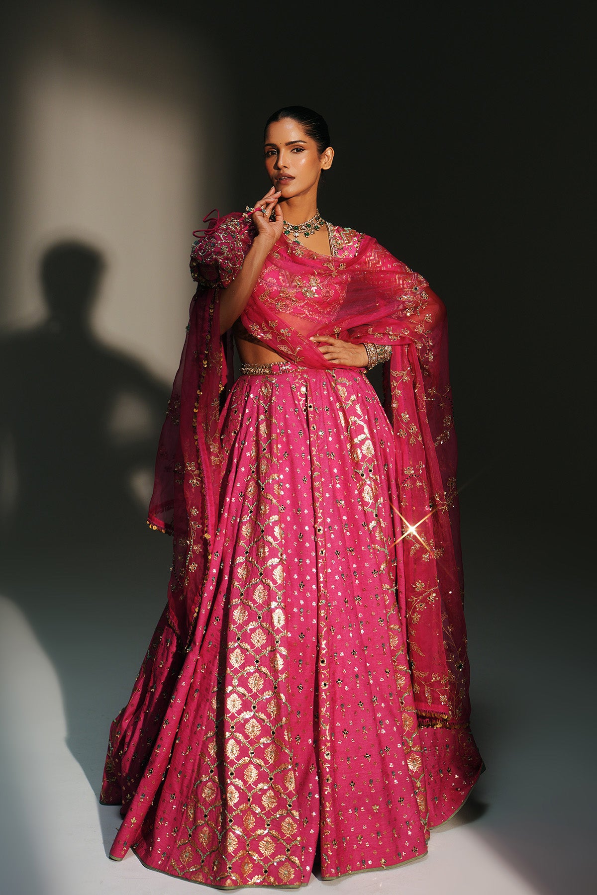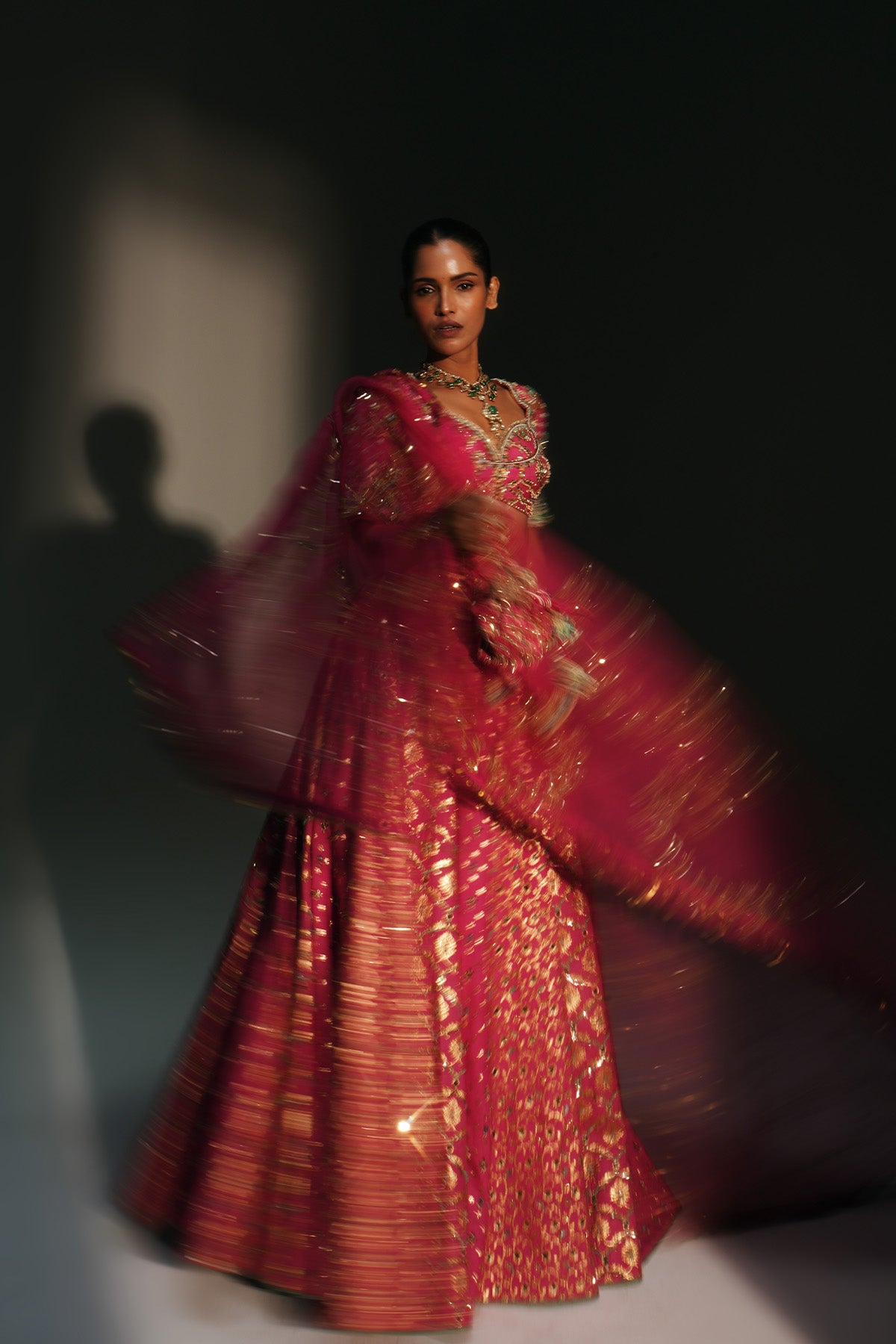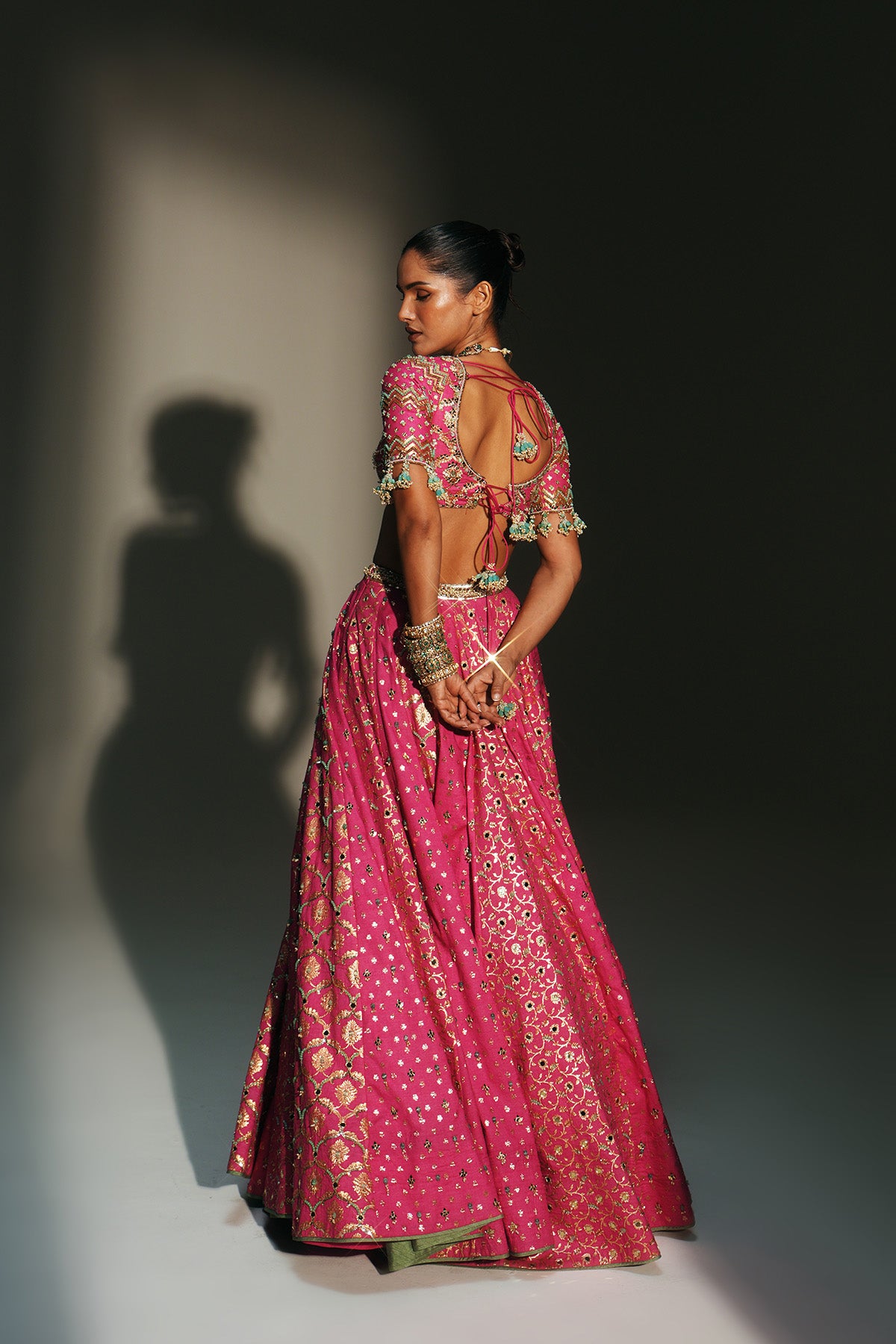 HEAVY HAND EMBROIDERED LEHENGA SET FEATURING DRAGON FLY LOGO ON BELT PAIRED WITH EMBROIDERED BLOUSE AND DUPATTA