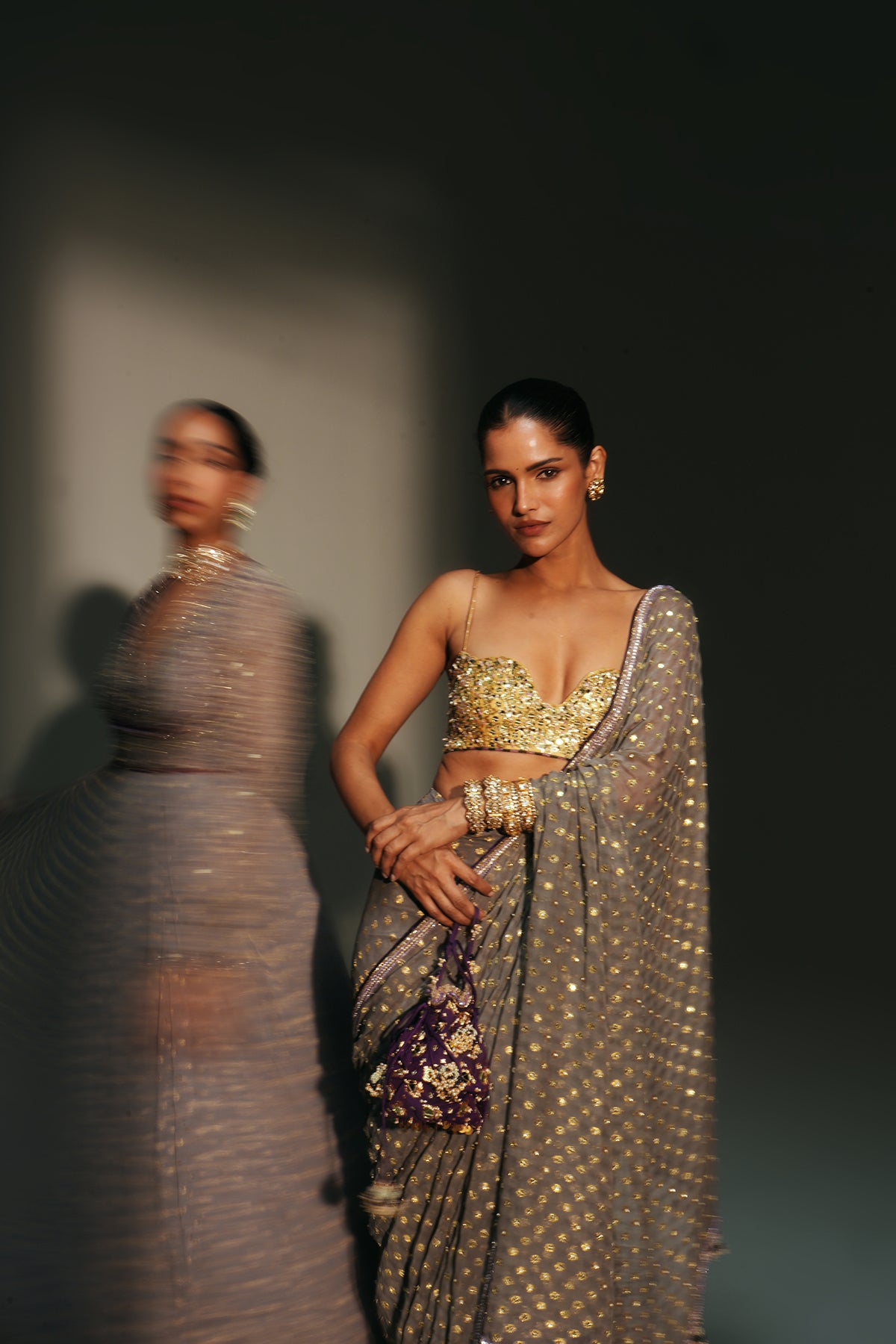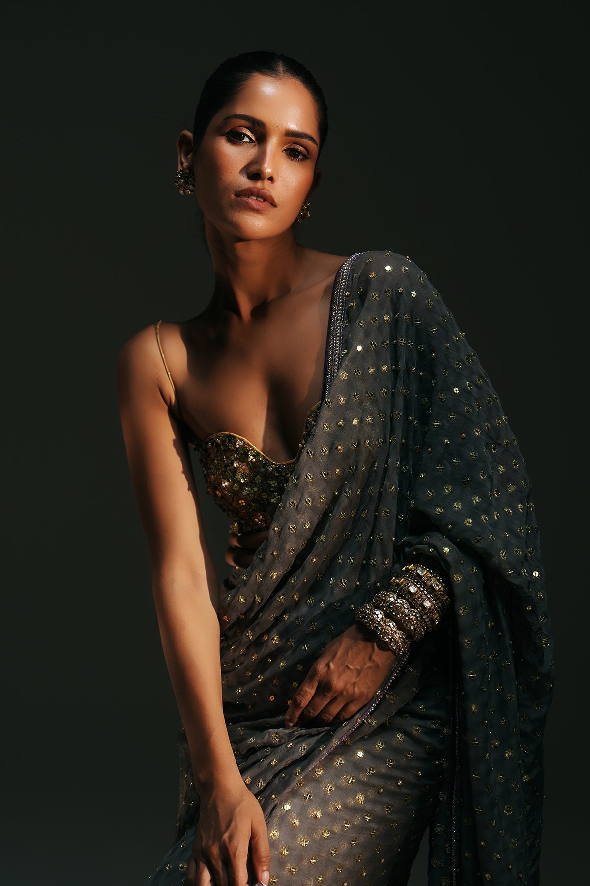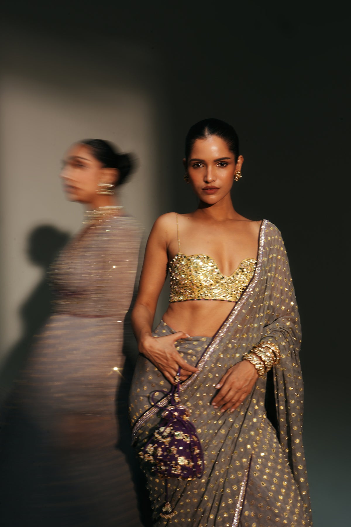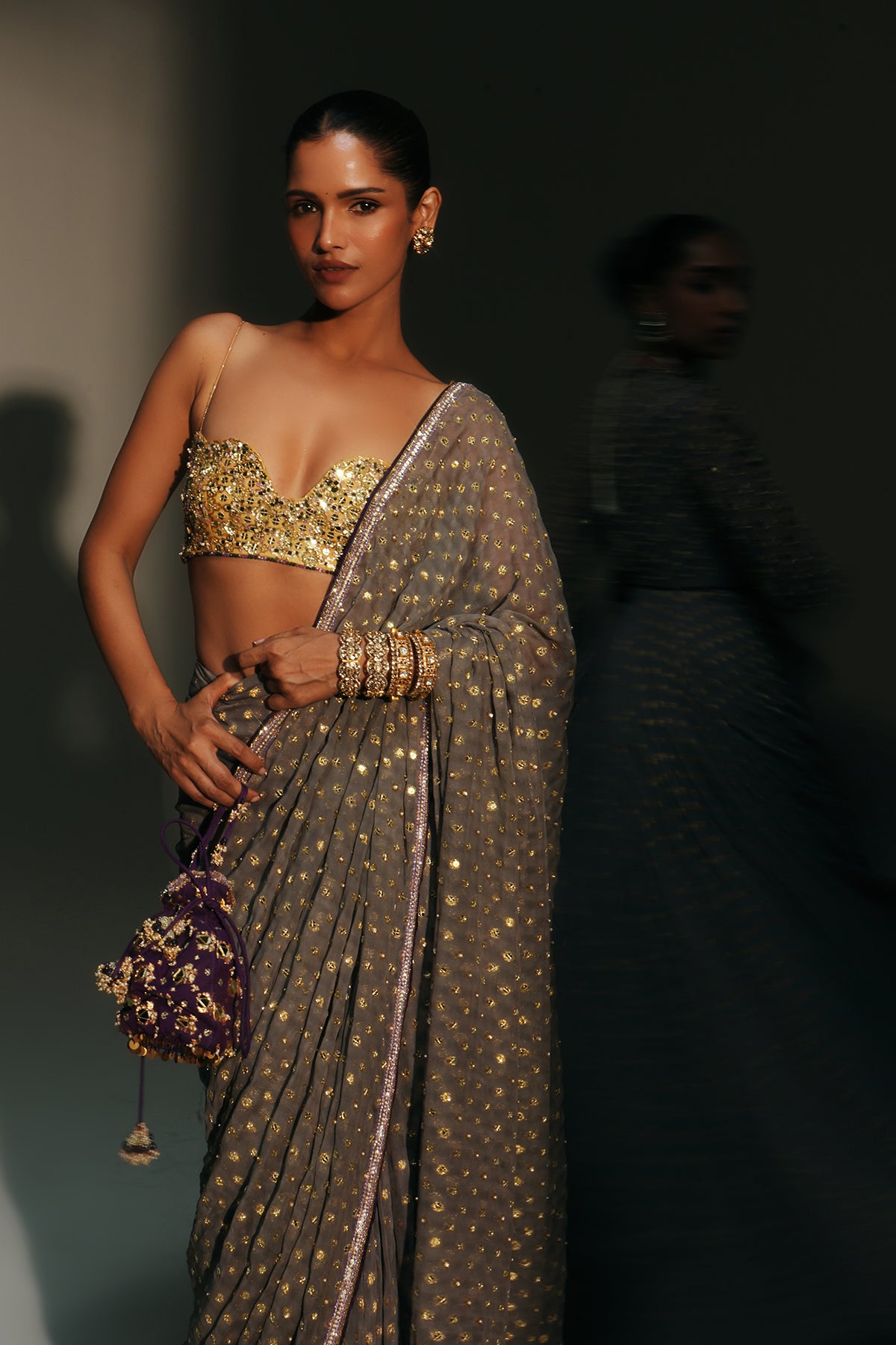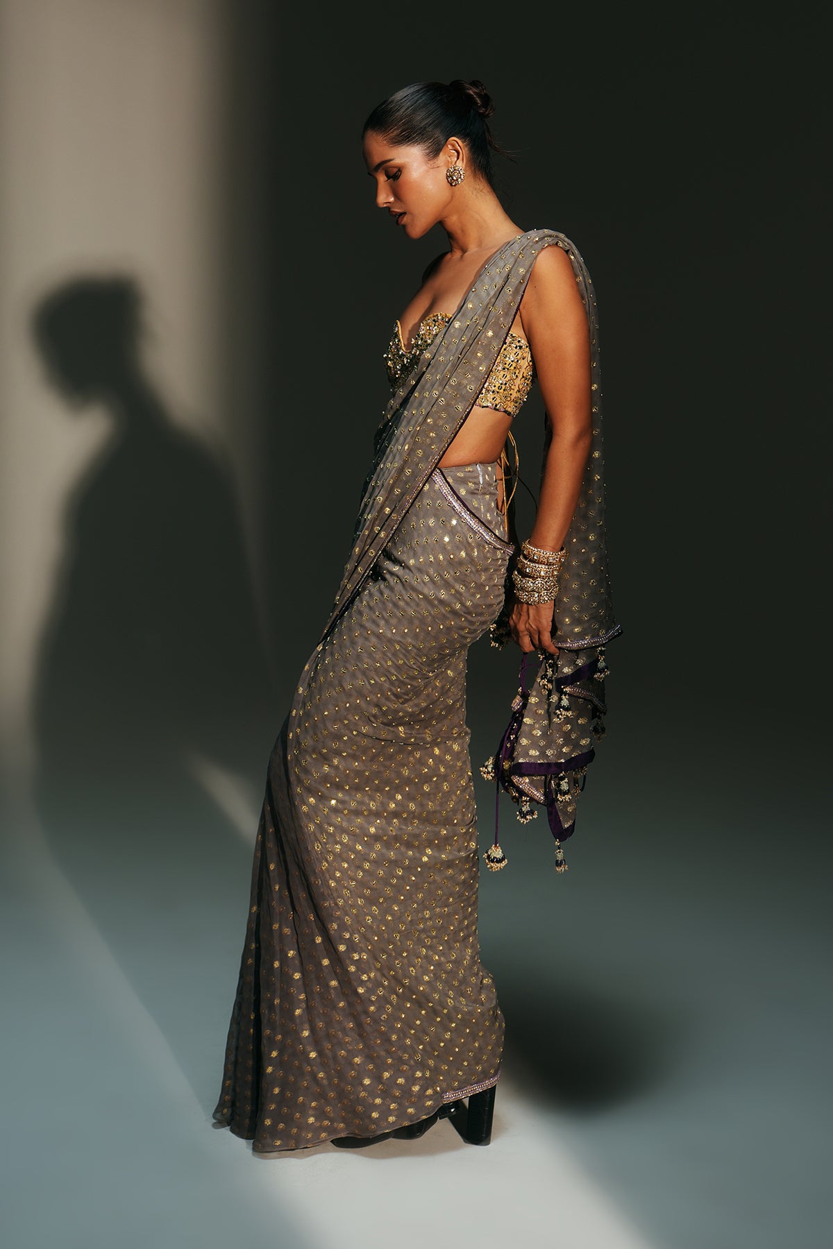 HAND EMBROIDERED PREDRAPED SAREE PAIRED WITH EMBROIDERED BRALETTE