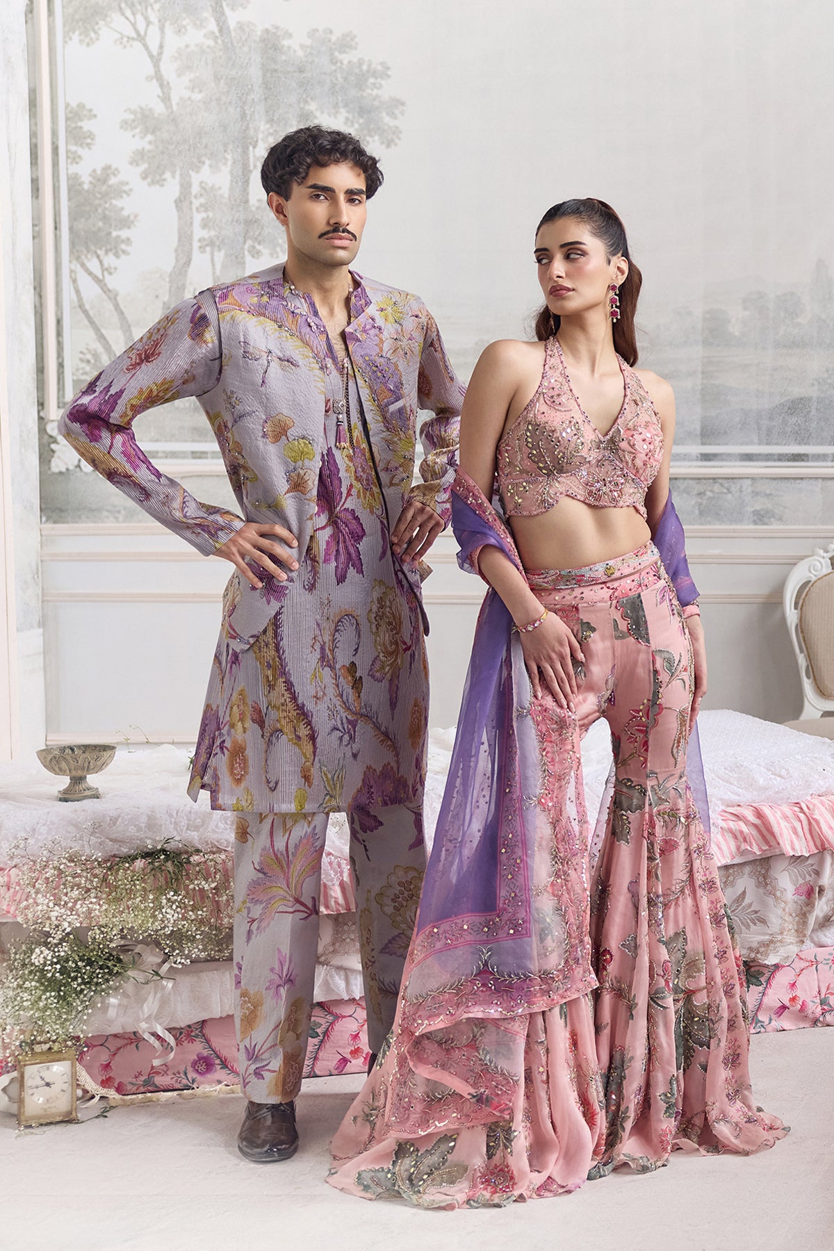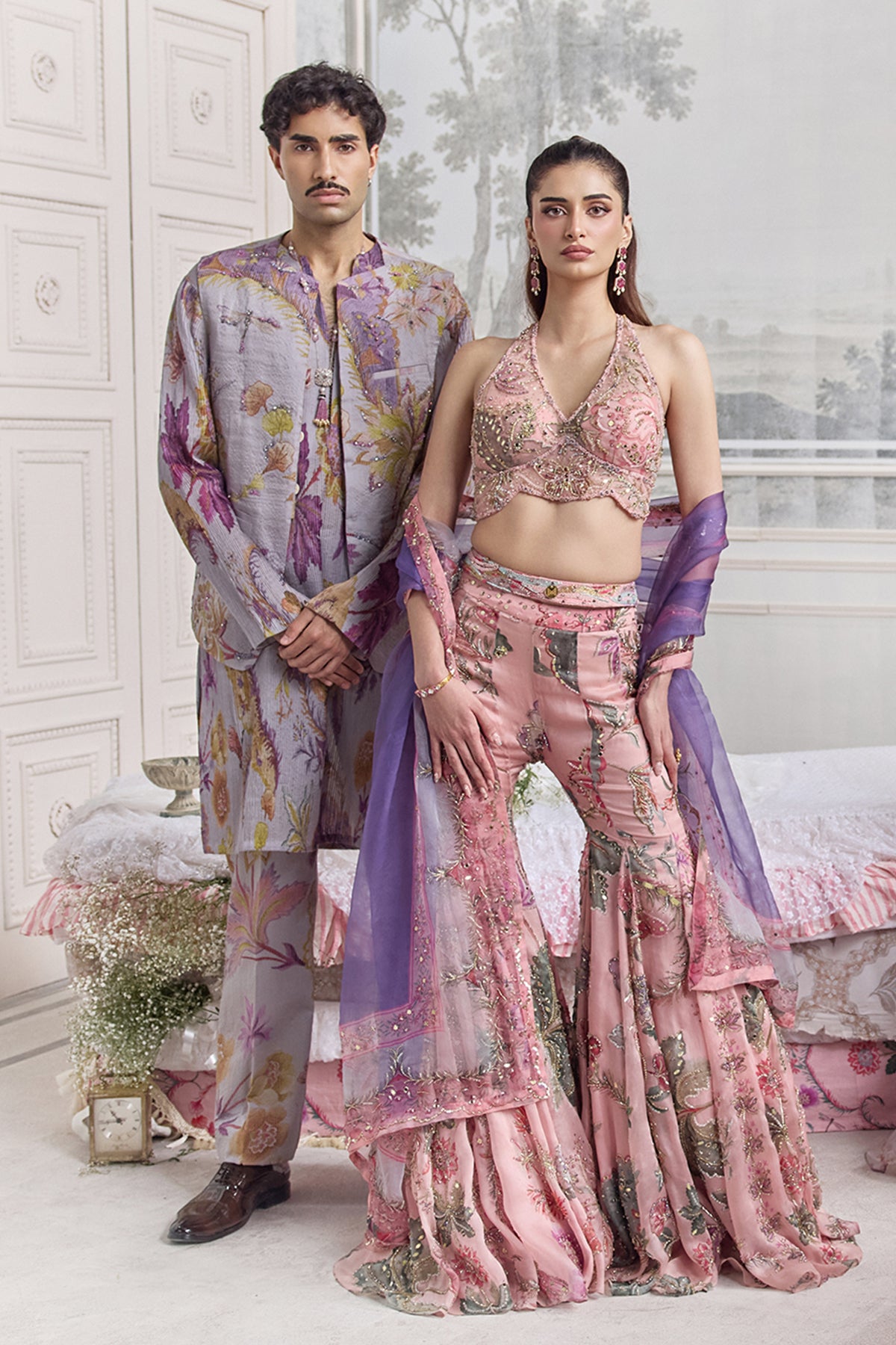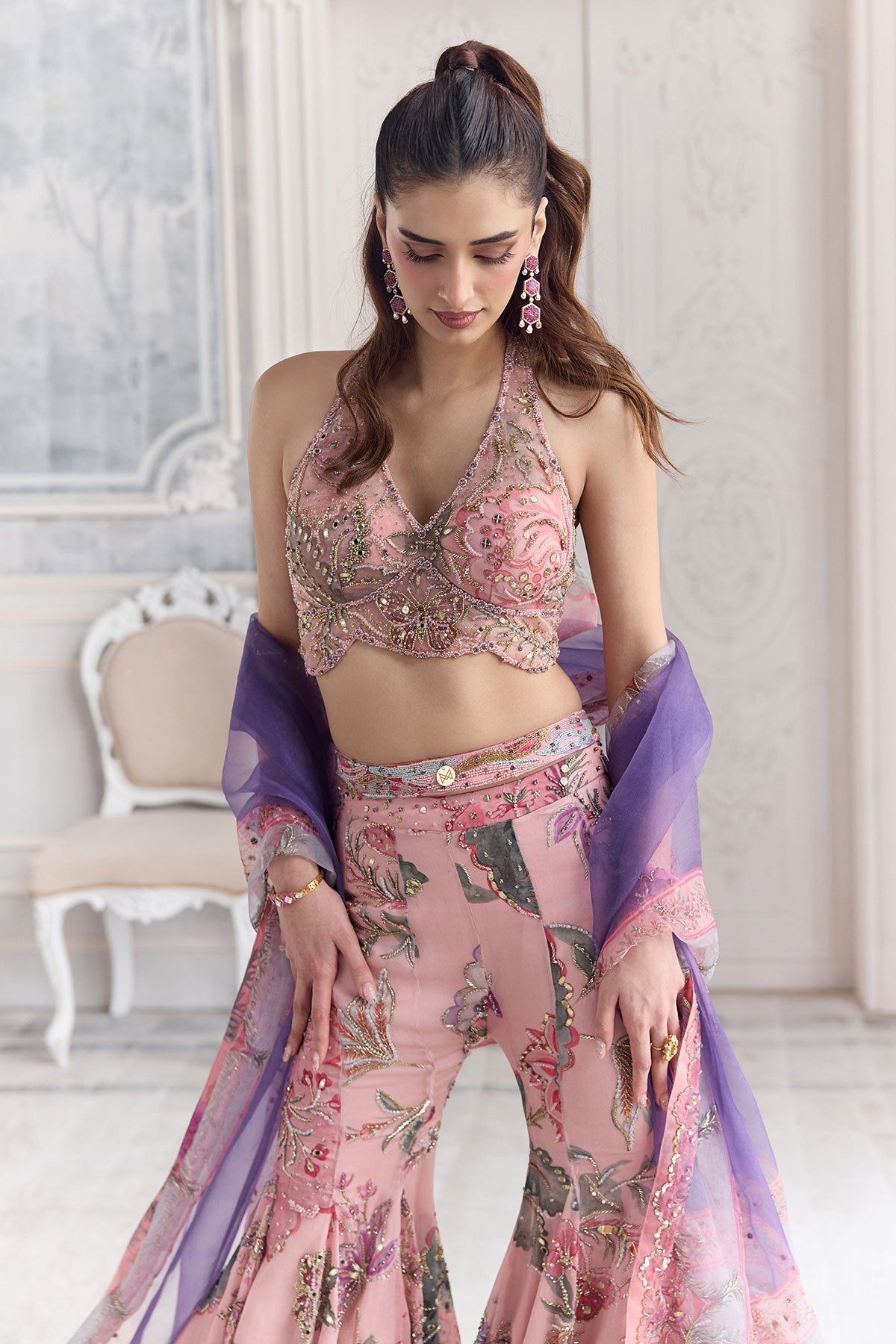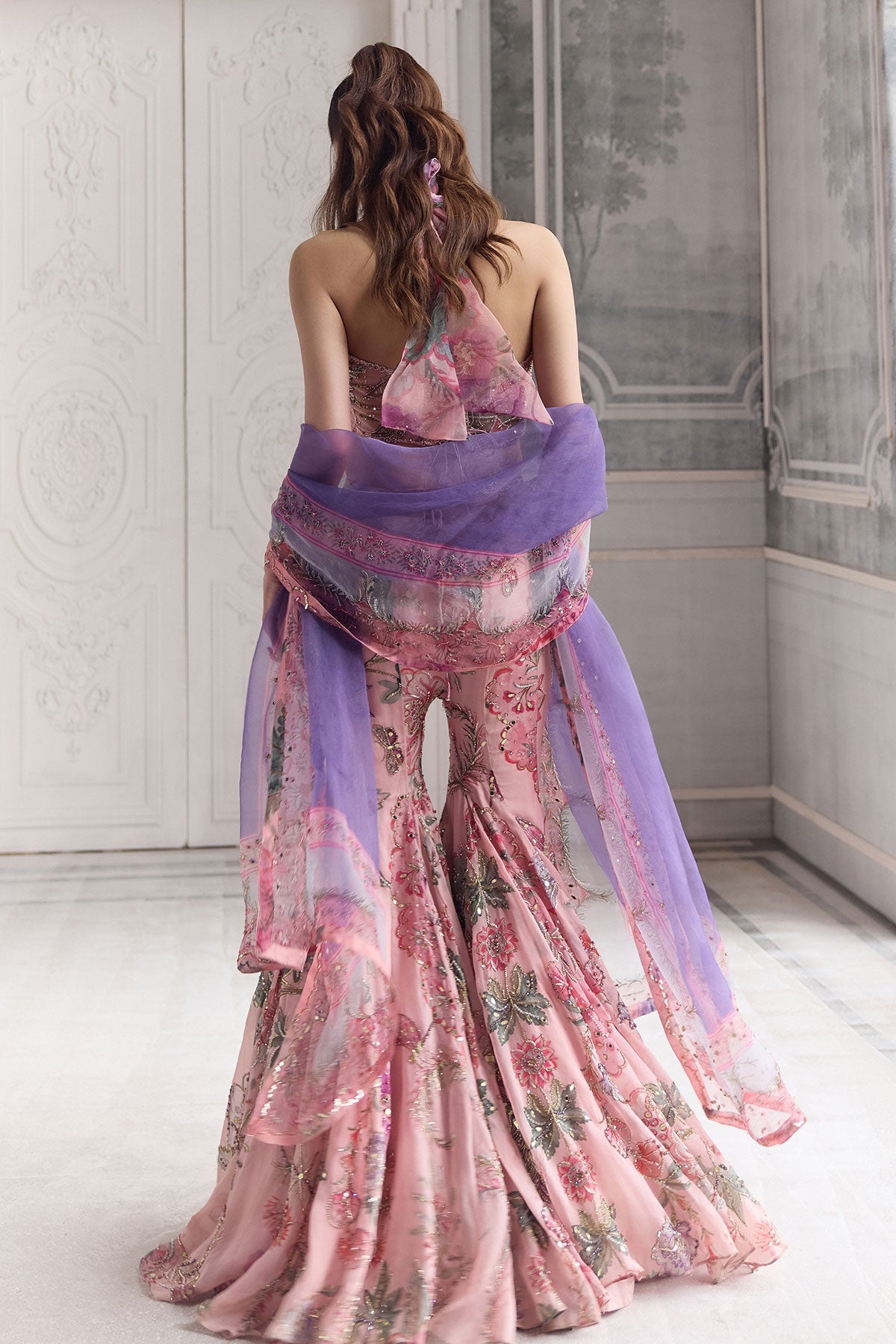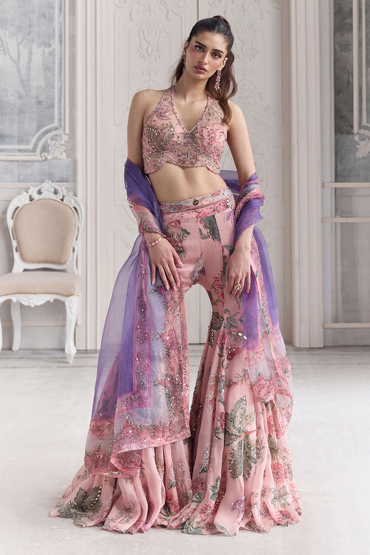 EMBROIDERED HALTER NECK TOP PAIRED WITH EMBROIDERED SHARARA AND DUPATTA