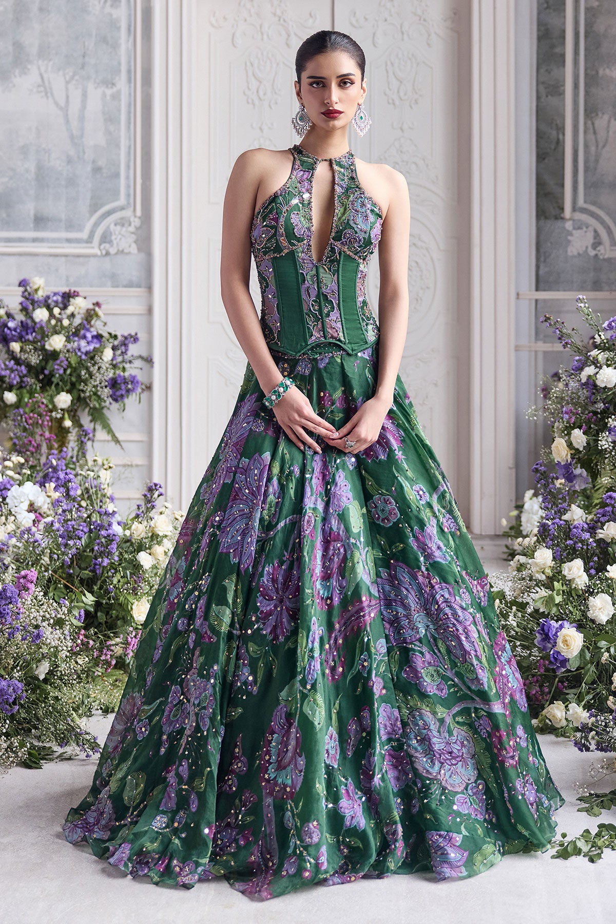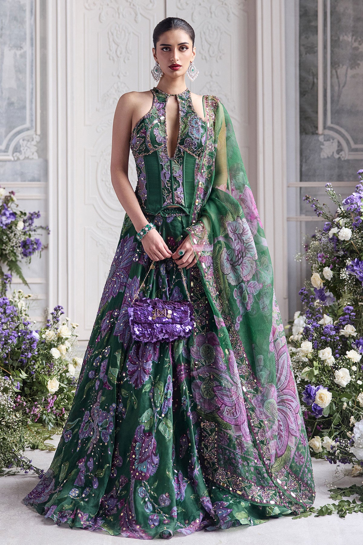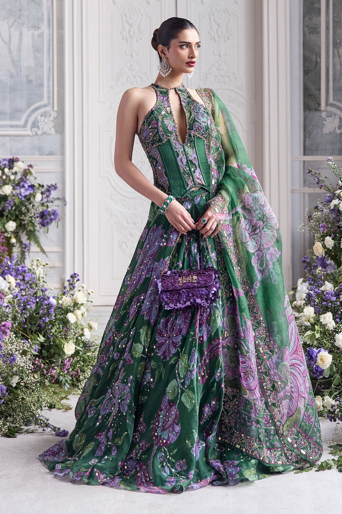KEY HOLE CORSET TOP PAIRED WITH EMBRODIERED DUPATTA AND LEHENGA