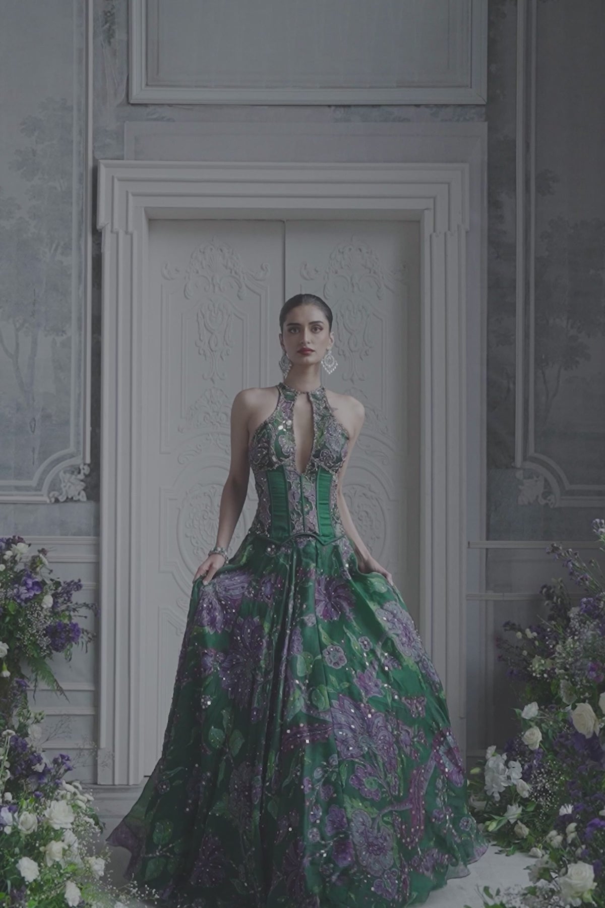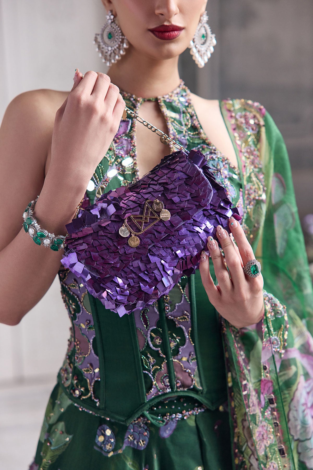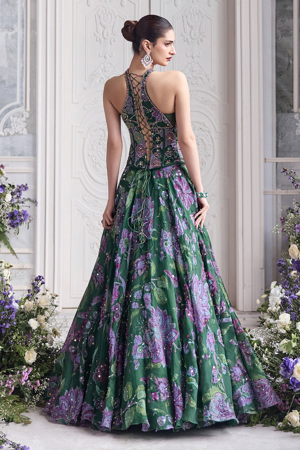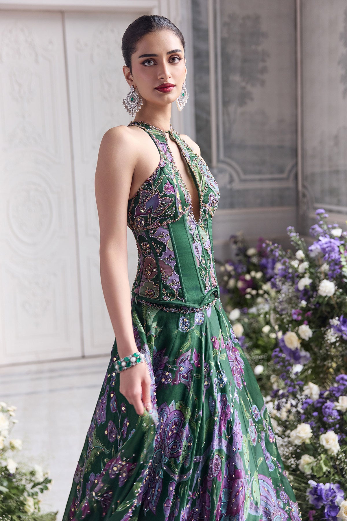 KEY HOLE CORSET TOP PAIRED WITH EMBRODIERED DUPATTA AND LEHENGA