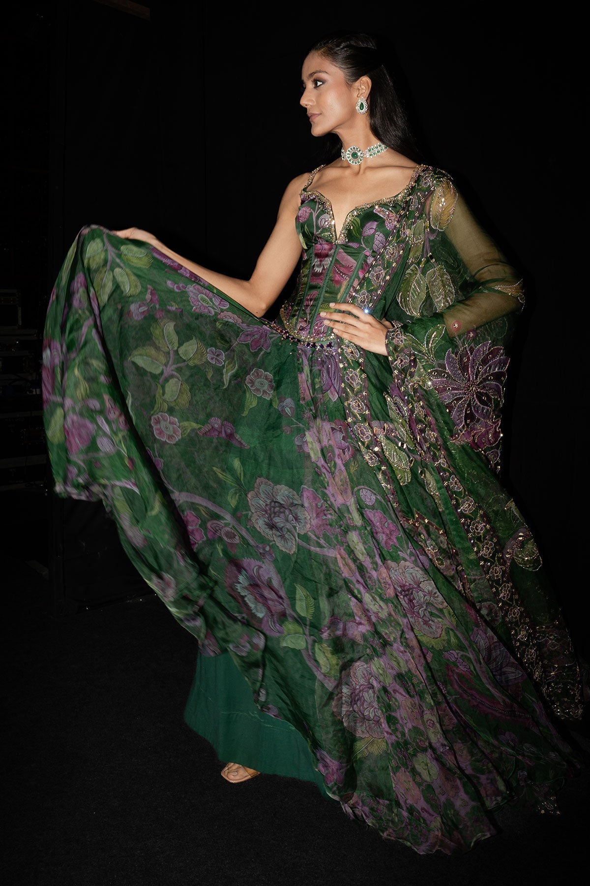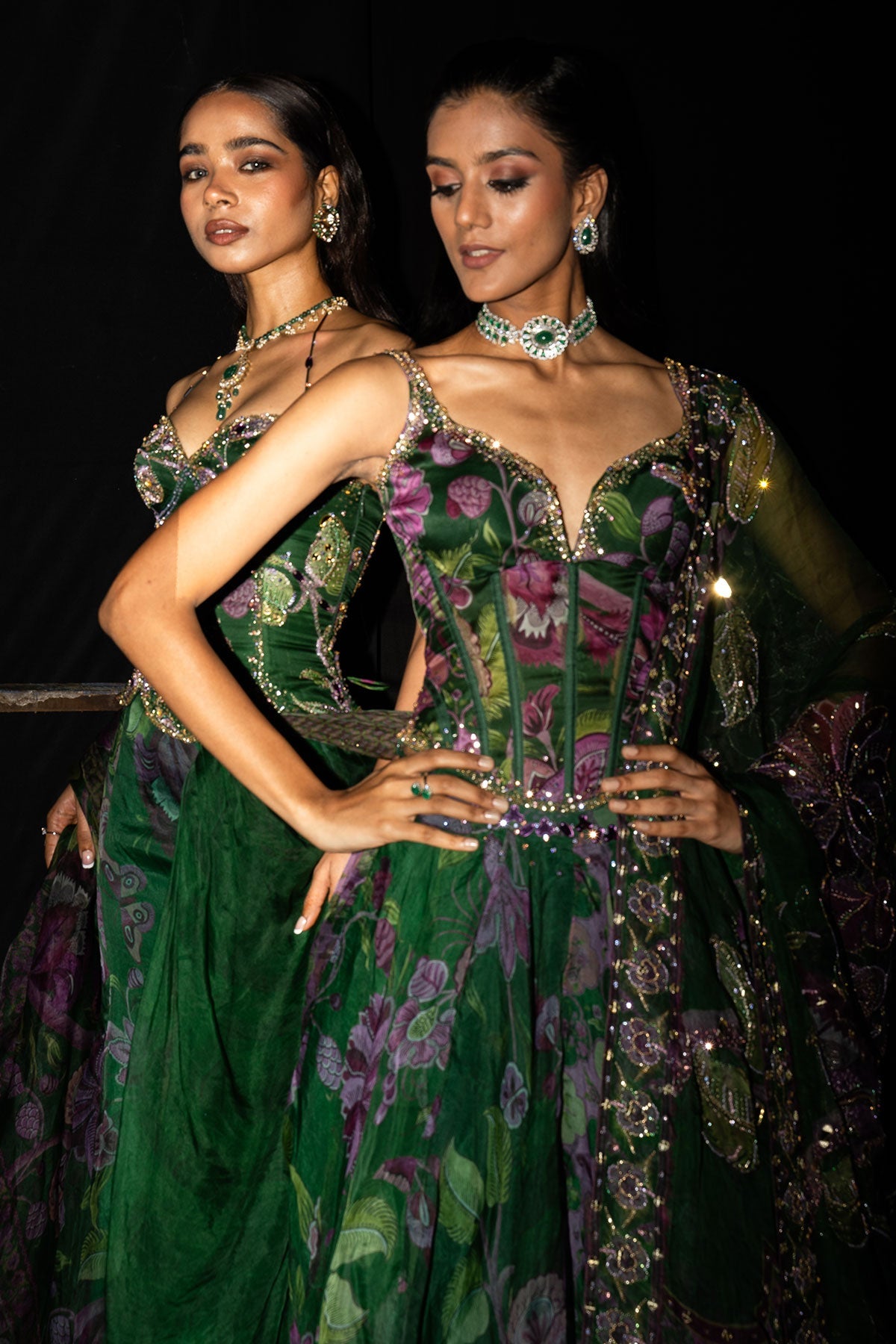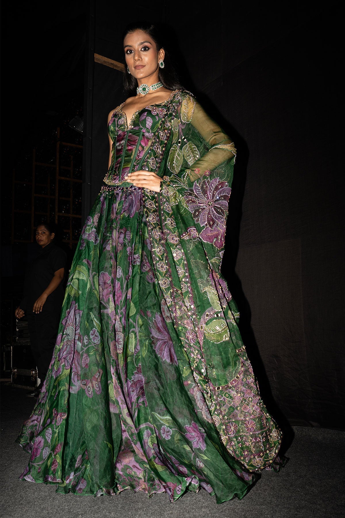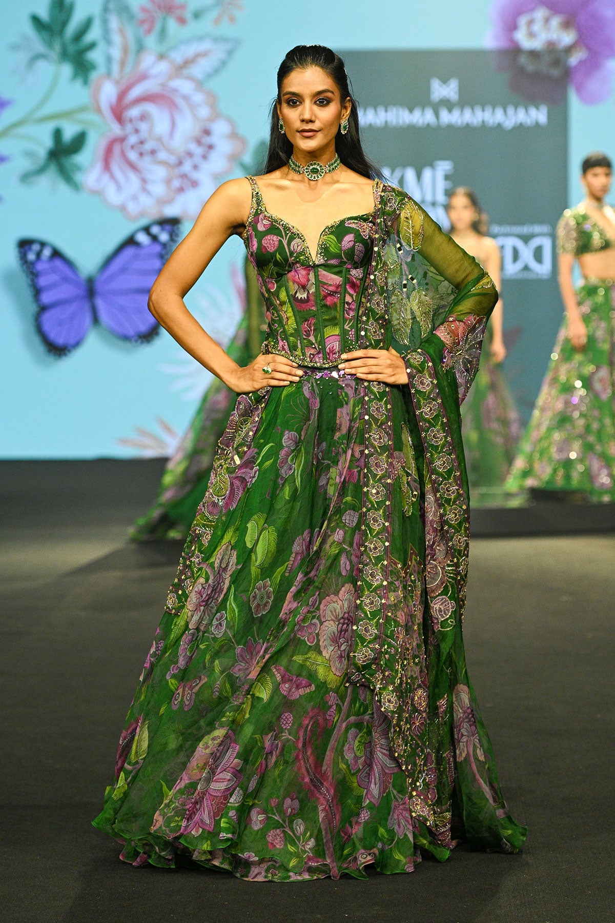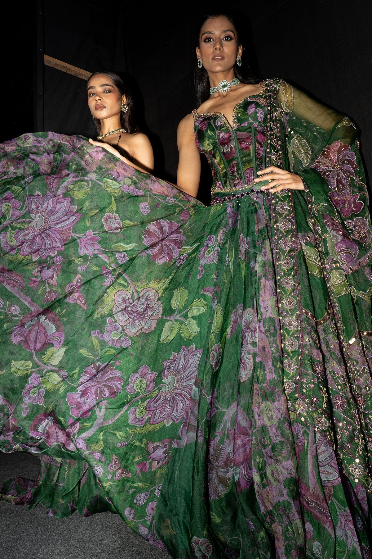 Embroidered Corset Paired With Floral Lehenga And Dupatta